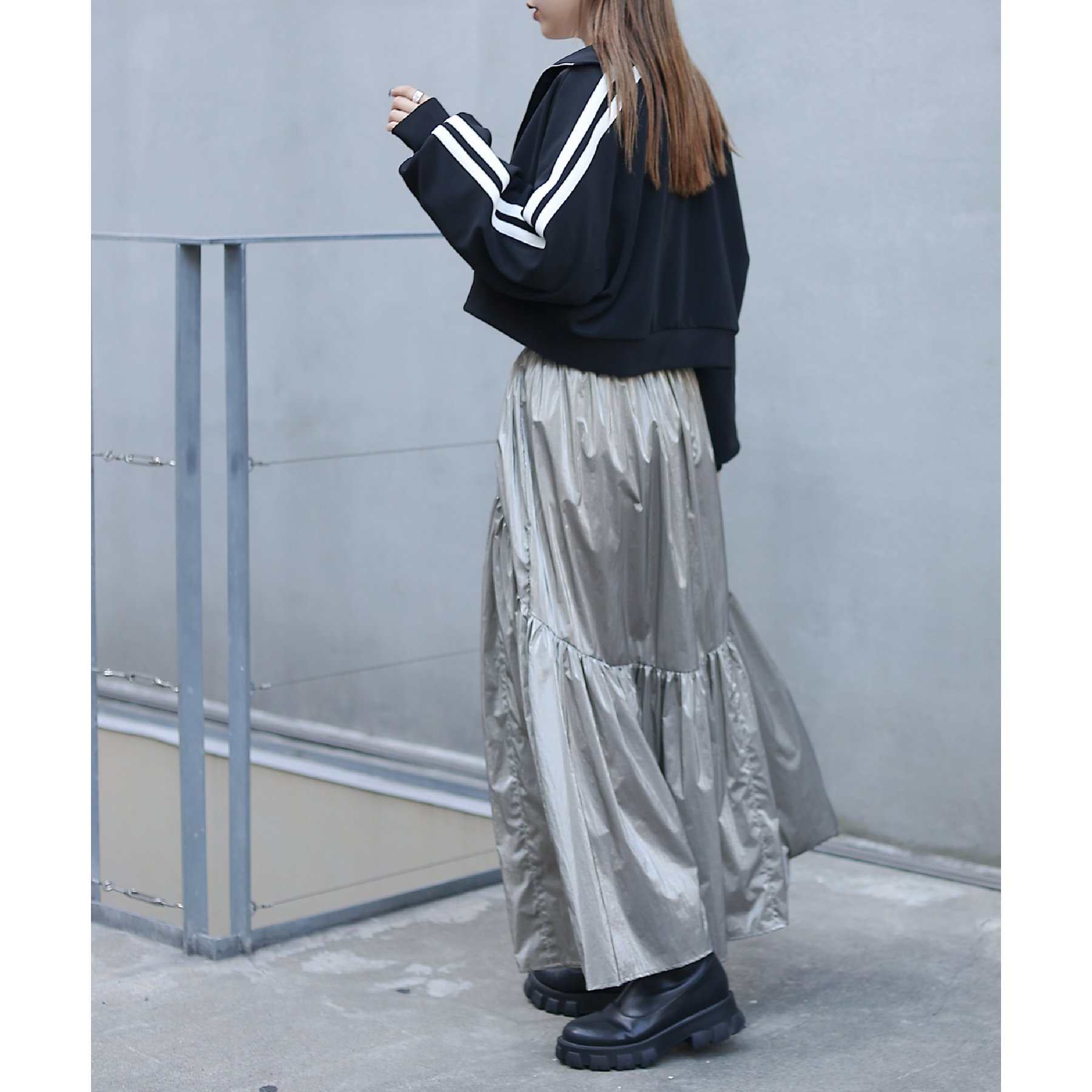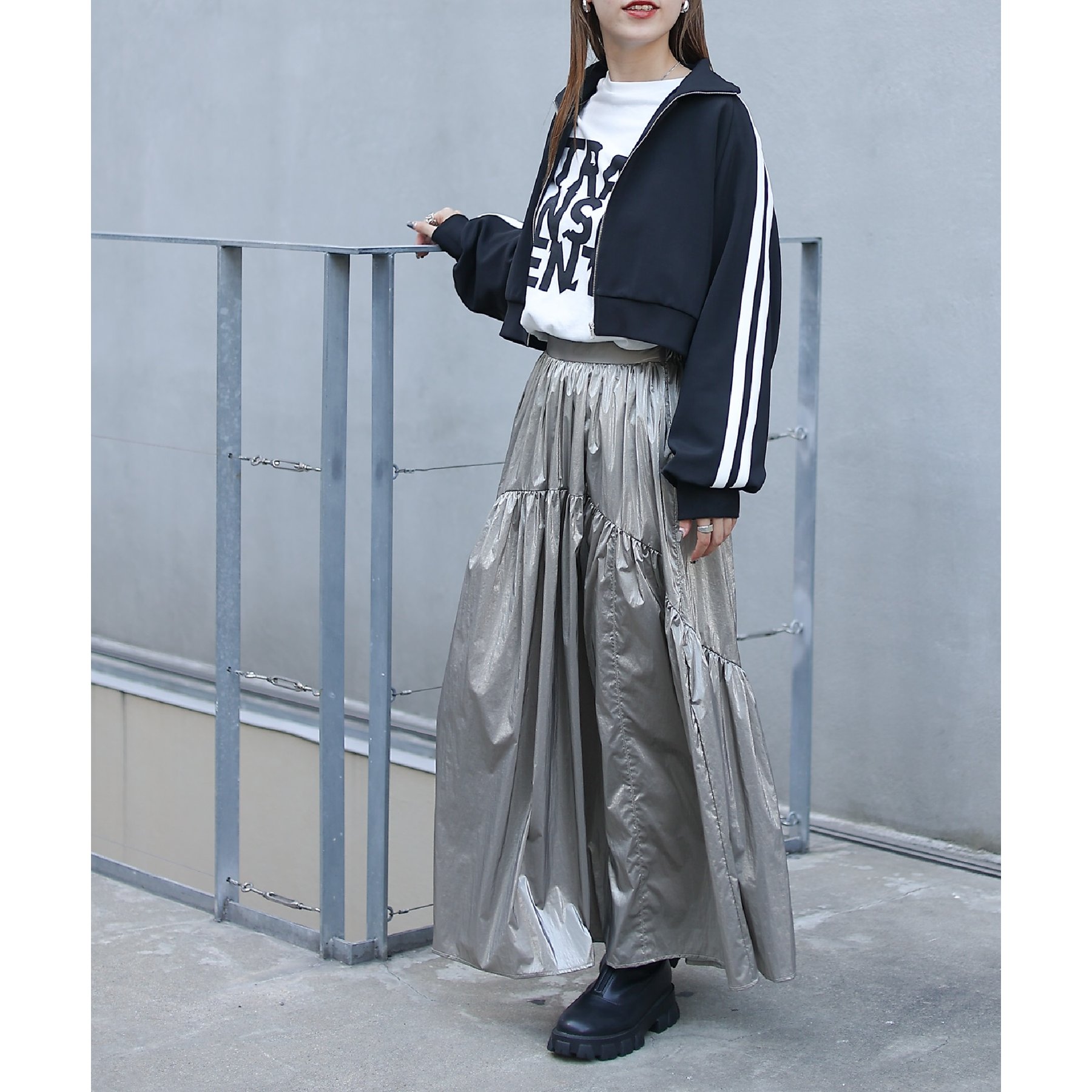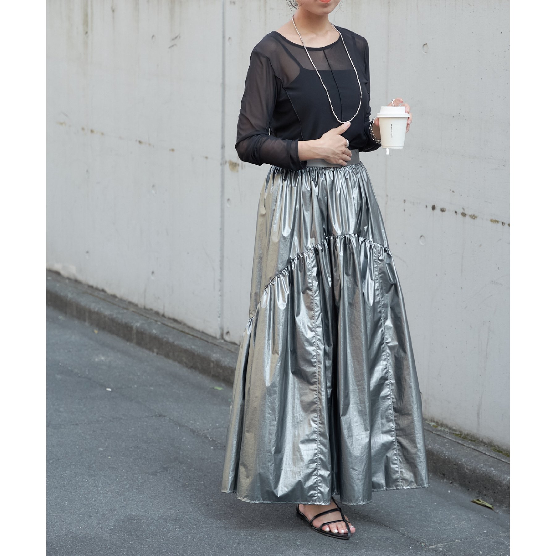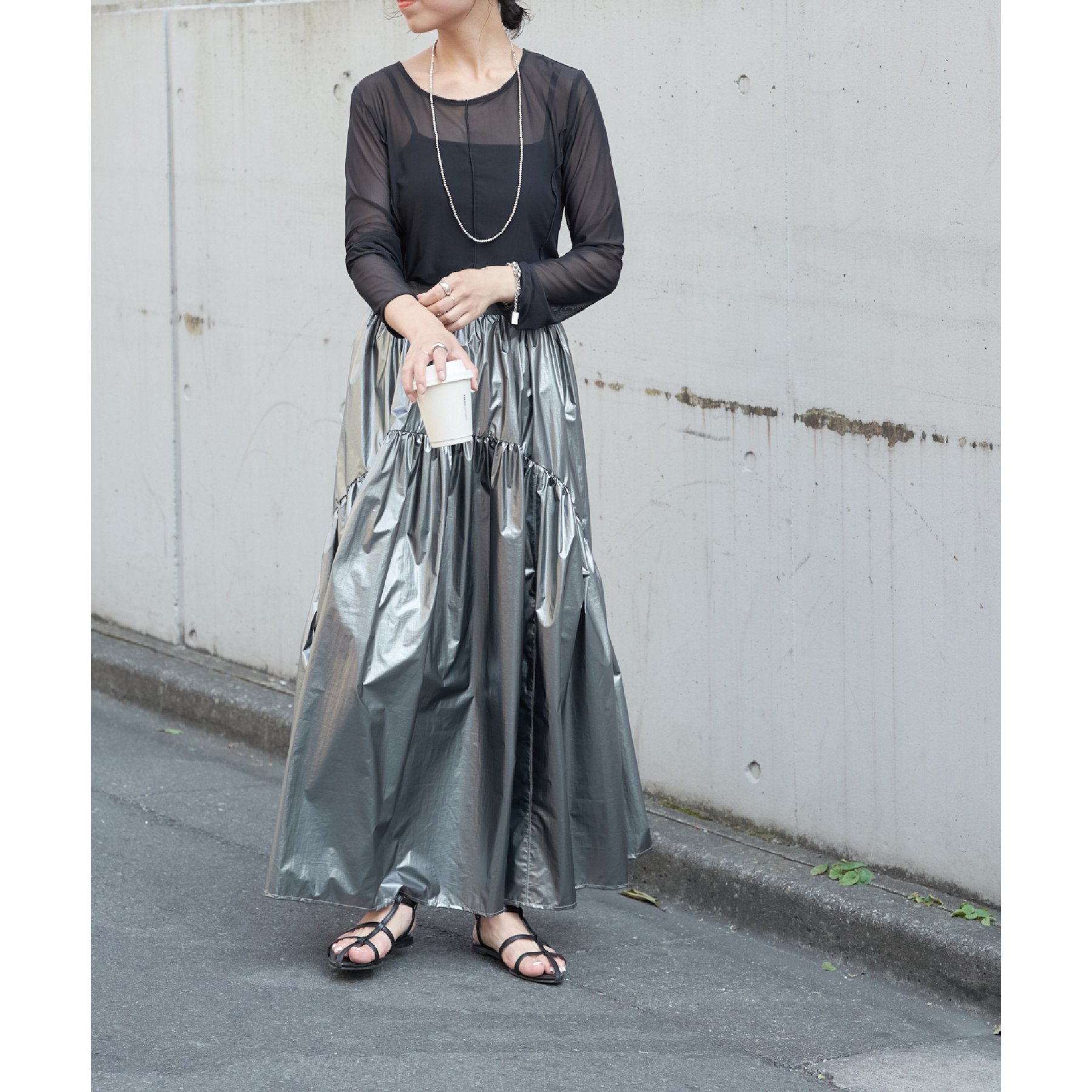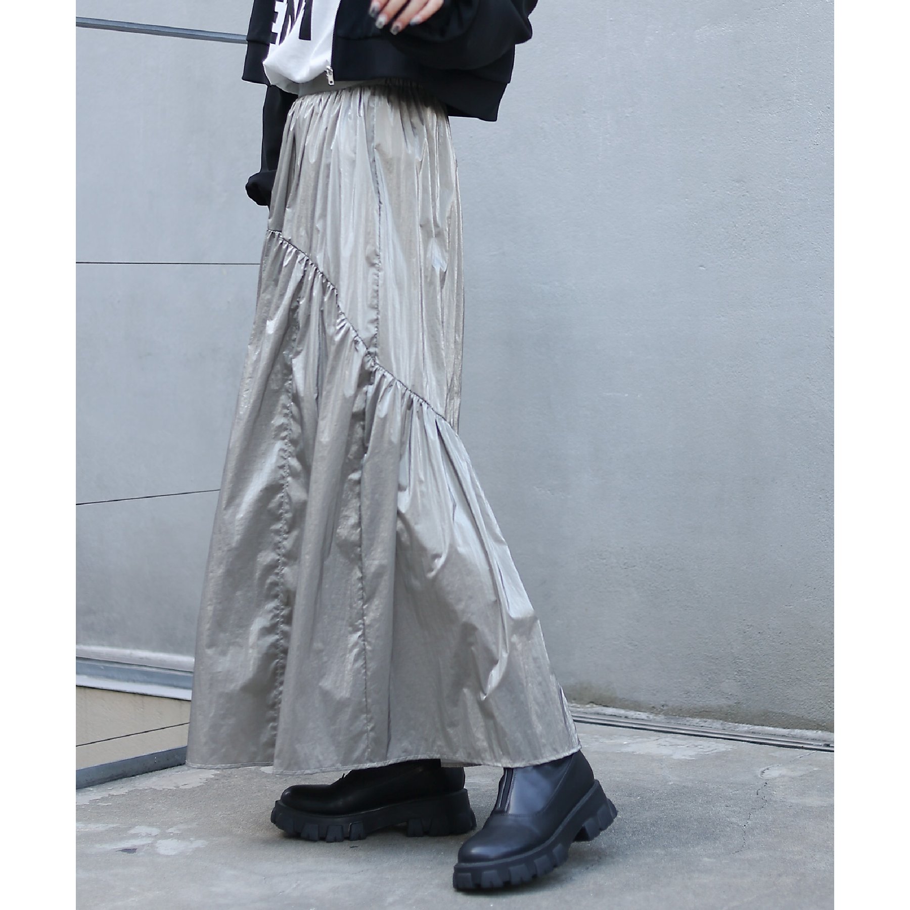 【着用動画あり】メタリックラウンドティアードスカート