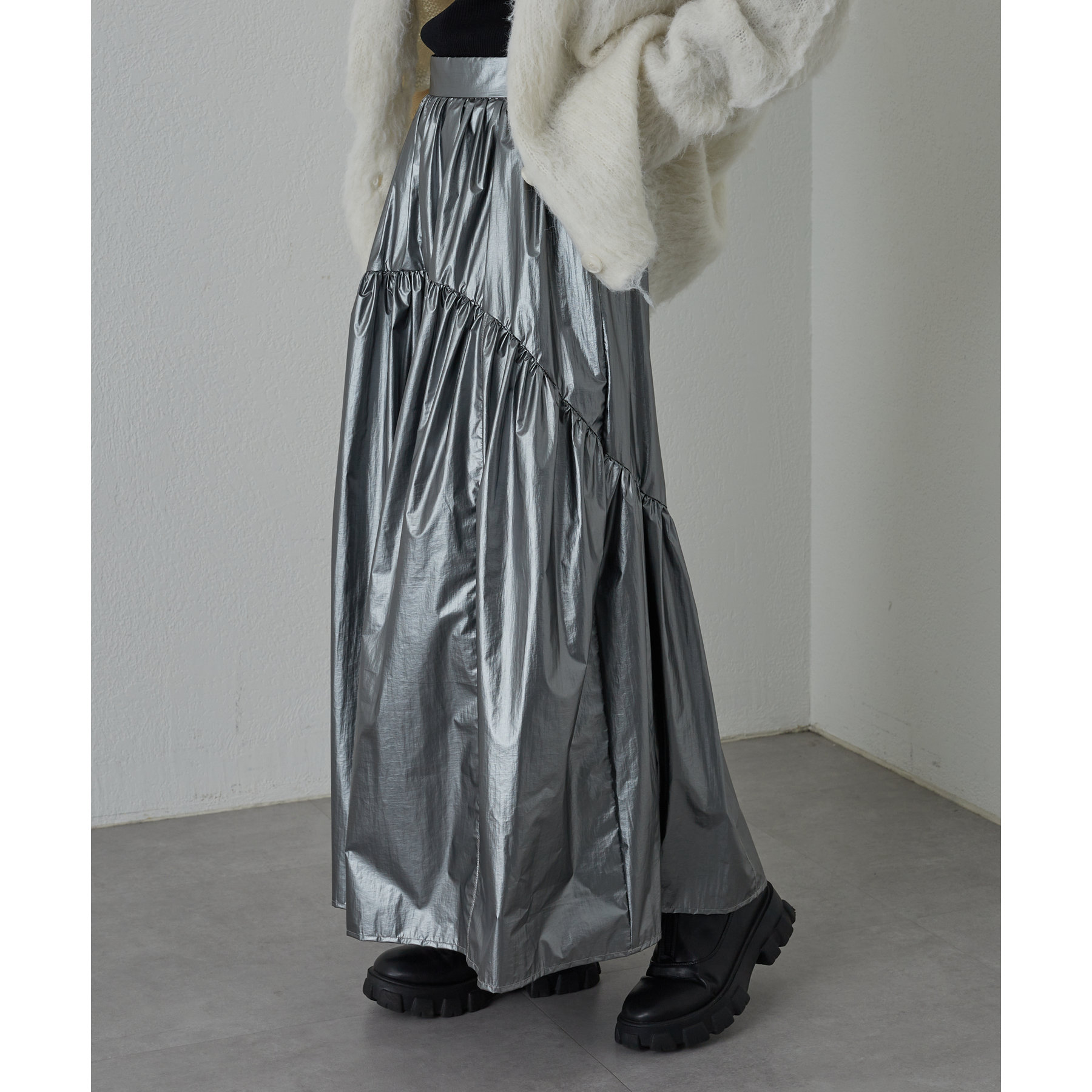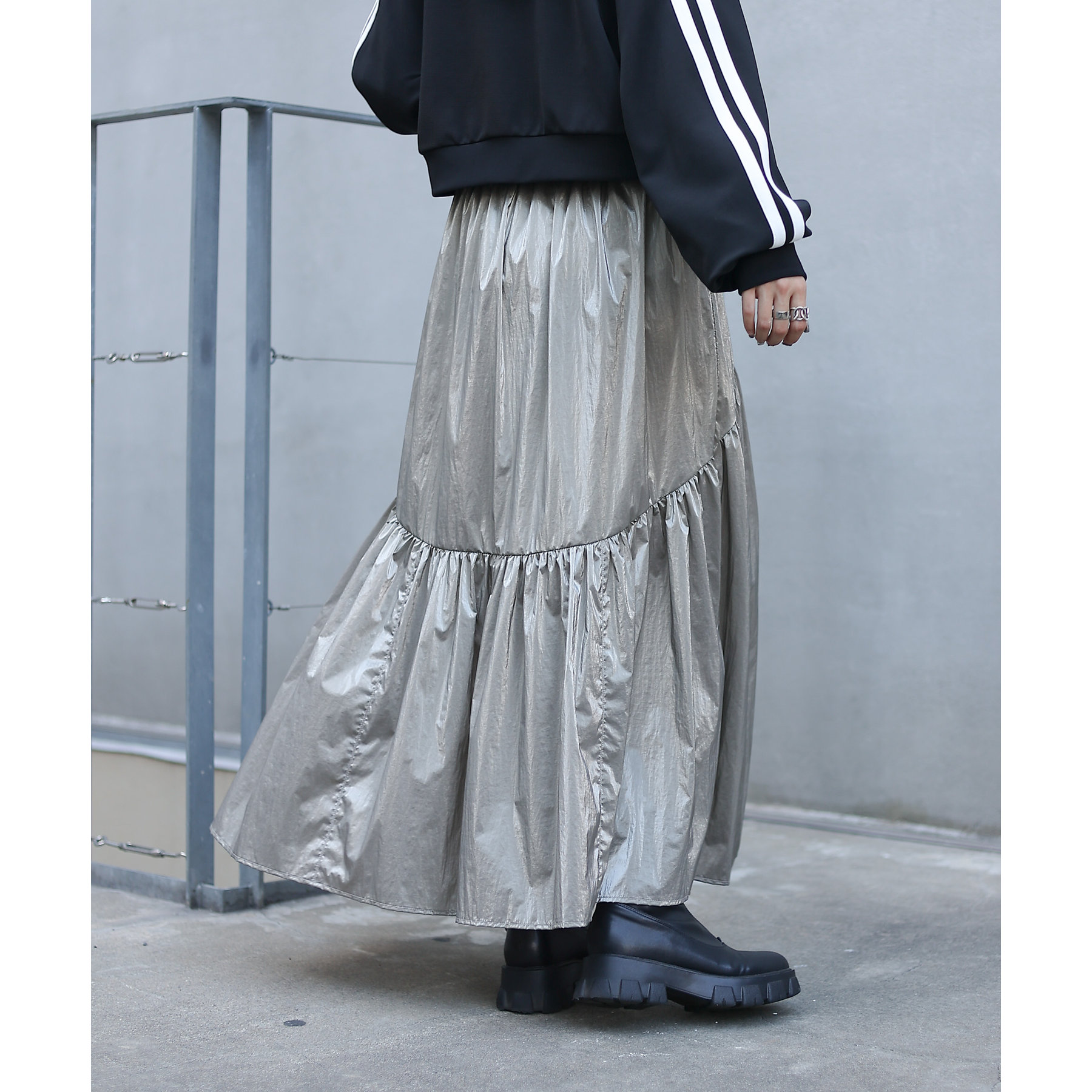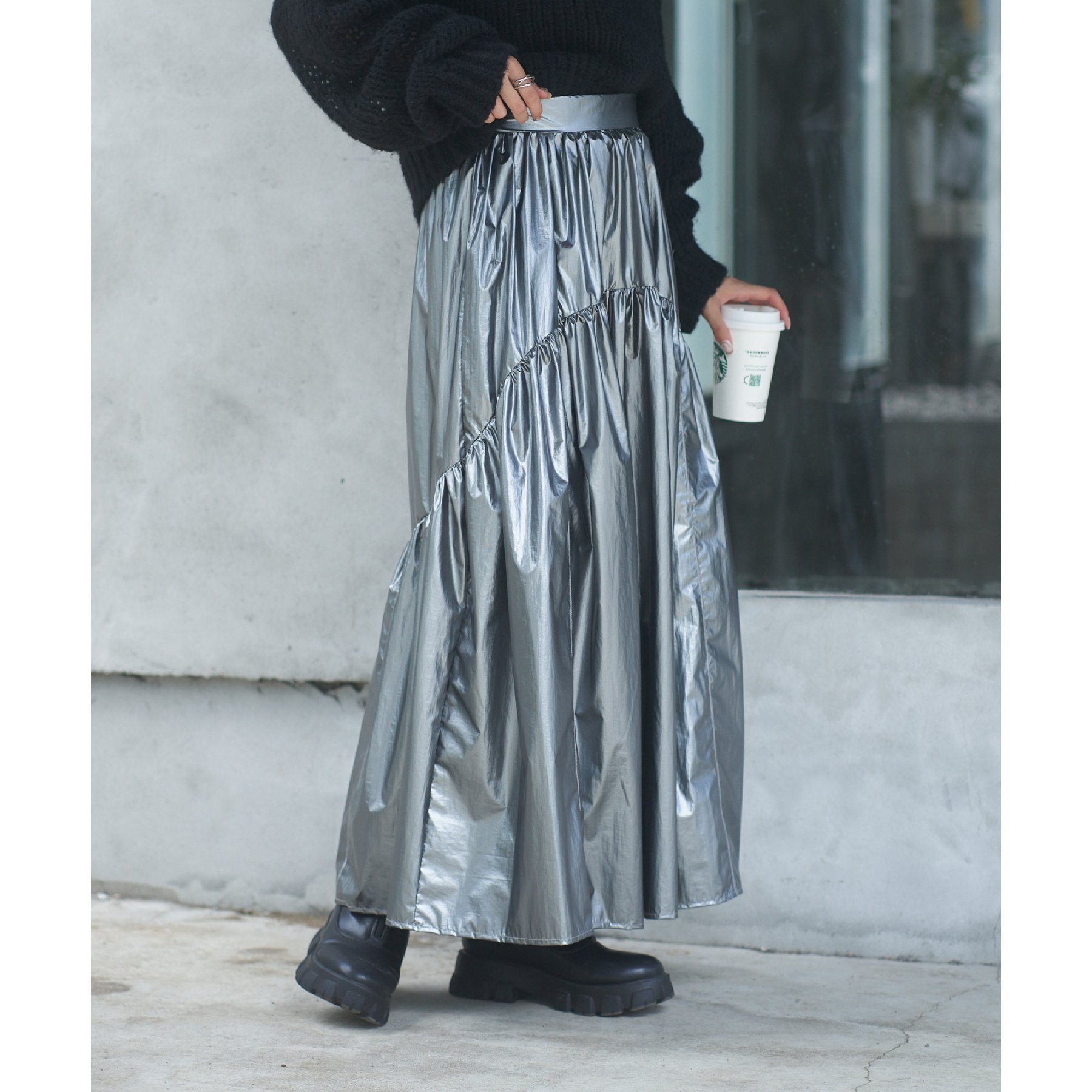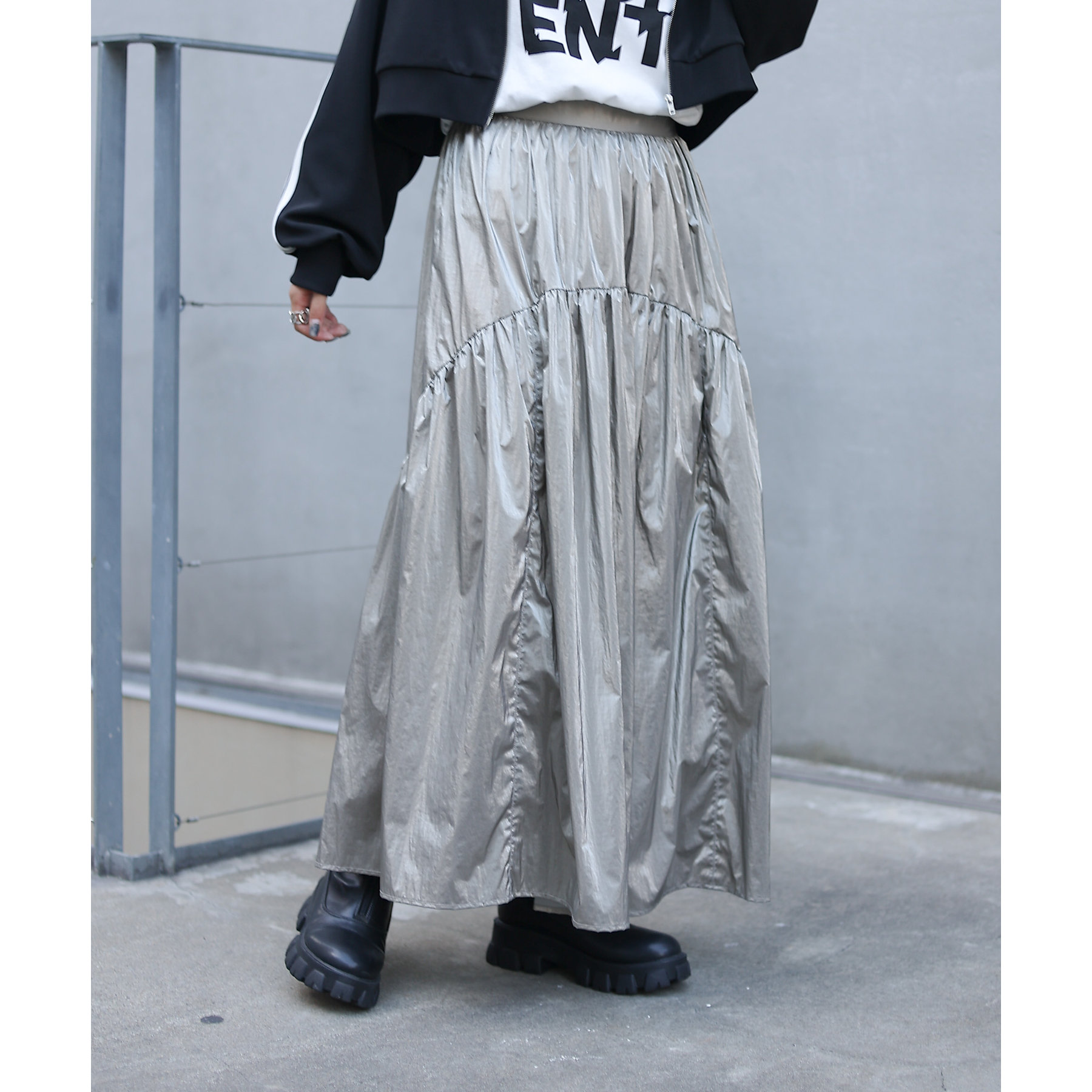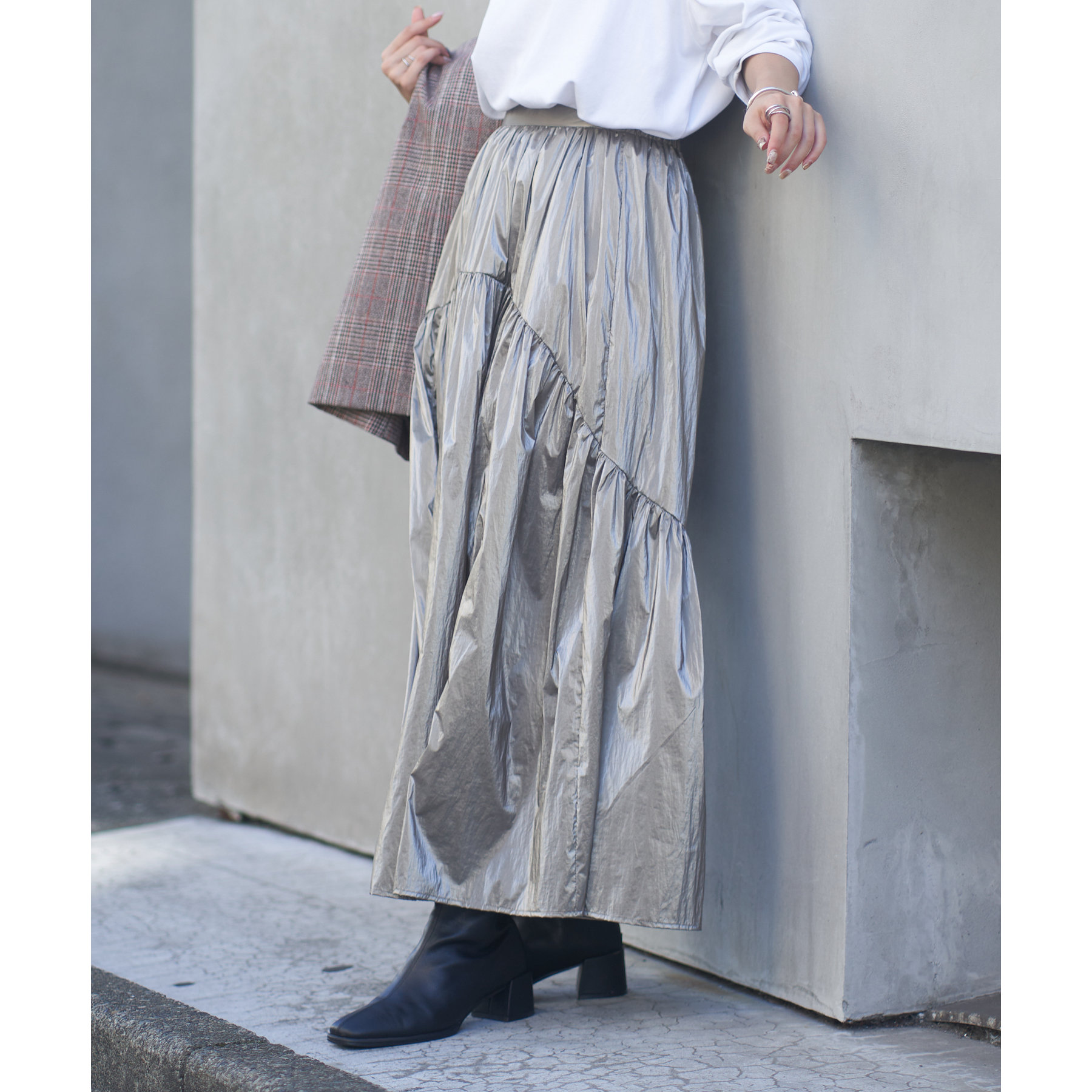 【着用動画あり】メタリックラウンドティアードスカート