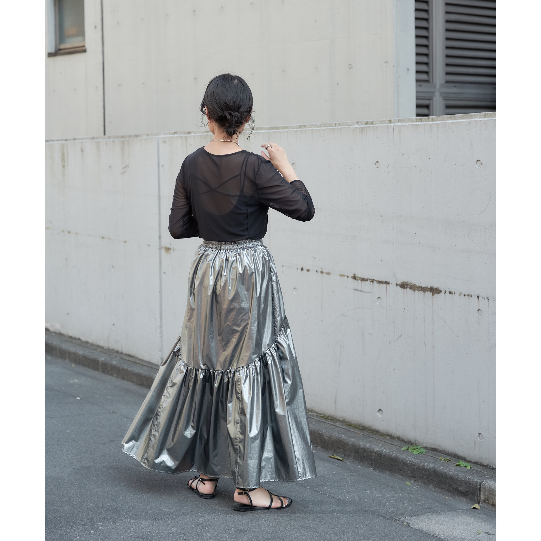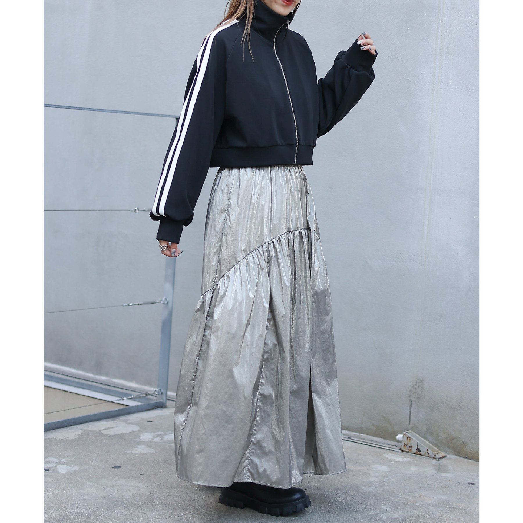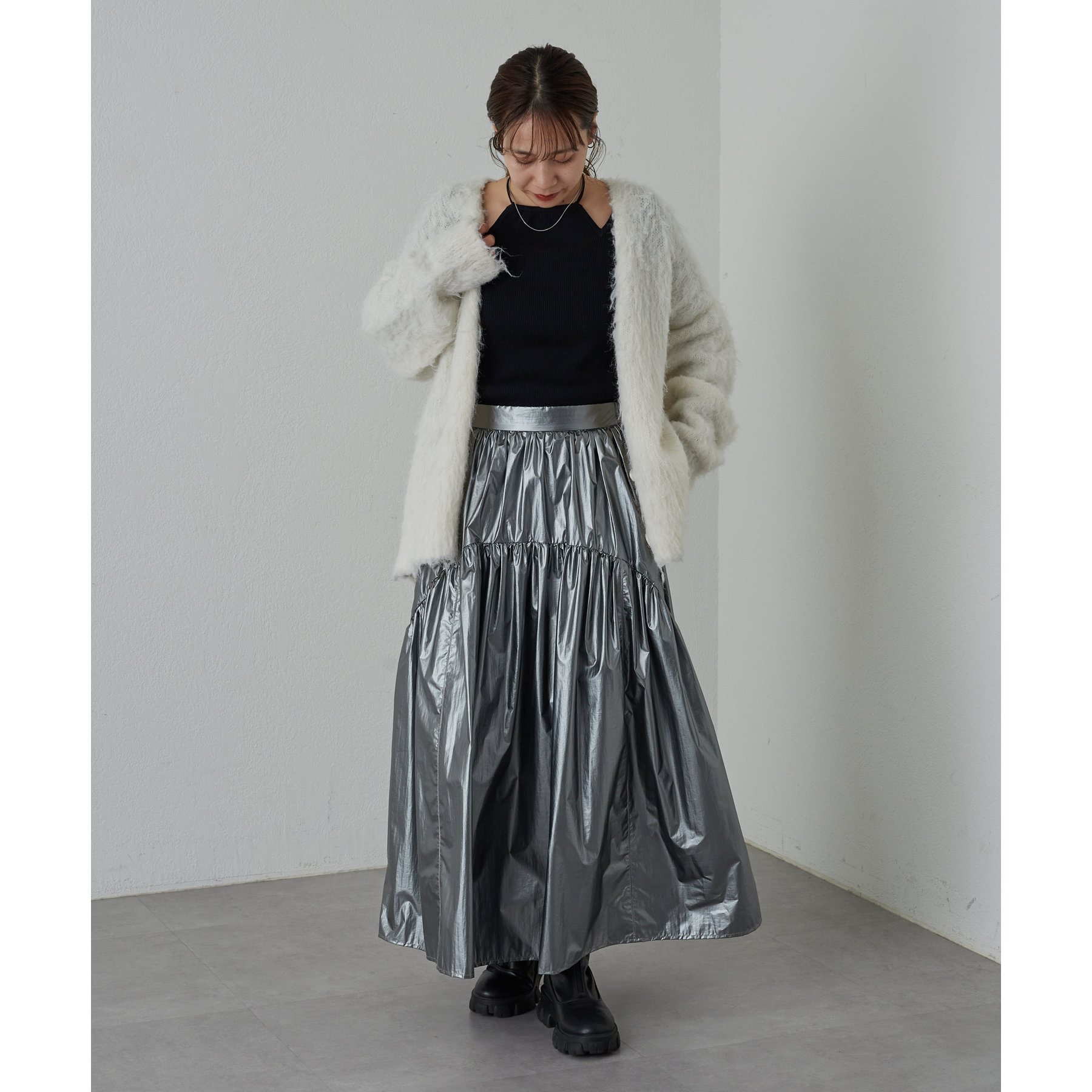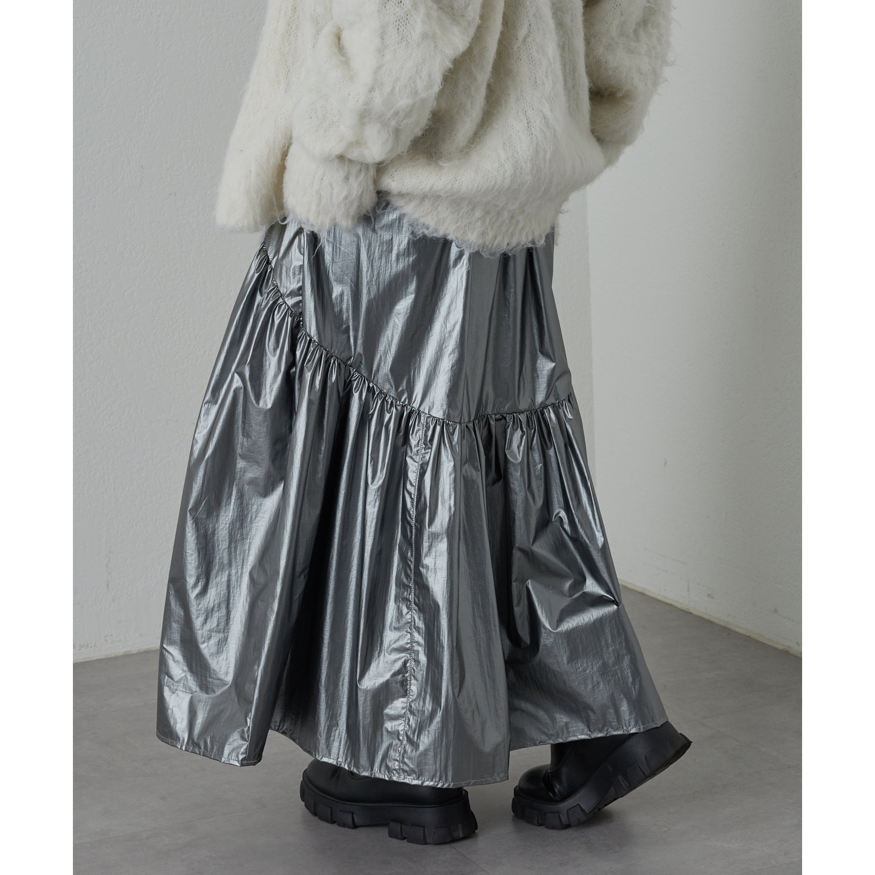 【着用動画あり】メタリックラウンドティアードスカート