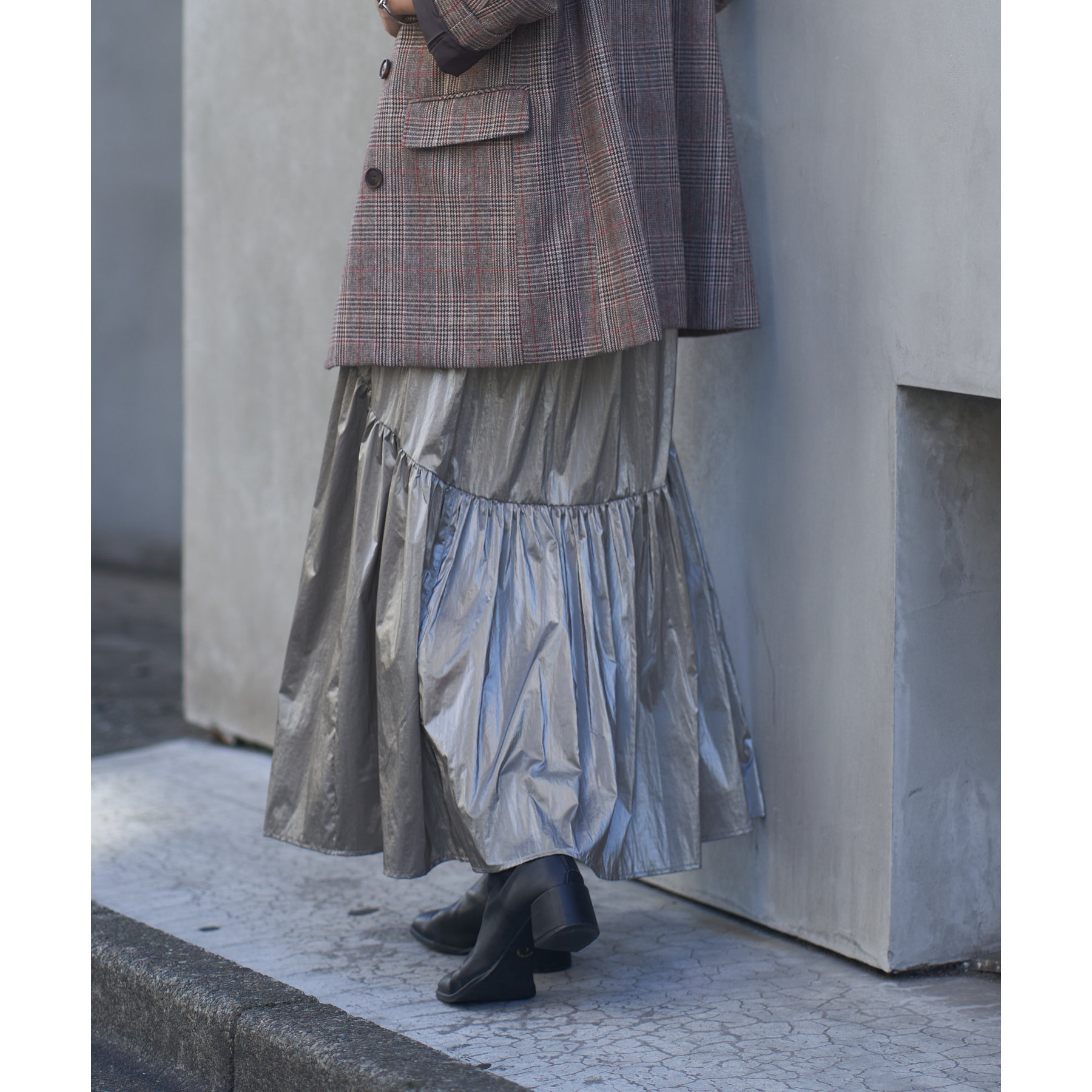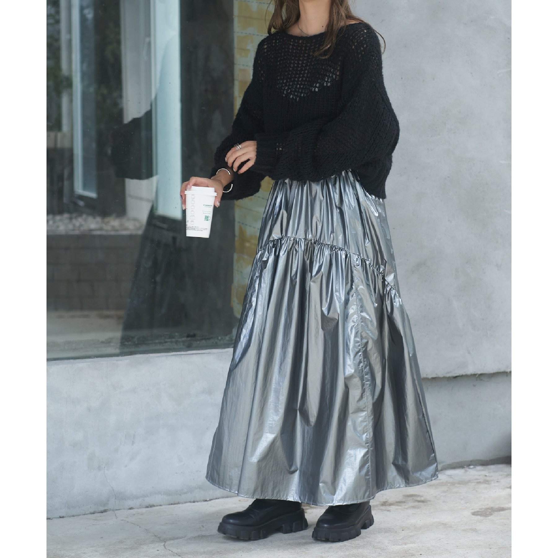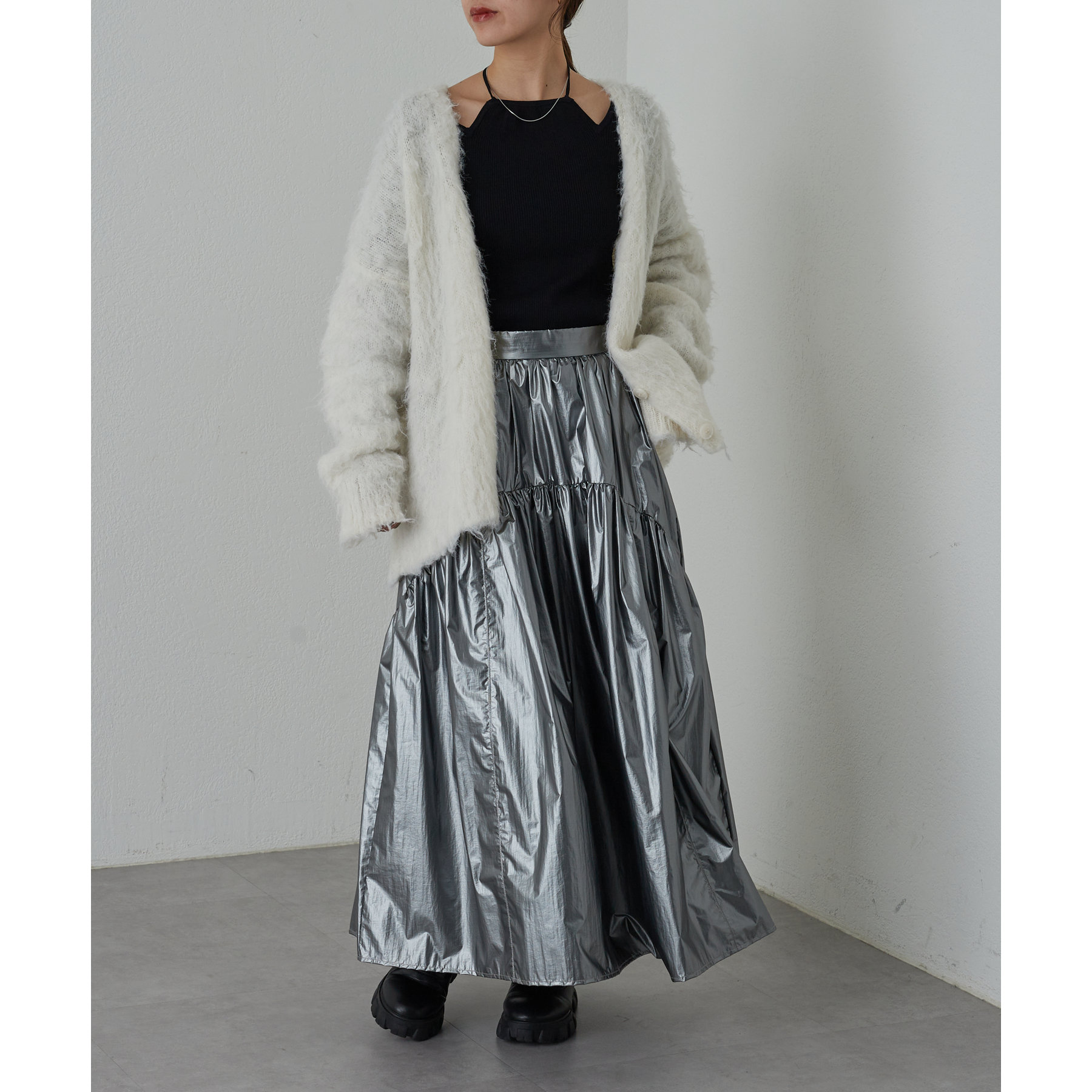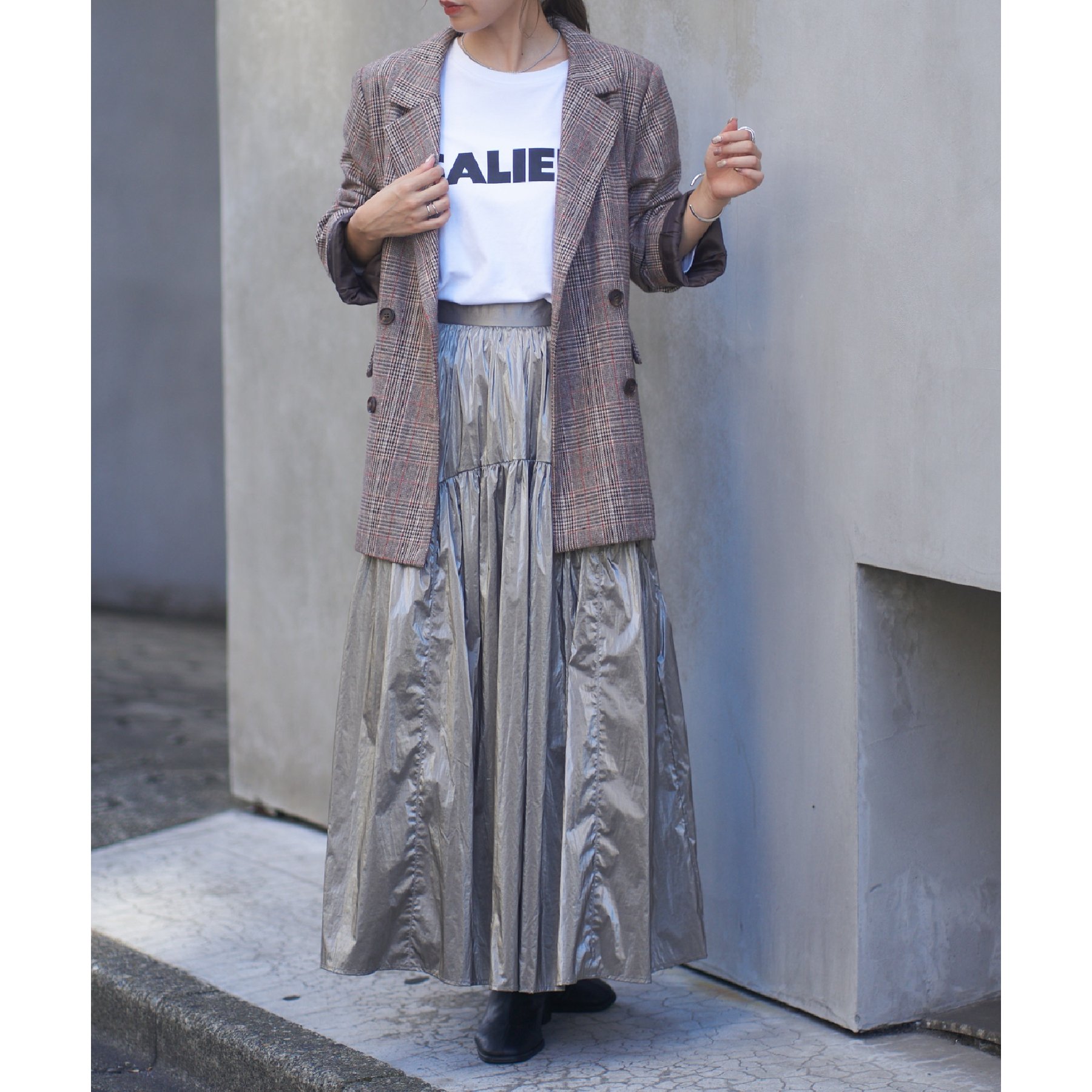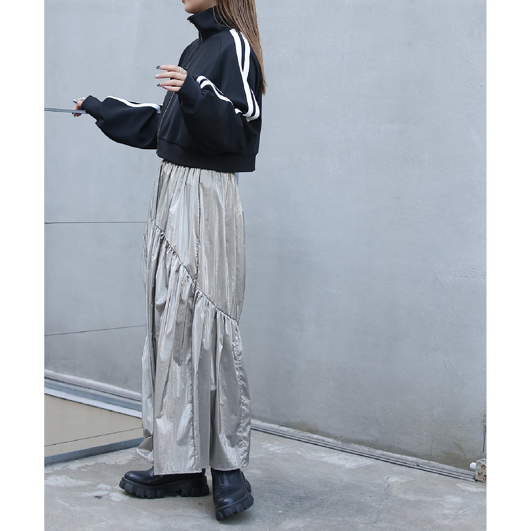 【着用動画あり】メタリックラウンドティアードスカート