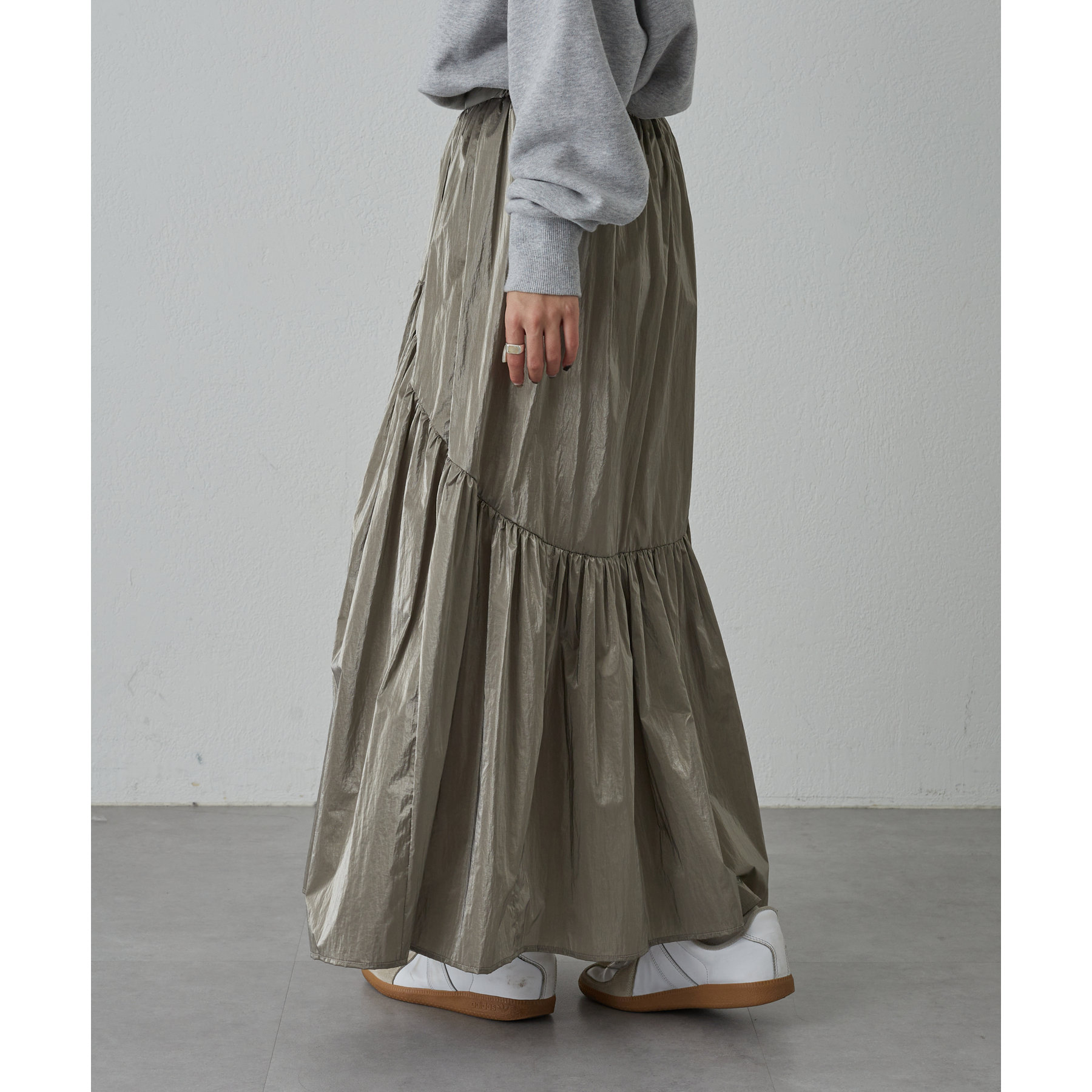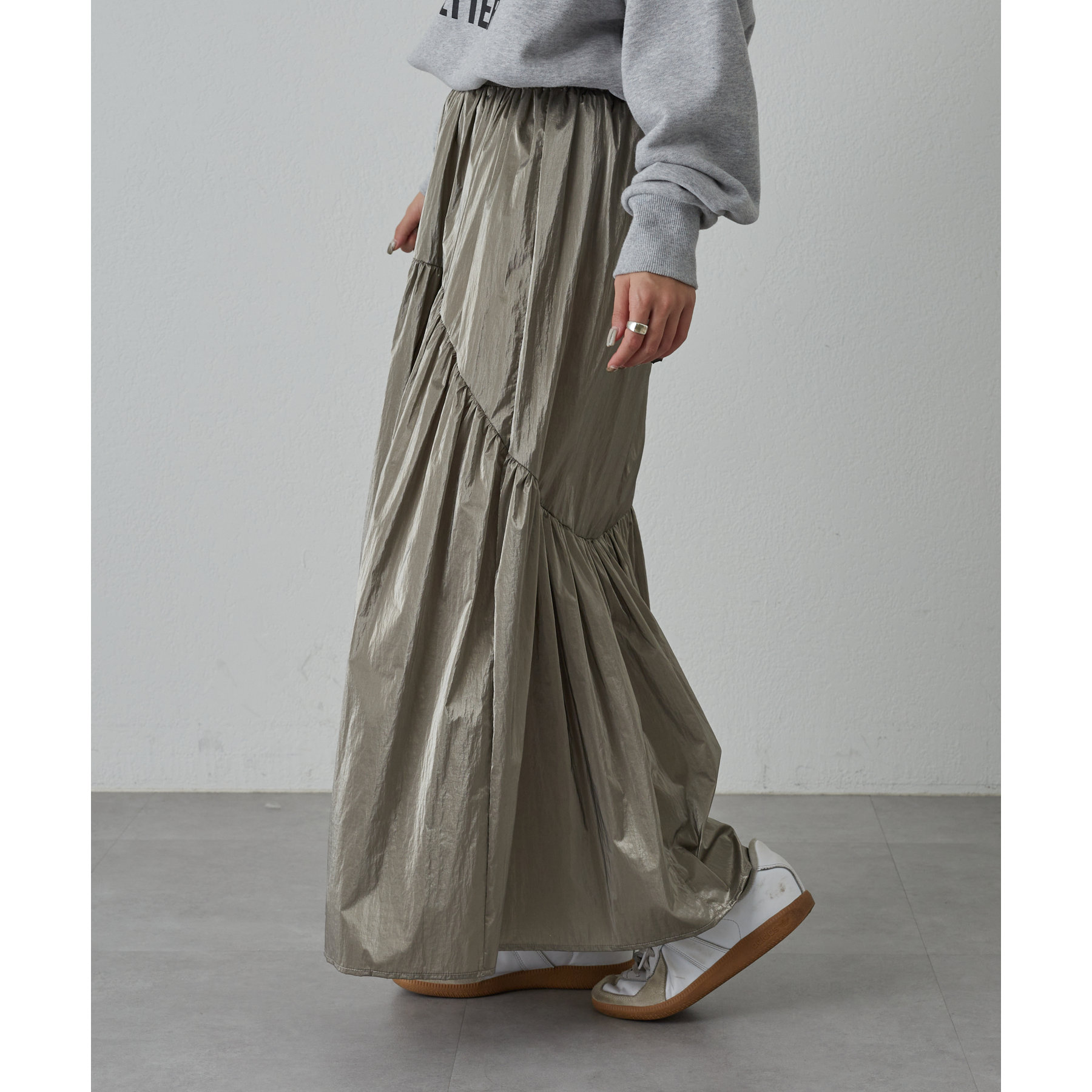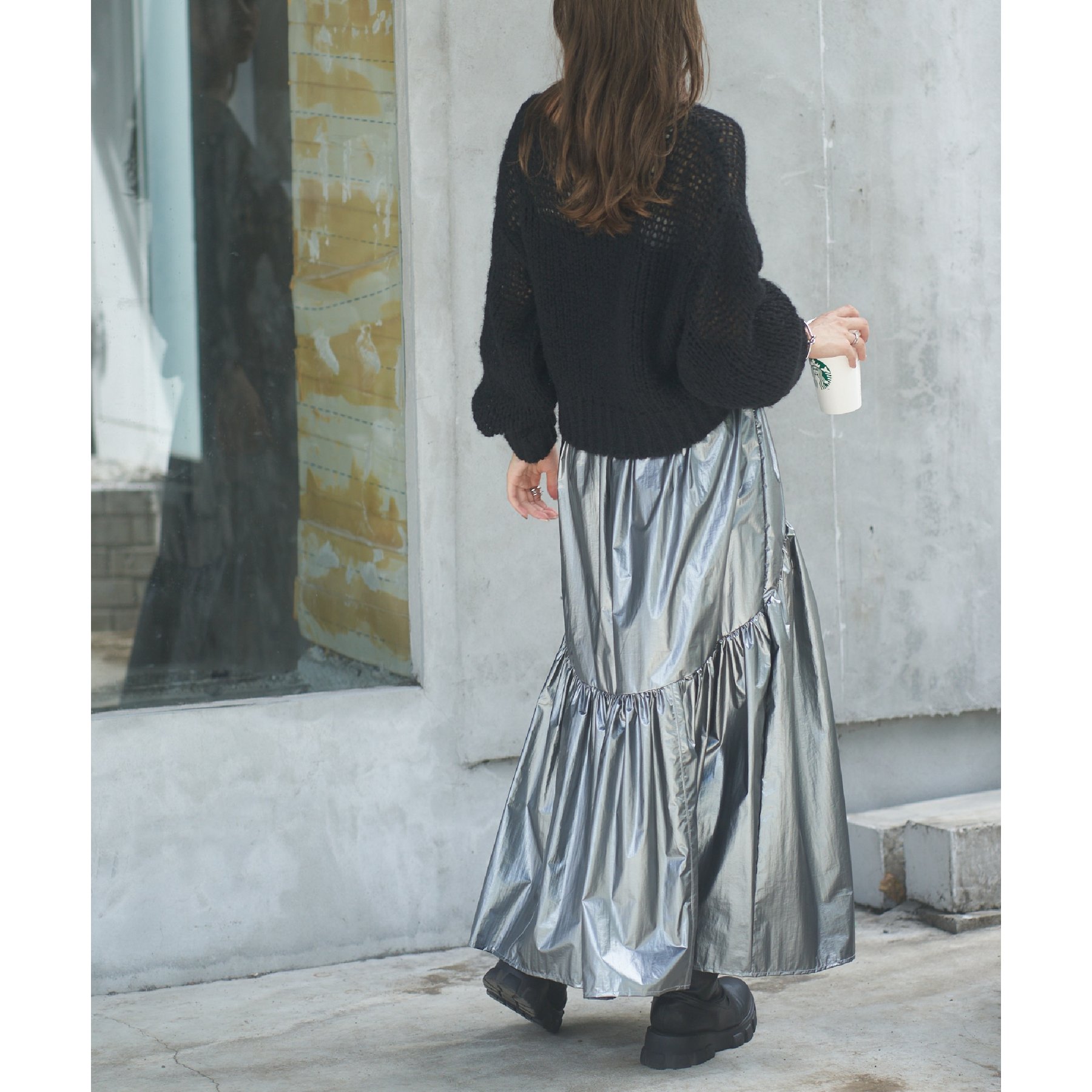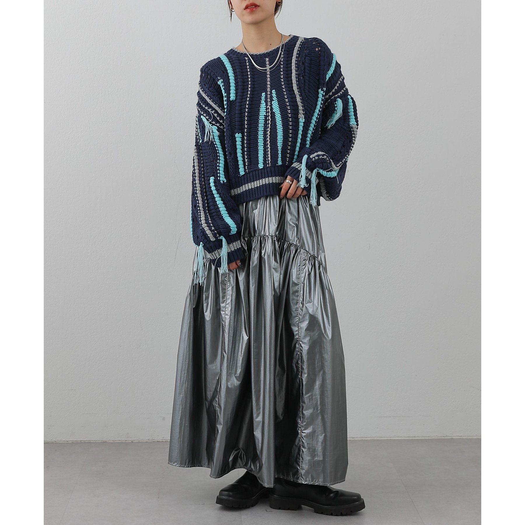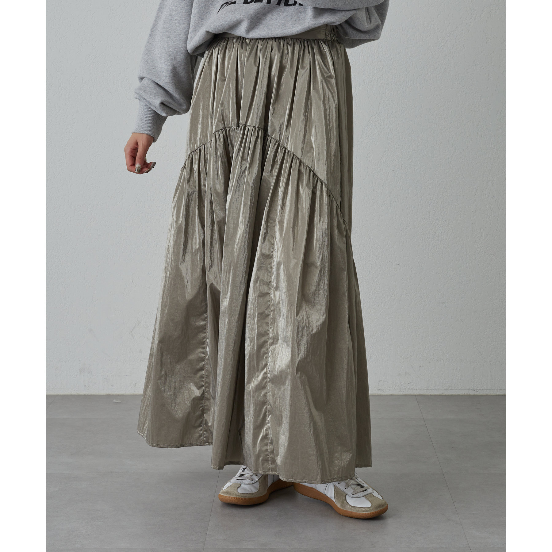 【着用動画あり】メタリックラウンドティアードスカート