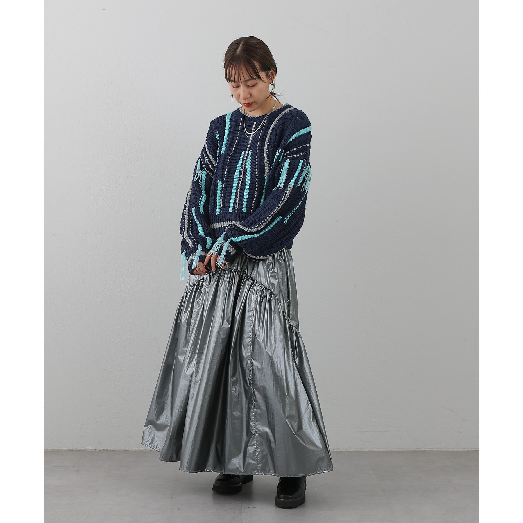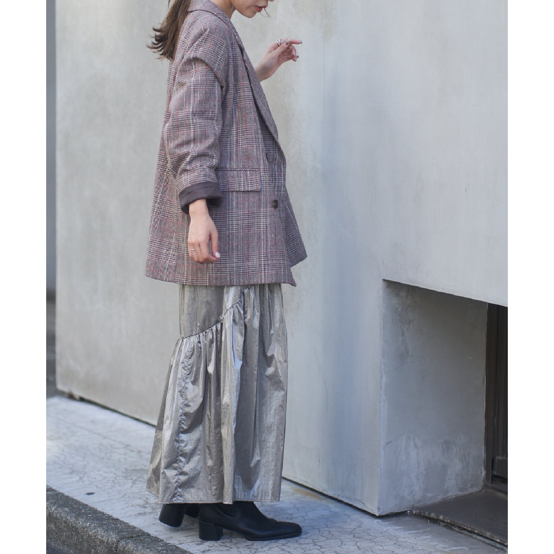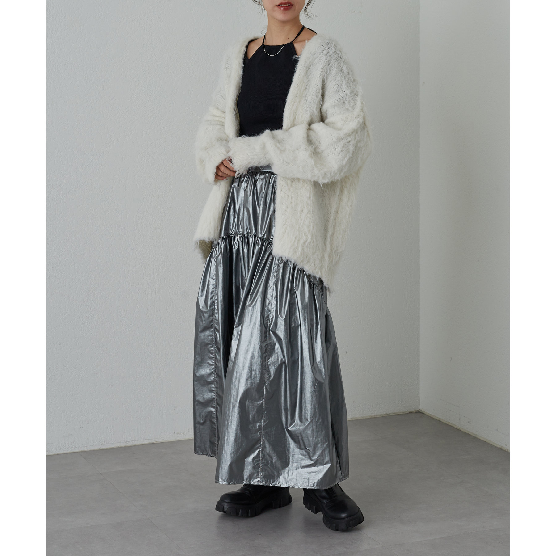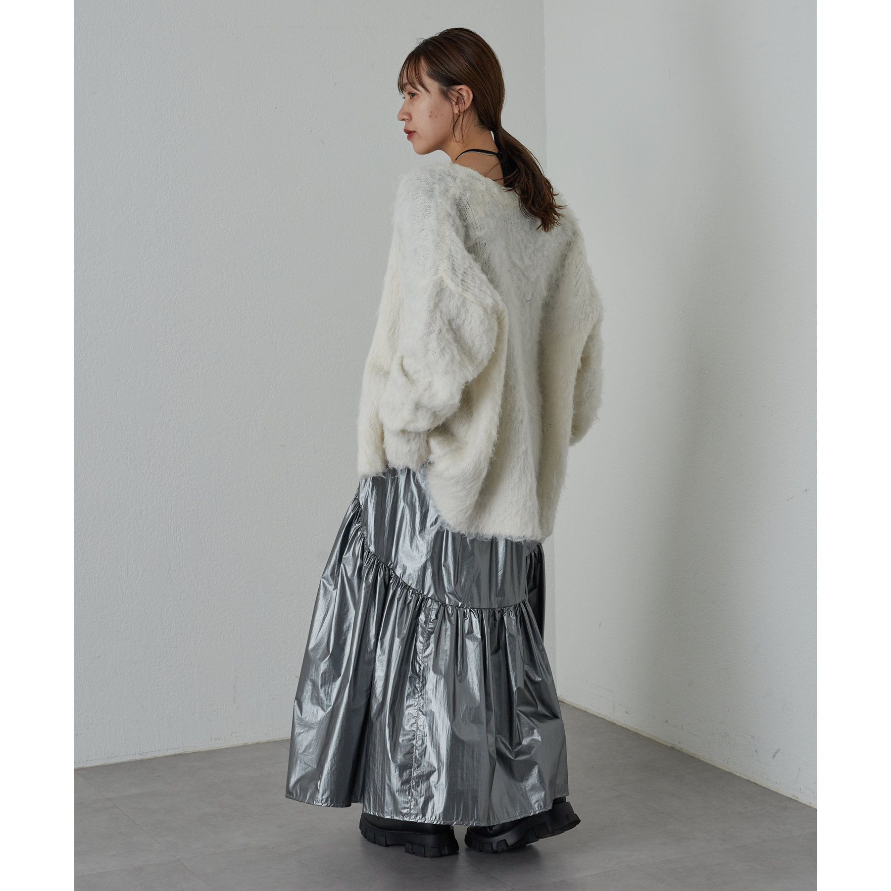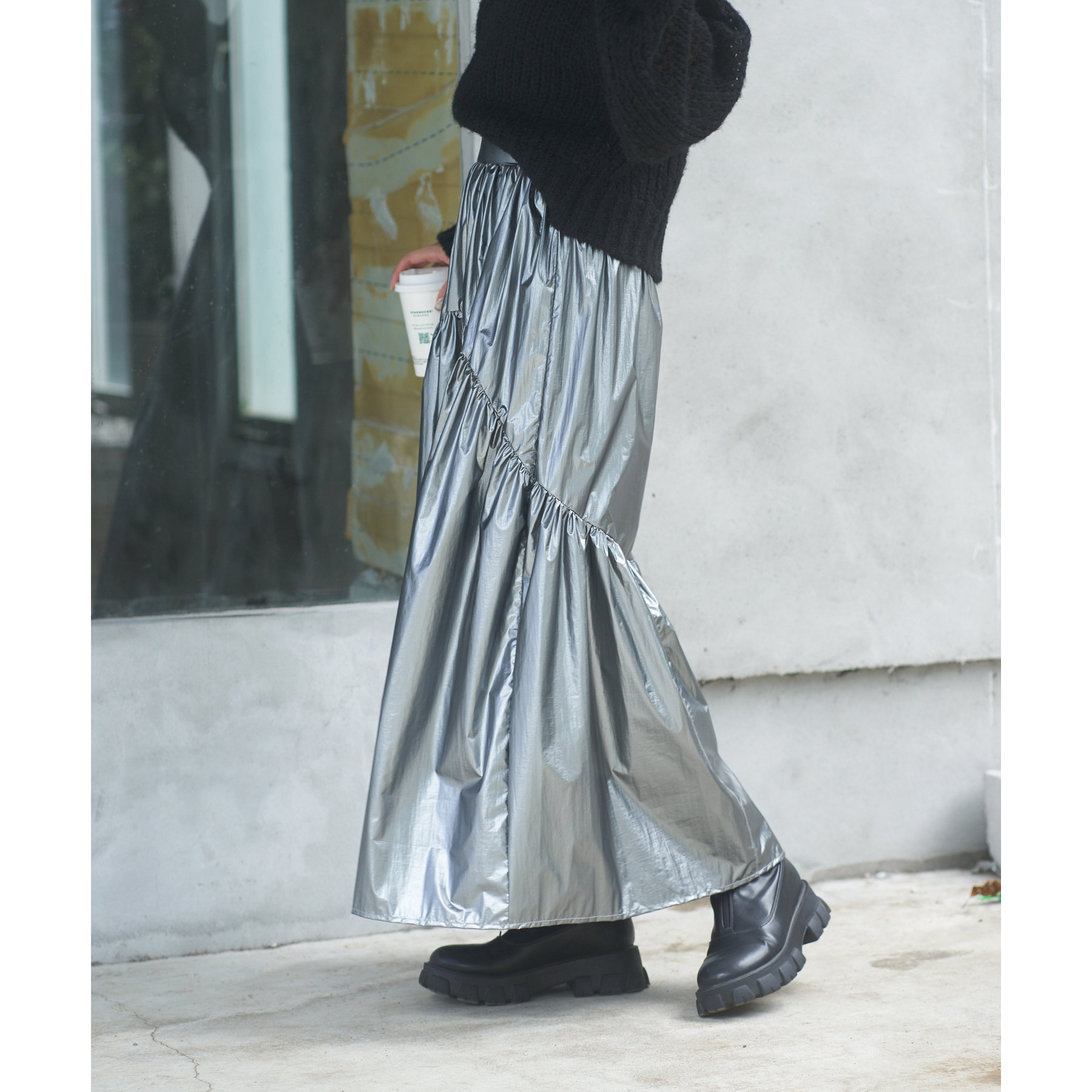 【着用動画あり】メタリックラウンドティアードスカート