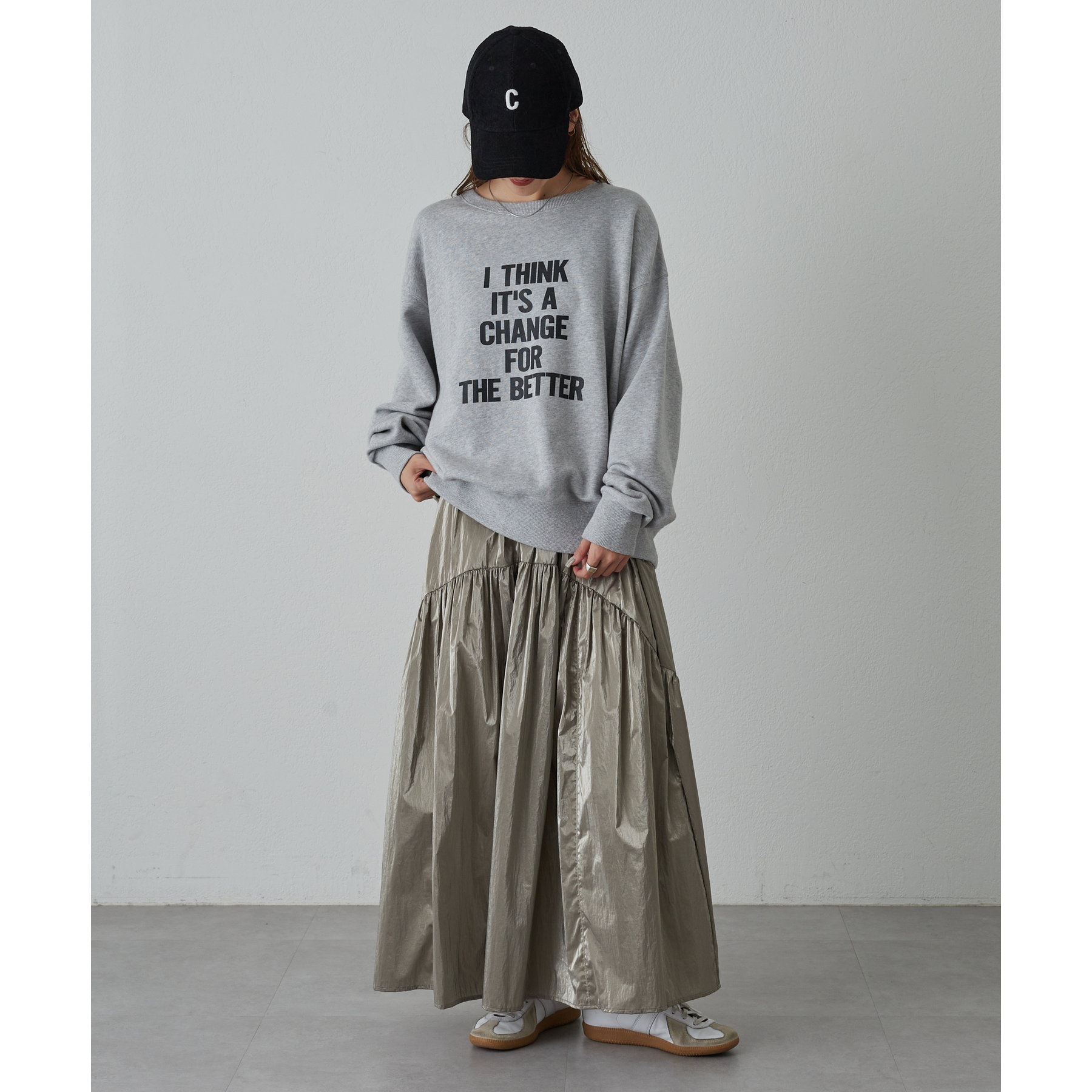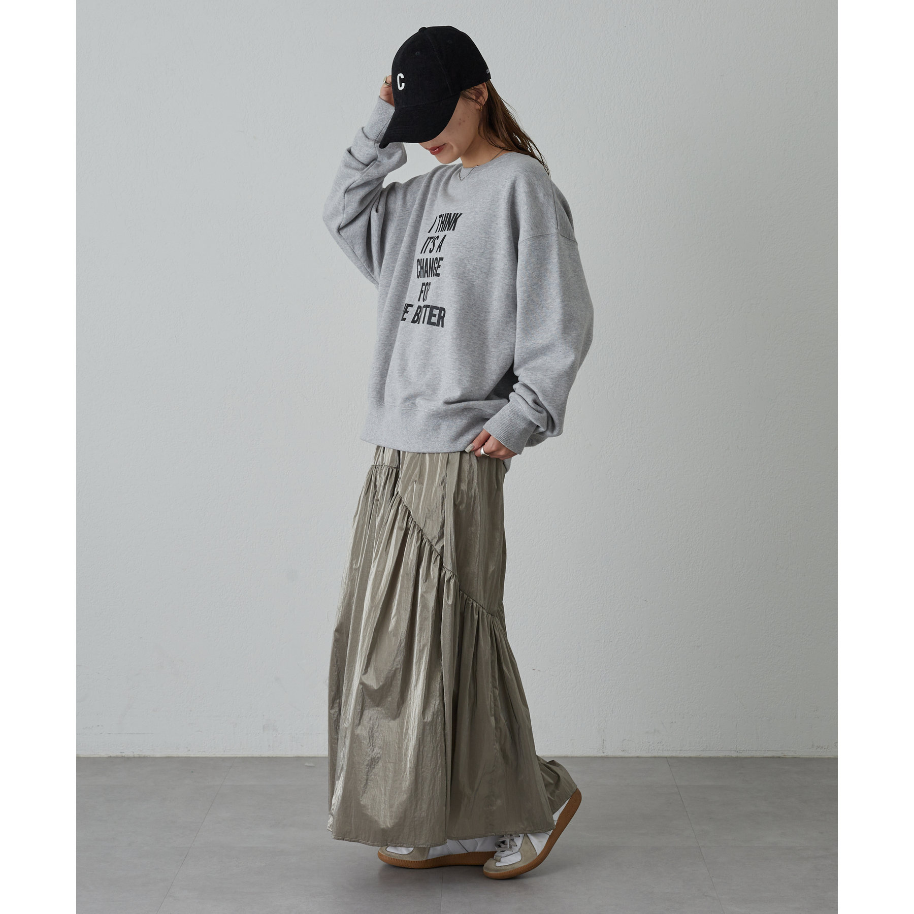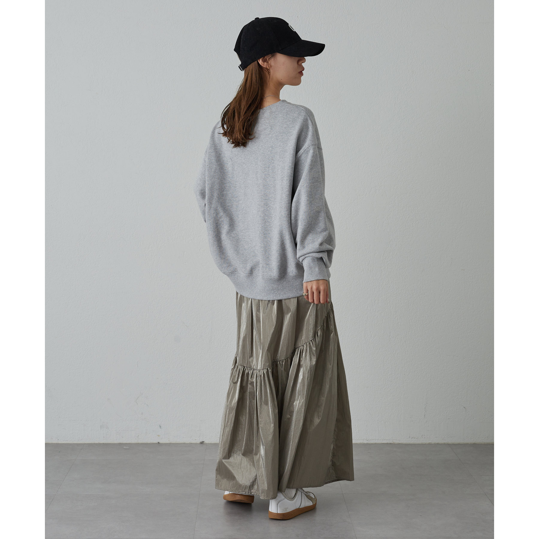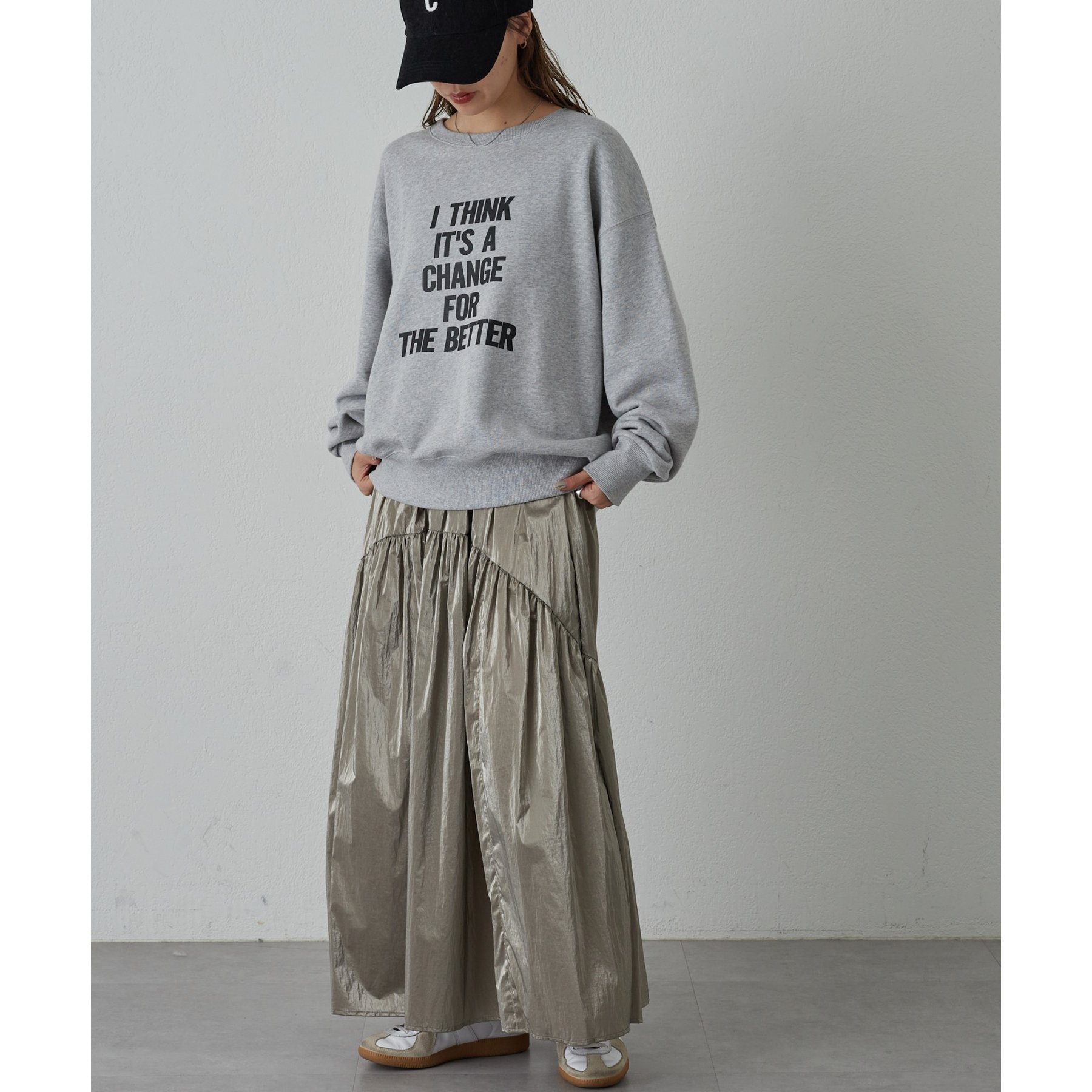 程よいギャザーとボリューム感なので、実際に着ると腰回りがすっきり見えるシルエットがお気に入りです。