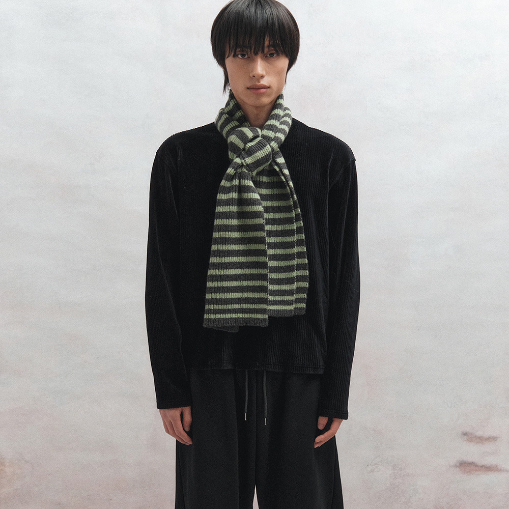 [BU25WAC01-GR] Wool Striped Long Muffler (Green)