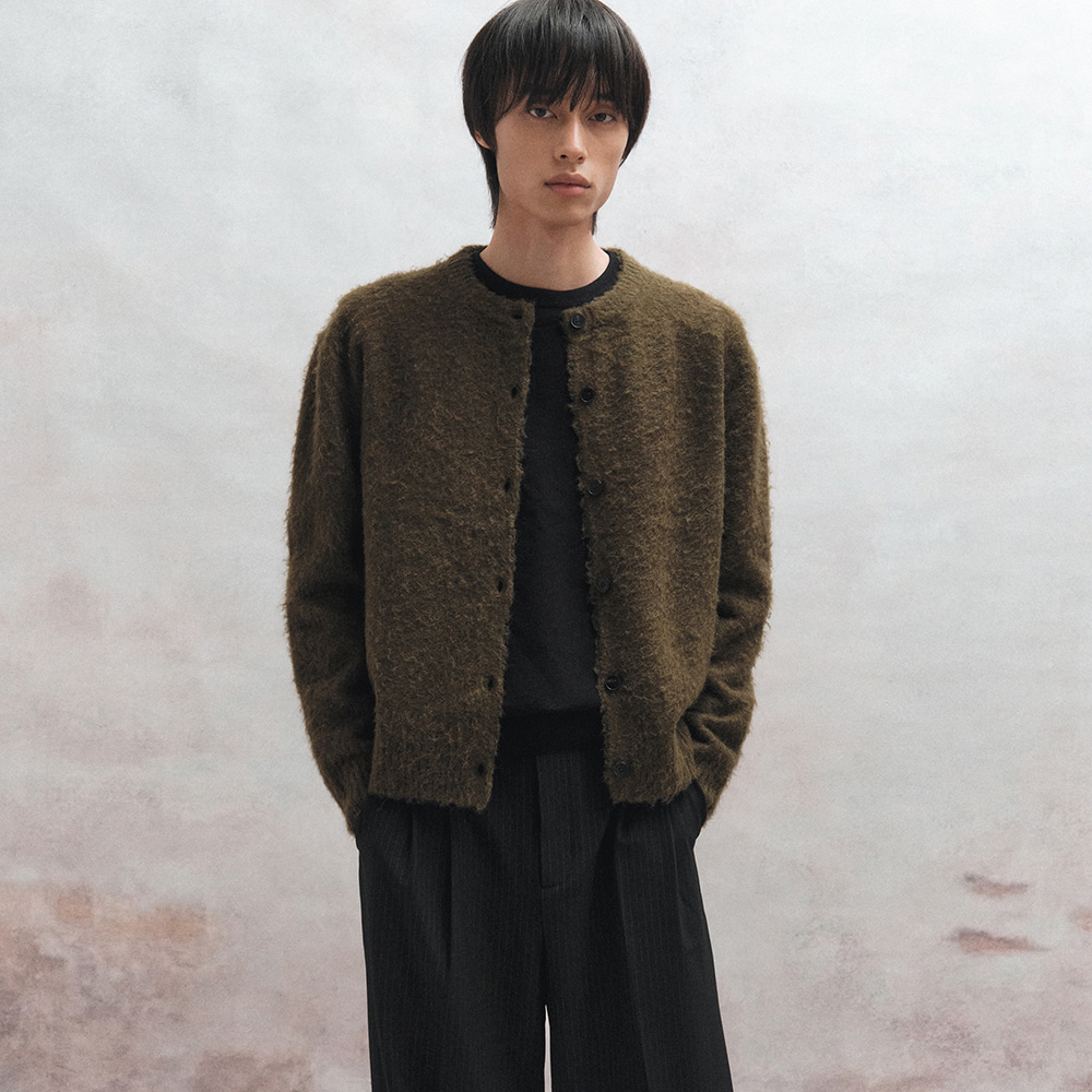 [BU25WKN41-OV] Alpaca Bouclé Cropped Cardigan (Olive)