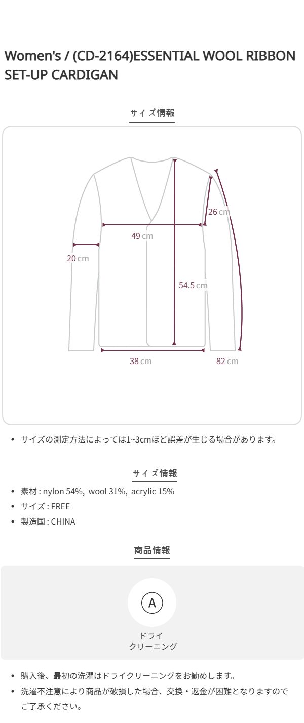 (CD-2164)ESSENTIAL WOOL RIBBON SET-UP CARDIGAN