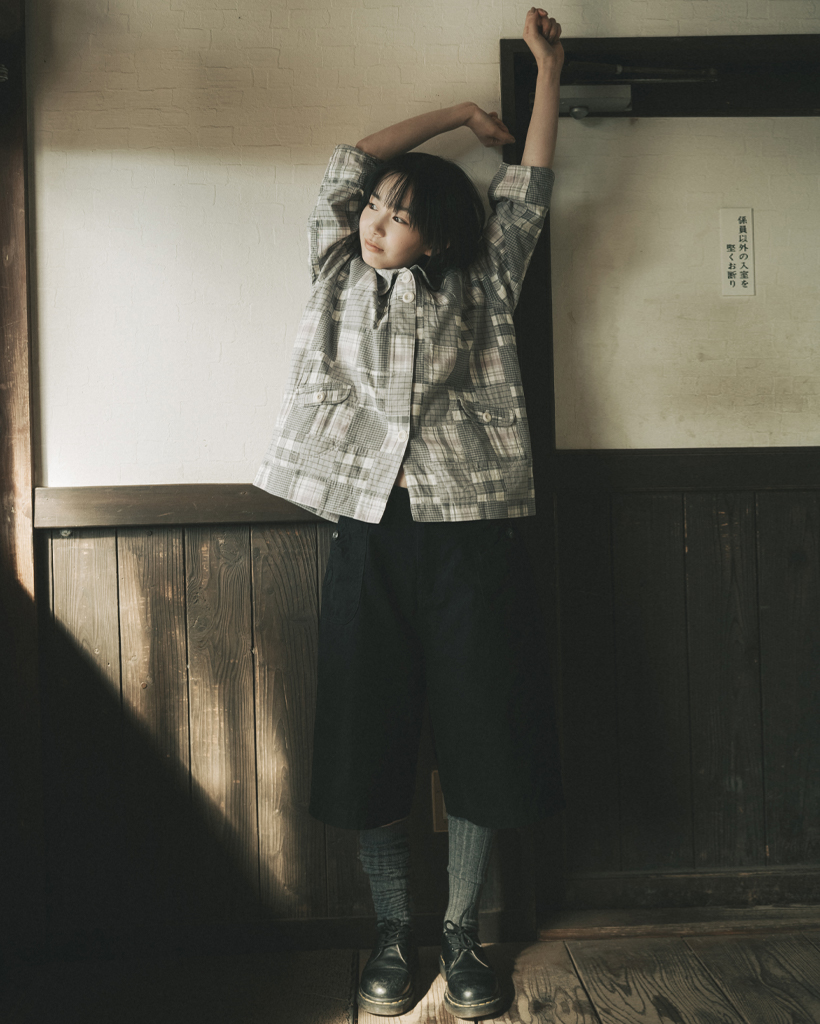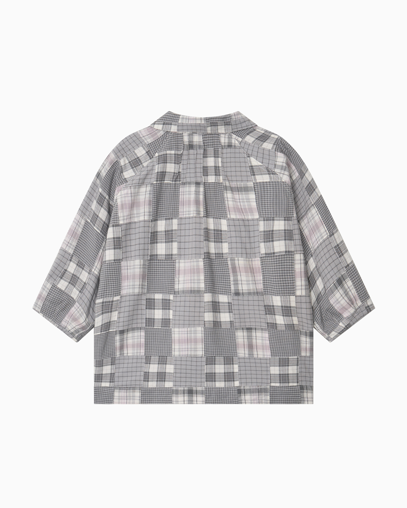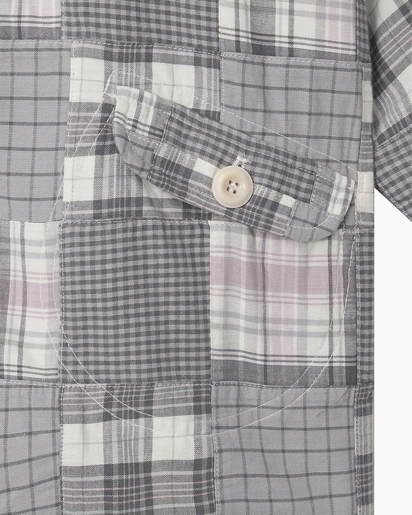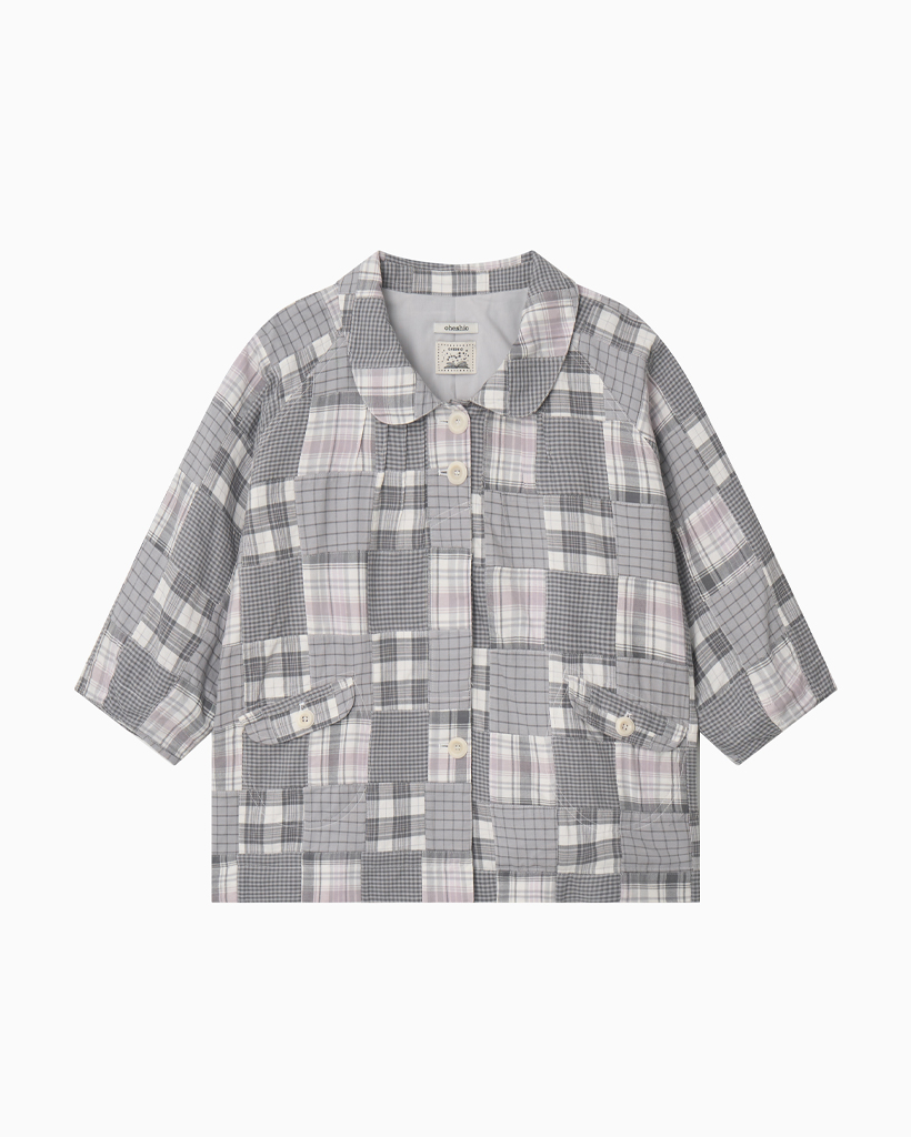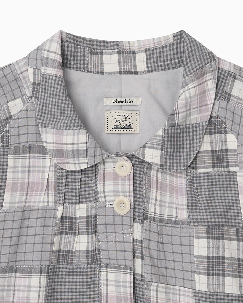 ROUNDED COLLAR PATCHWORK JACKET, GRAY CHECK