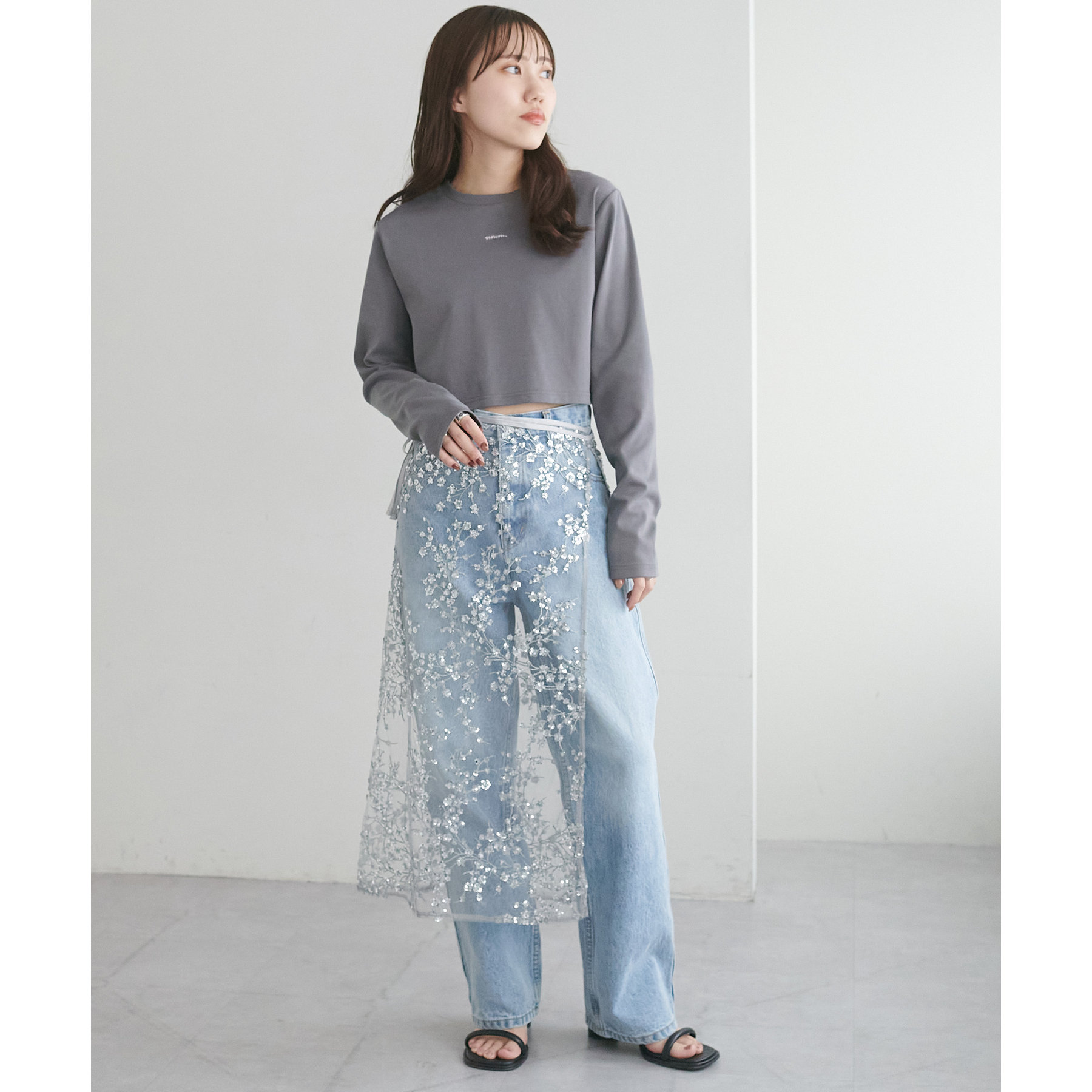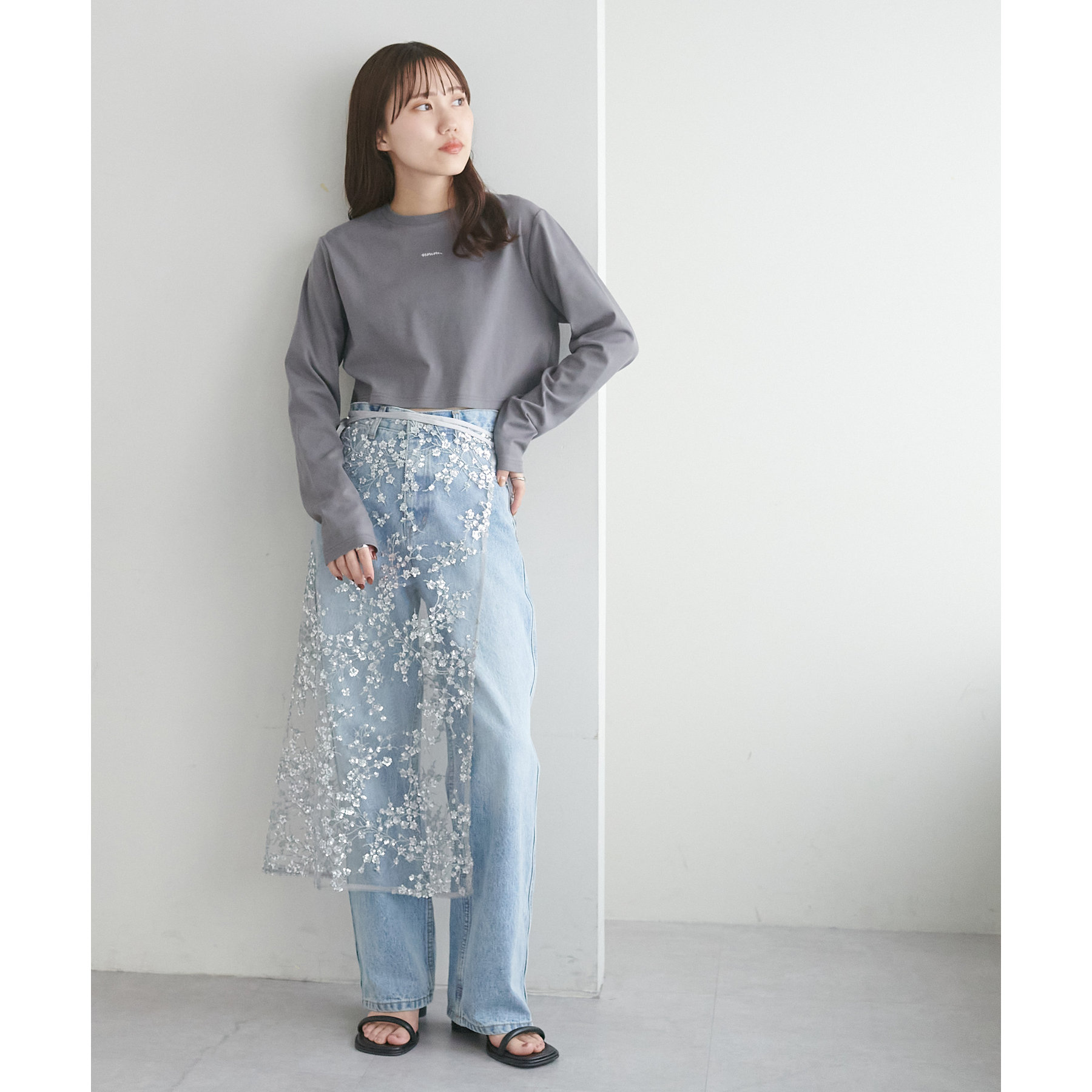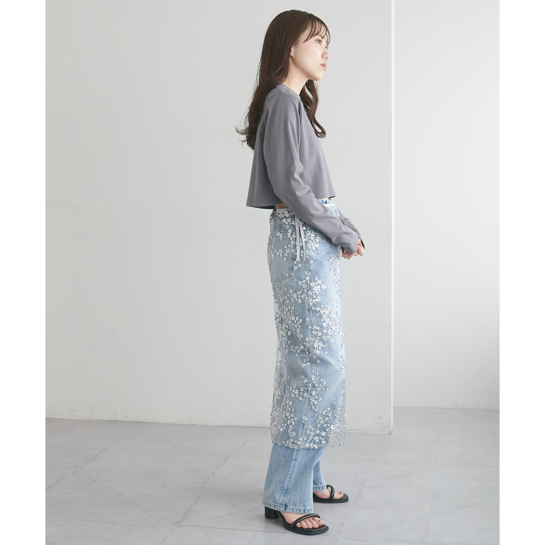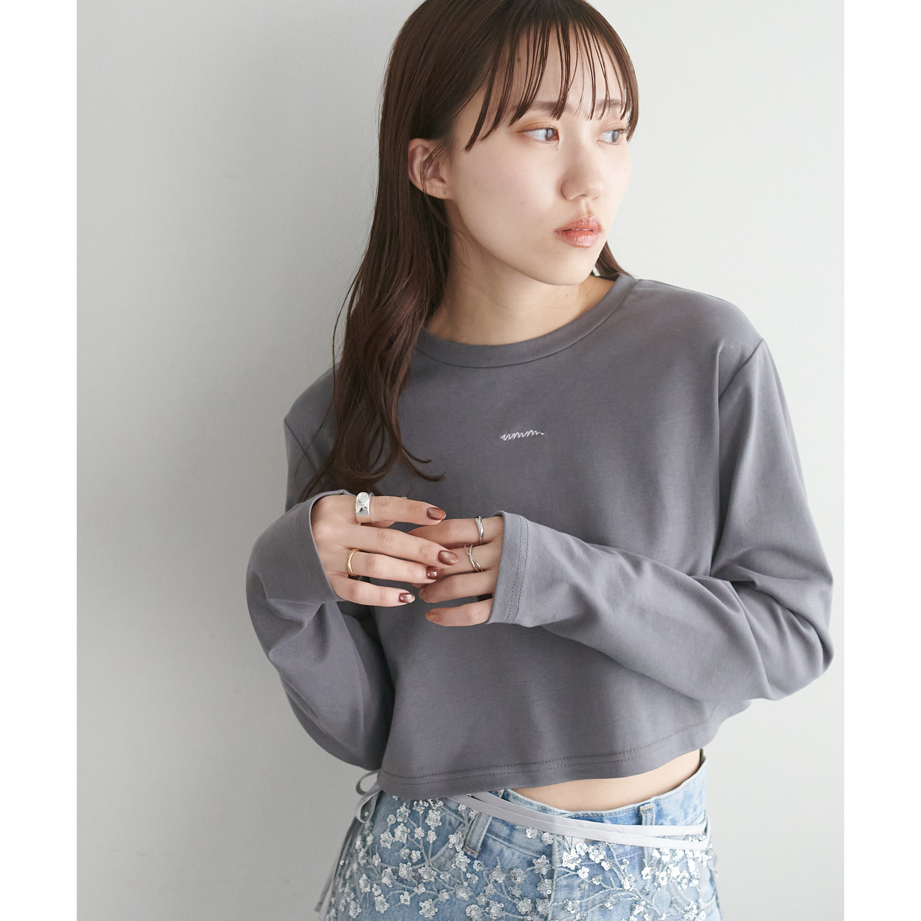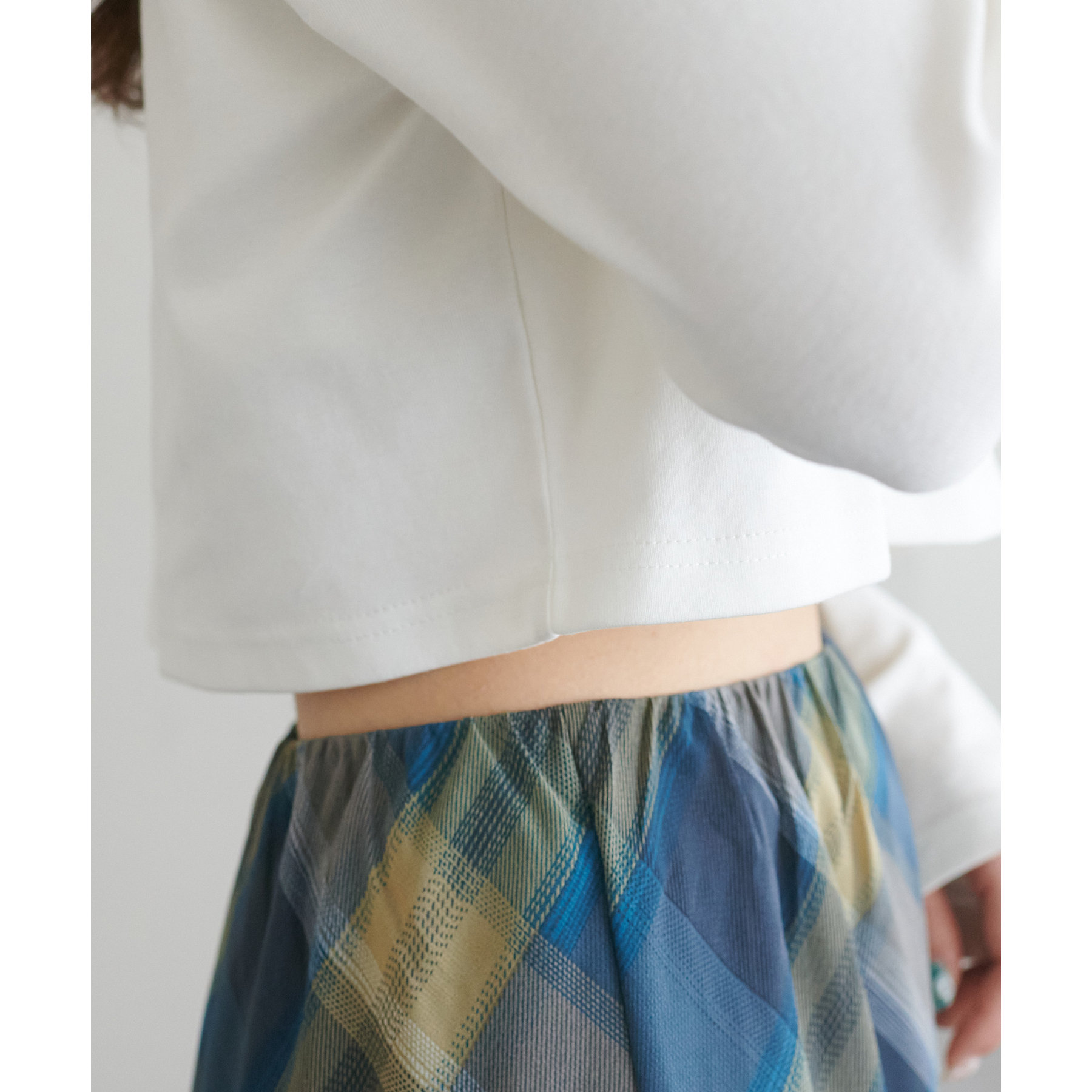 ショート丈だからこそ、ハイウエストボトムと合わせることでスタイルアップ効果が期待できます!