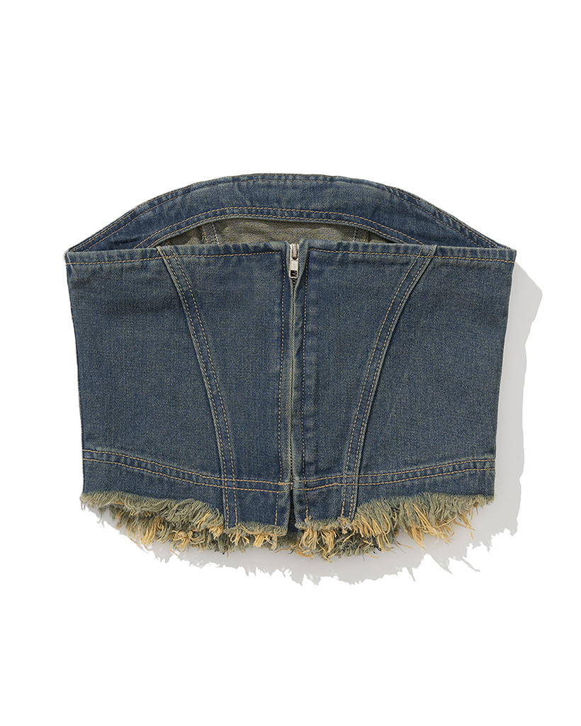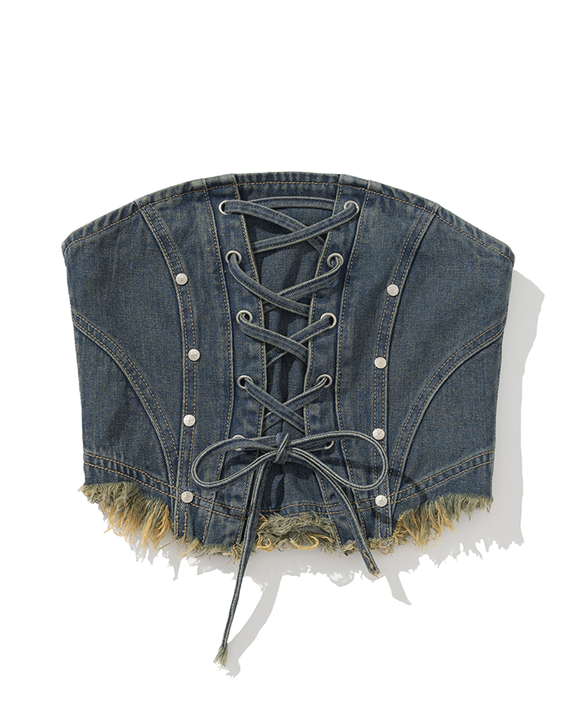 W Eyelet Vintage Denim Corset - Deep Blue