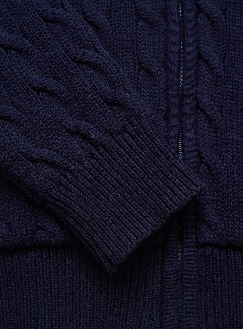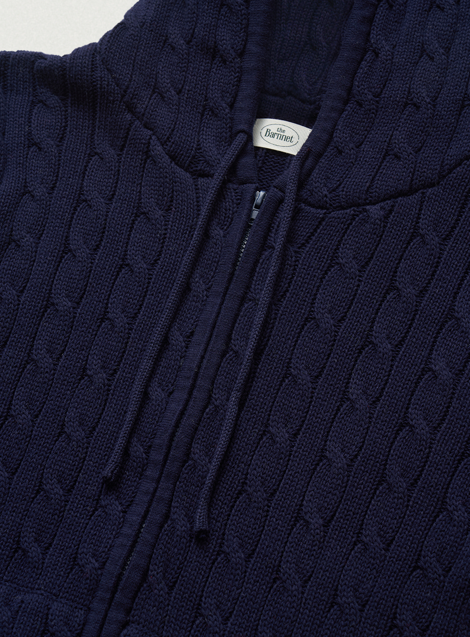 Pobby Cable Knit Zip-Up Hoodie_Navy
