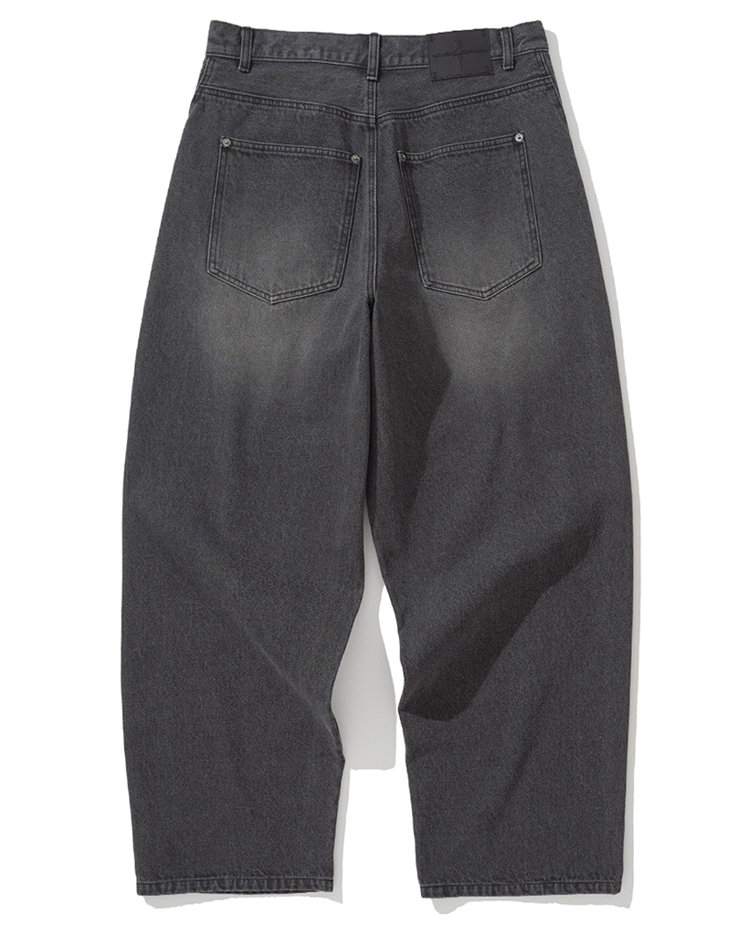 Curved Semi Wide Denim Pants - Black