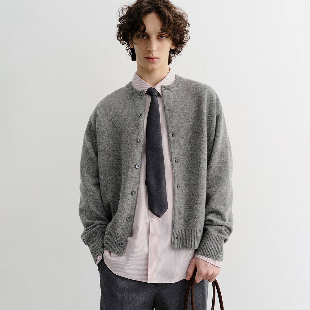 UNISEX CREWNECK KNIT CARDIGAN MELANGE GREY_M_UDSW5C101G2
