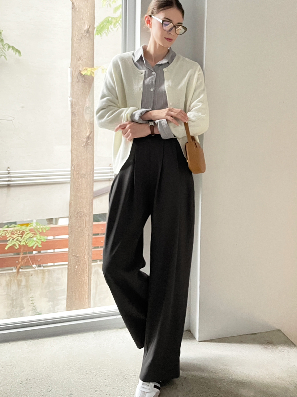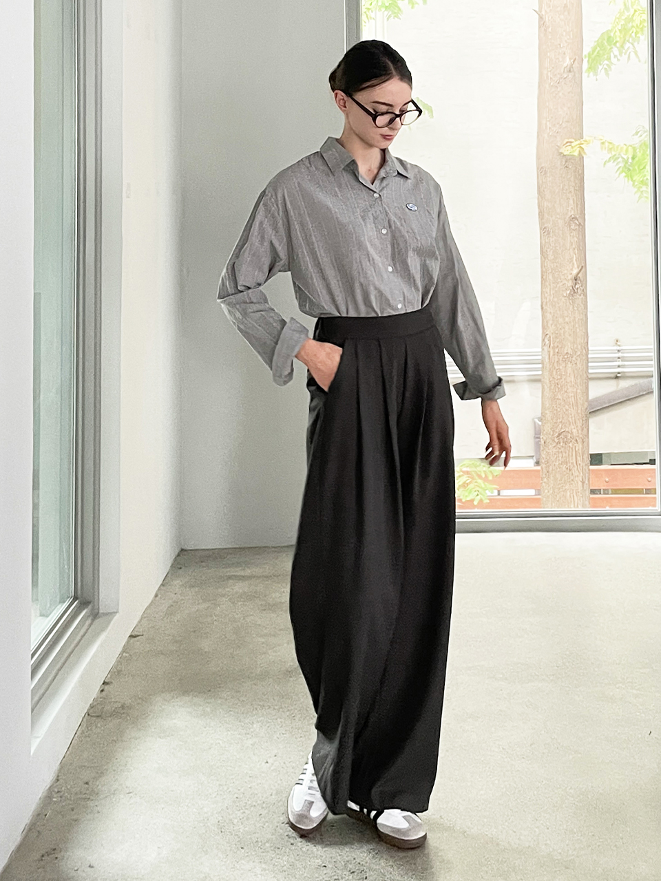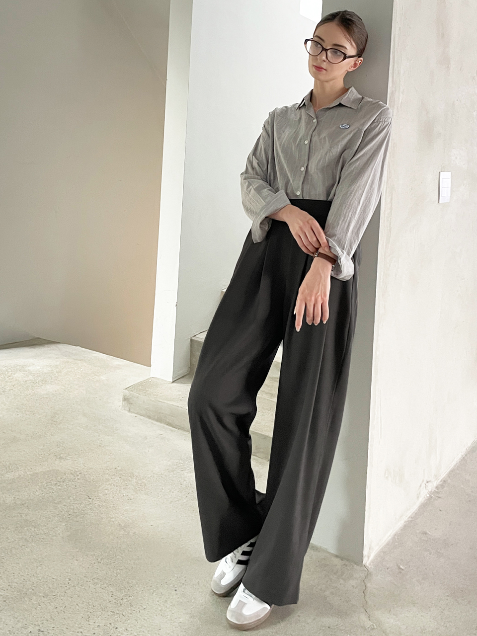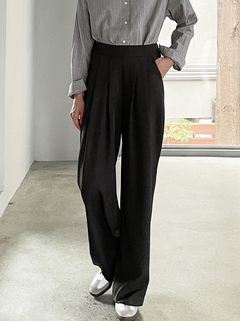 Relax fit pleat banding pants