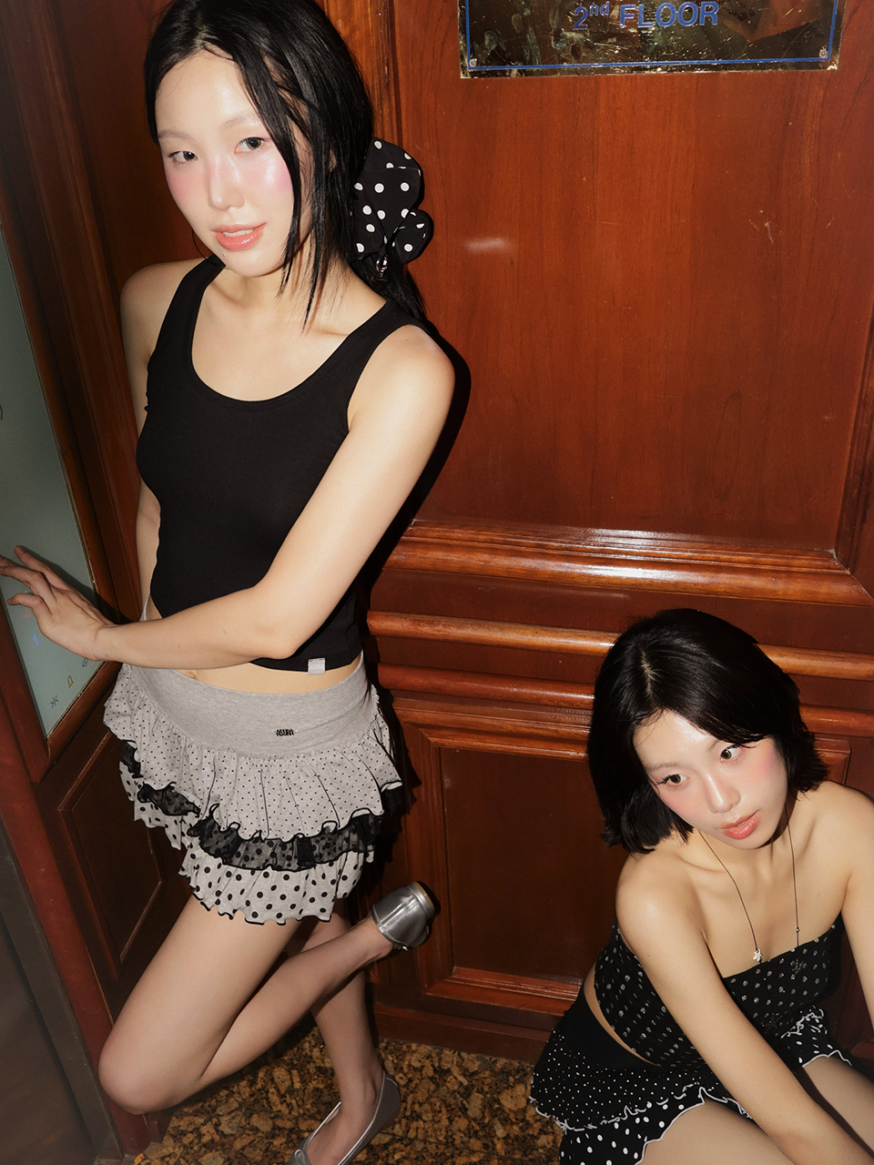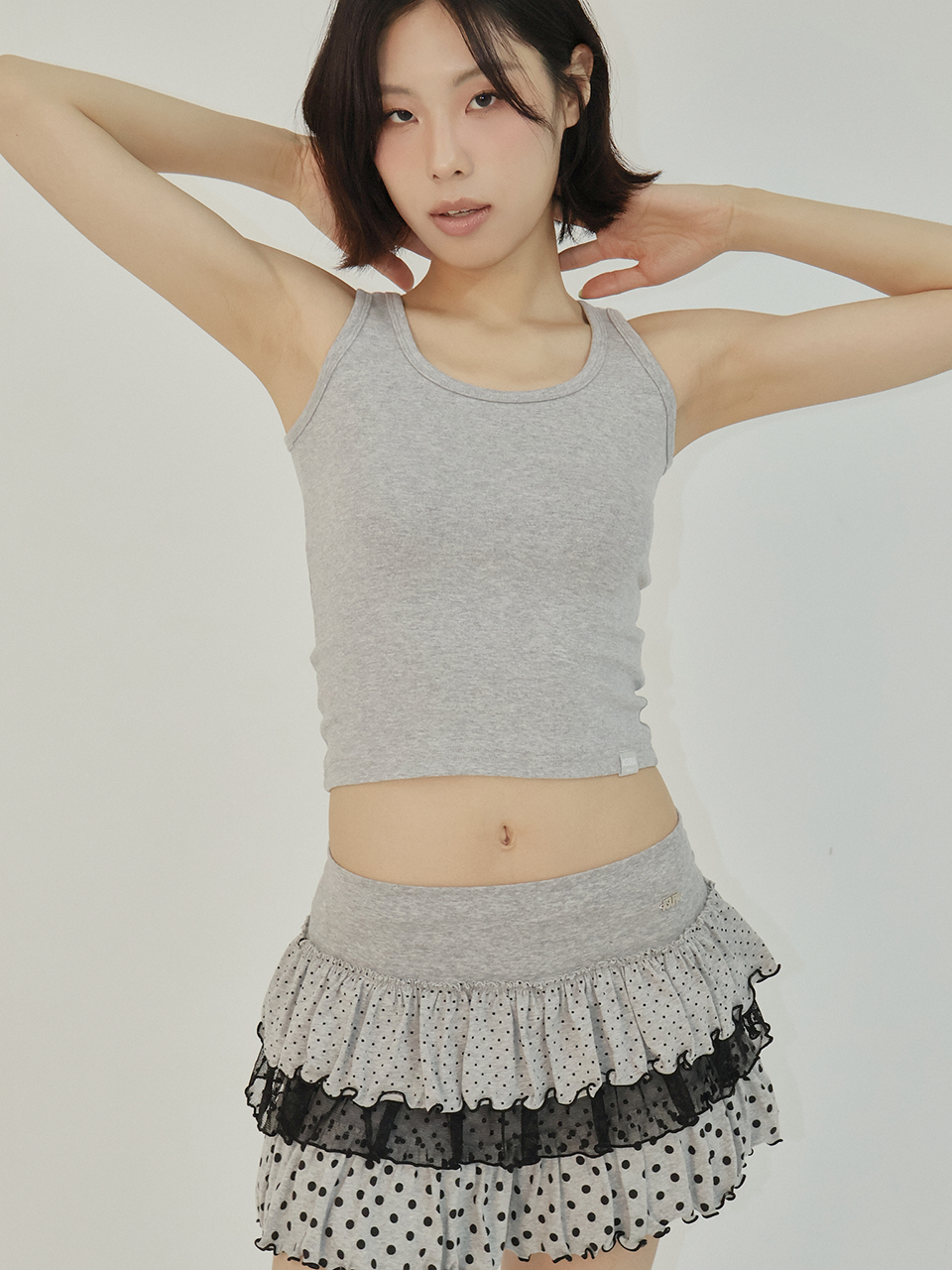 [K-POPアイドル着用] LACE DOT CANCAN SKIRT (MELANGE GREY)