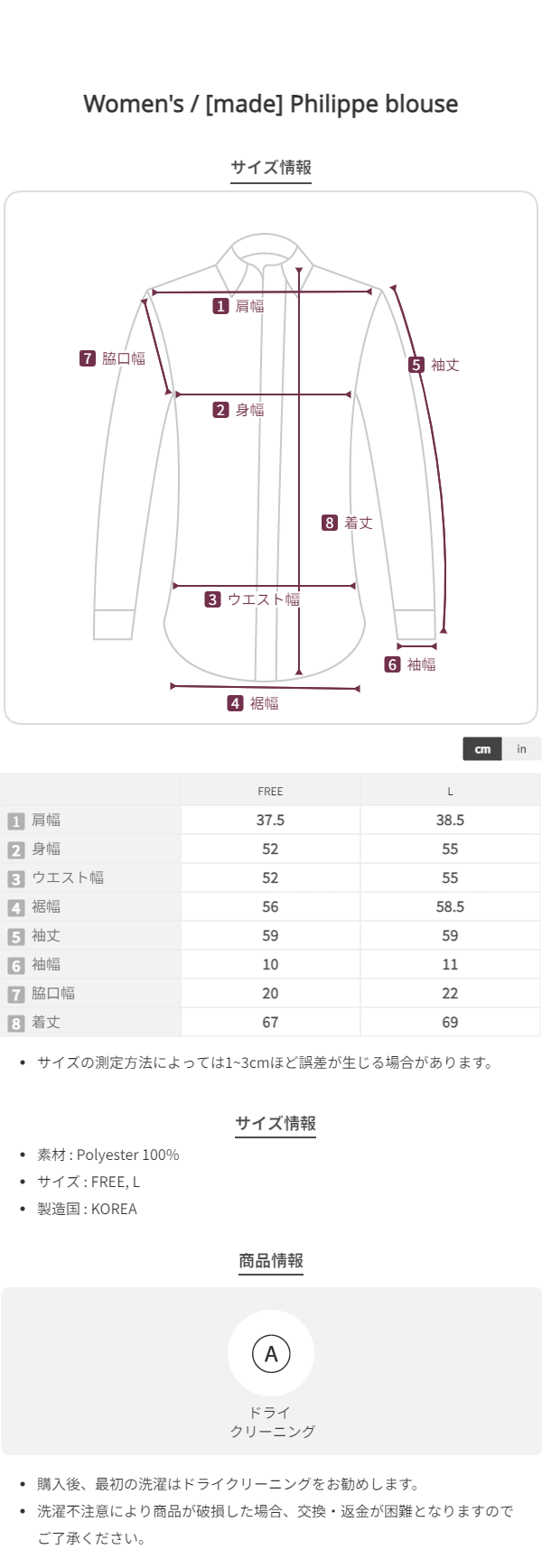*ブラウスやジャケットなど、ボタン付きの商品は工程上チョーク跡が残っている場合がございます。