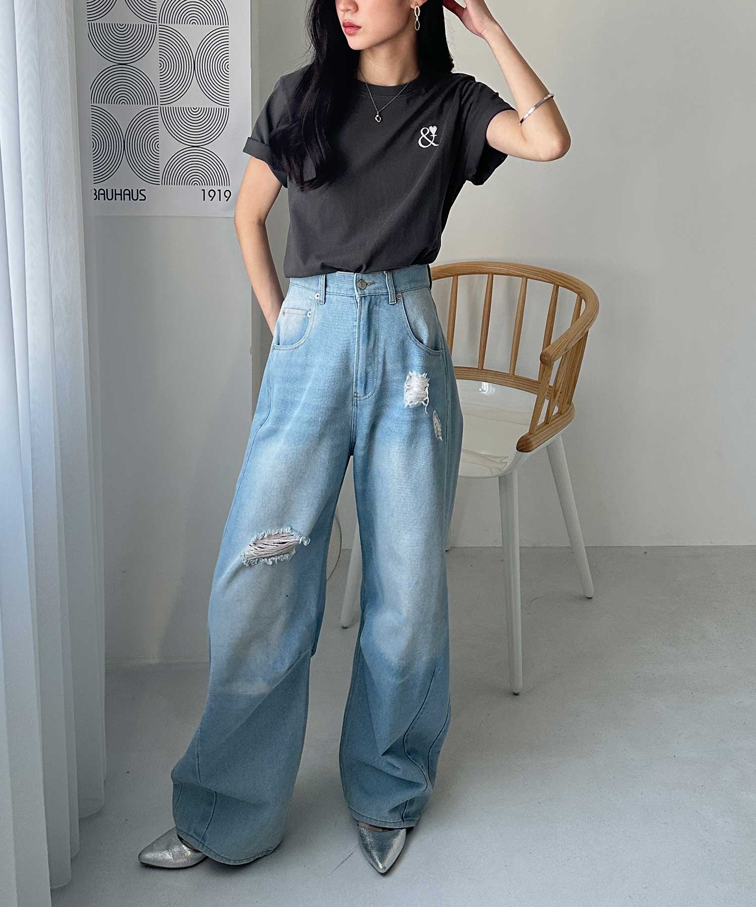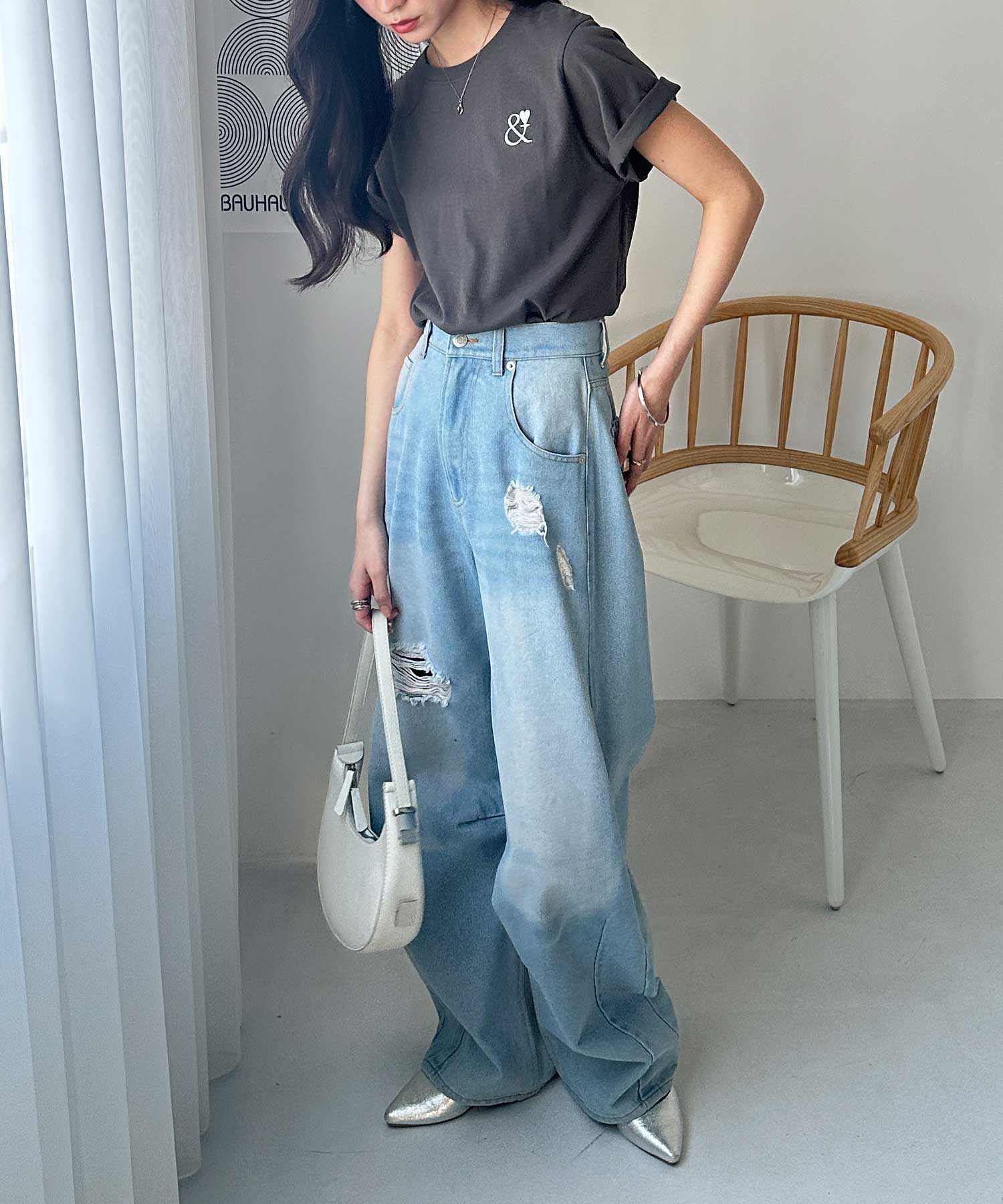「&」と「」を組み合わせた胸元の刺繍が大人可愛いTシャツが登場!