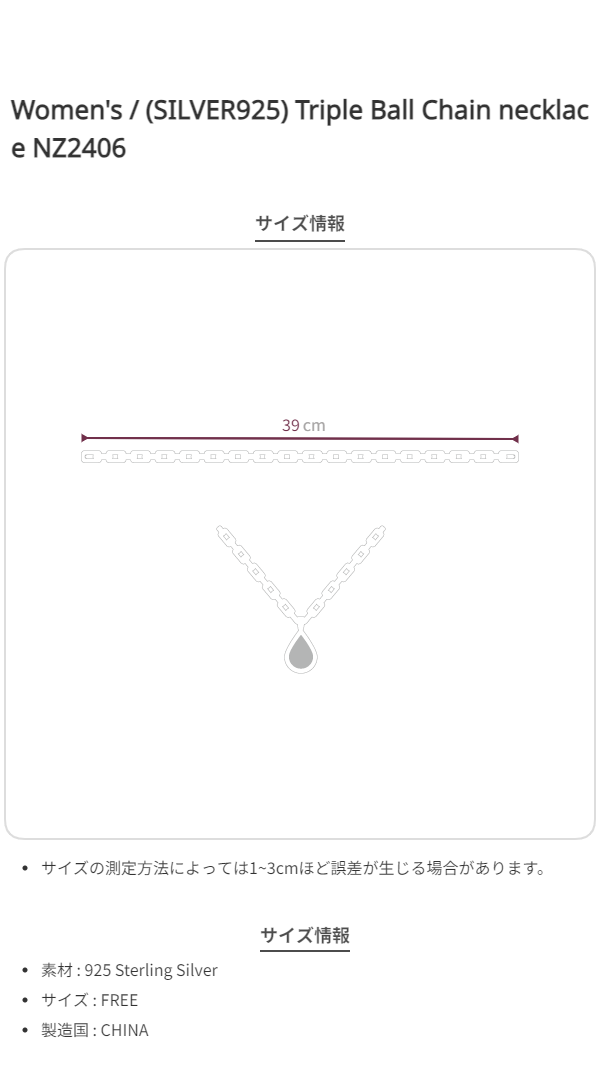 (シルバー925) トリプルボールチェーン ネックレス NZ2406