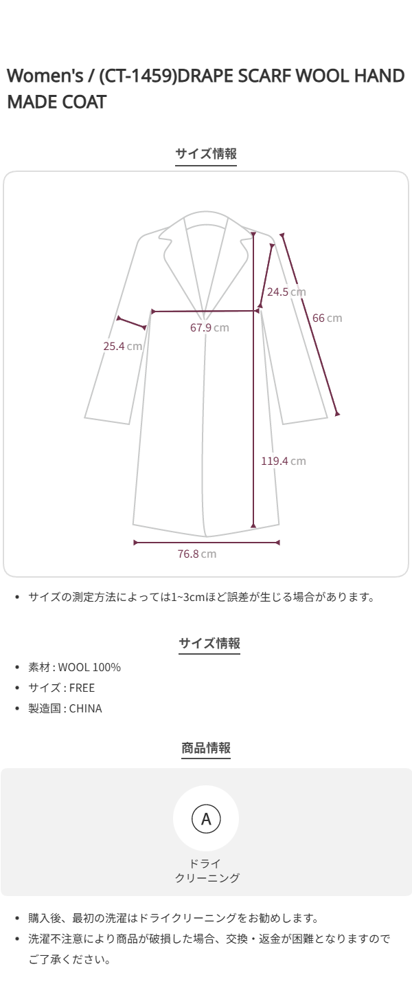 (CT-1459)DRAPE SCARF WOOL HANDMADE COAT