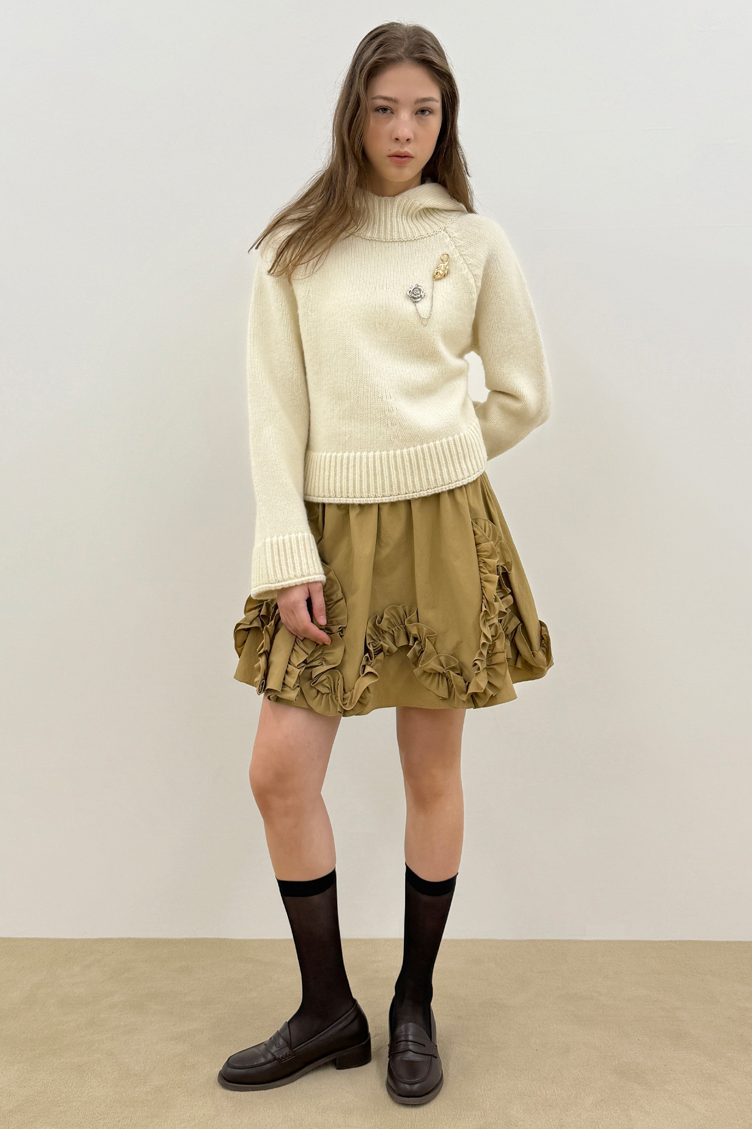 Sinoon Shirred Ruffle Skirt (Beige)