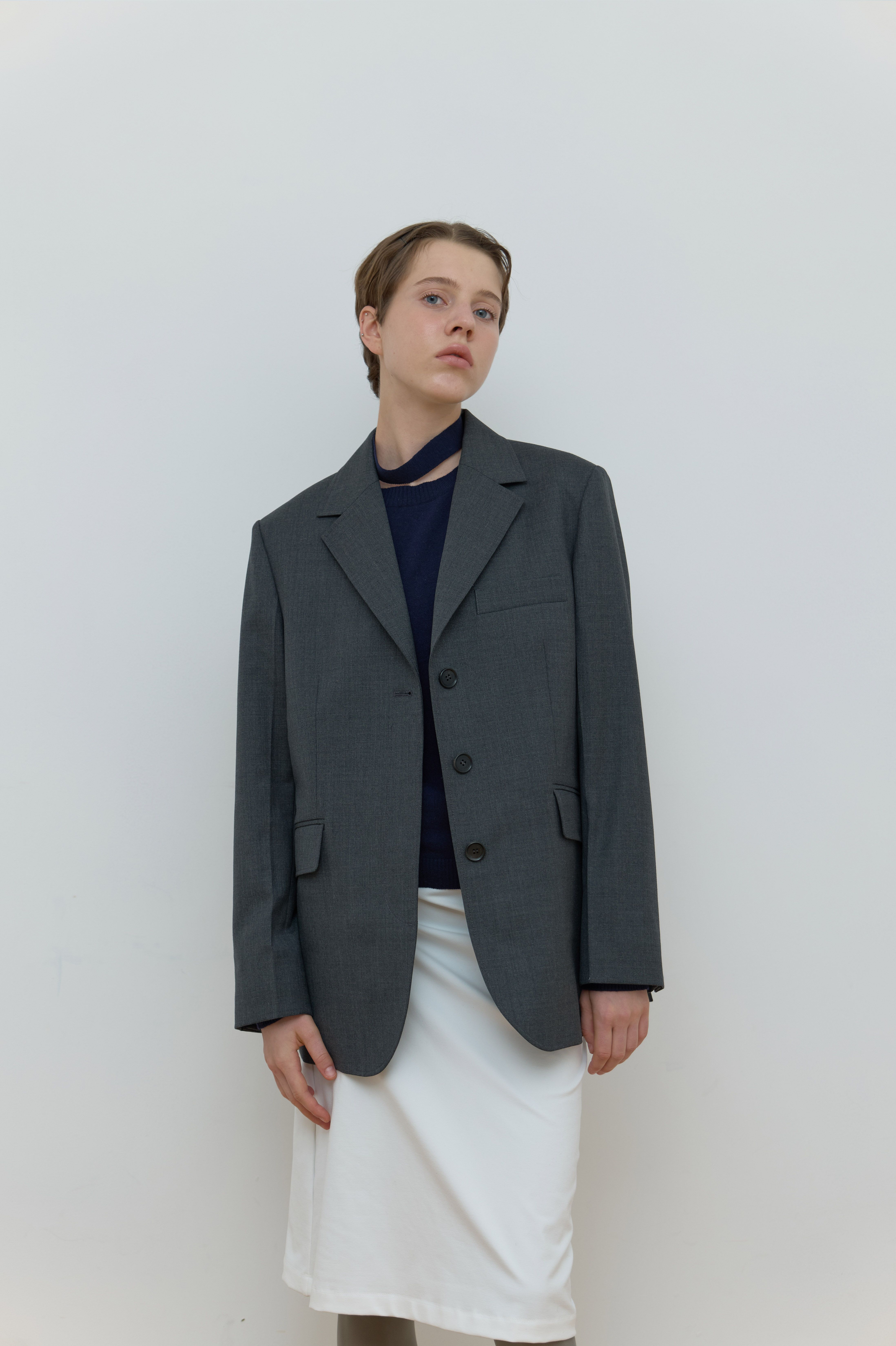 SINGLE HIDDEN JACKET_MELANGE GREY