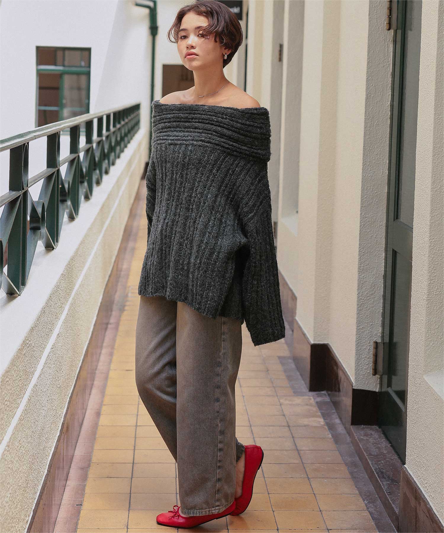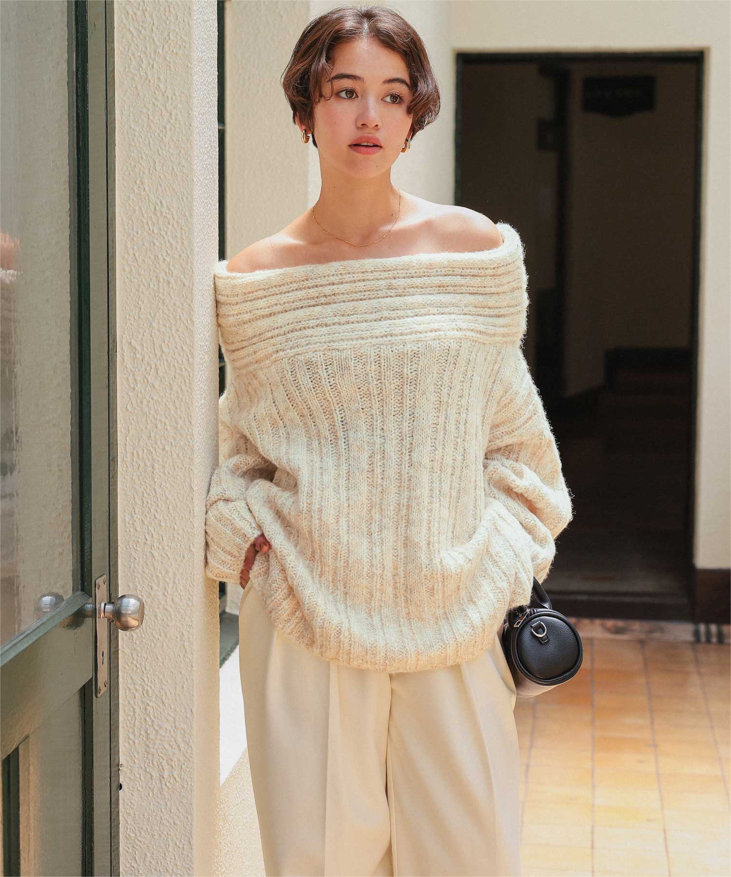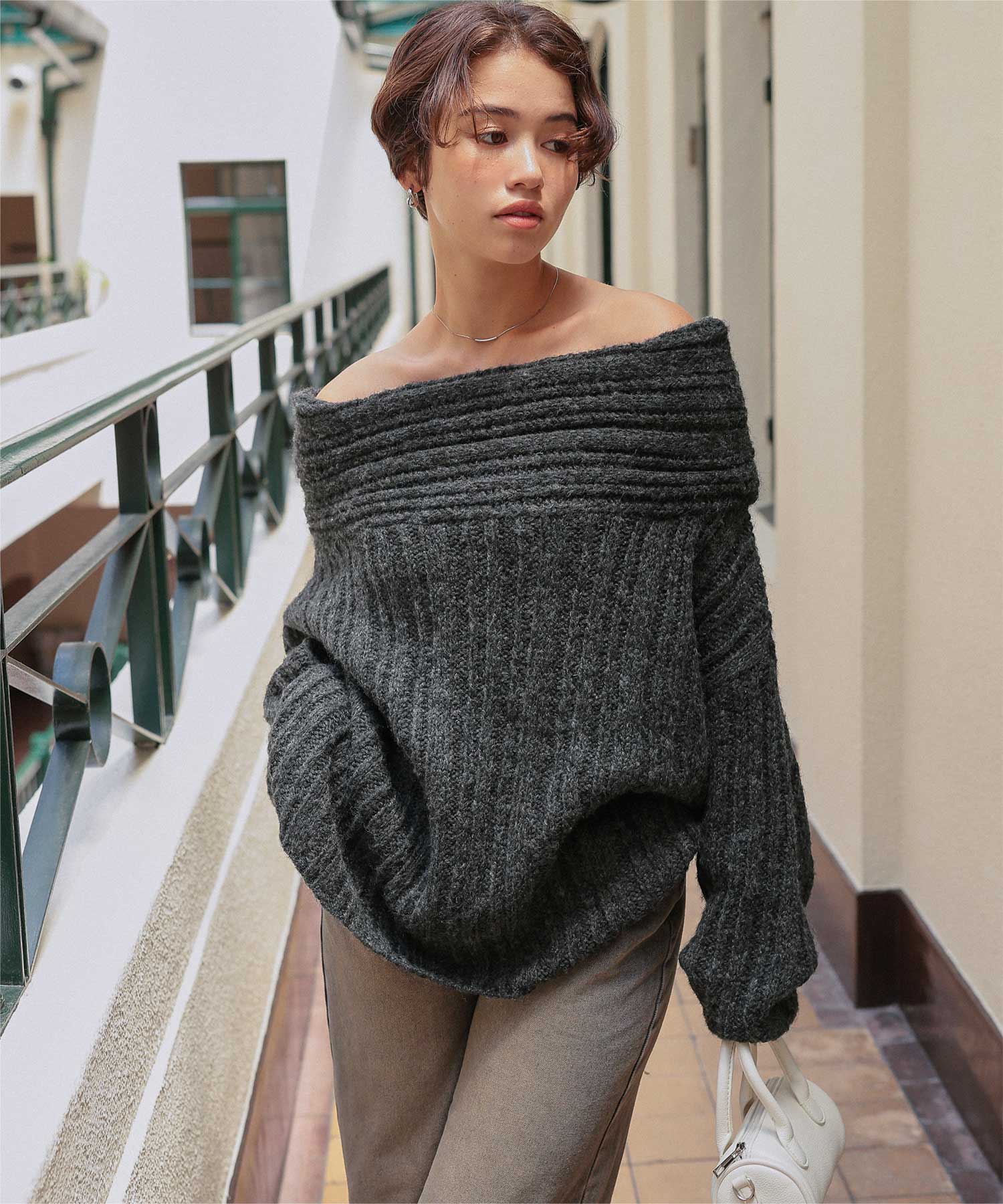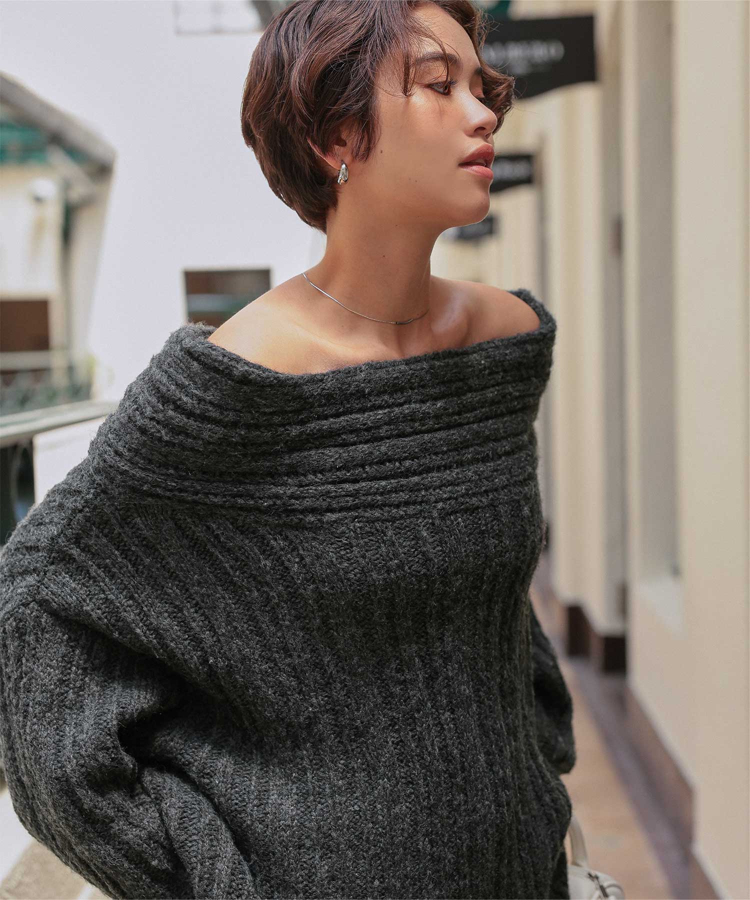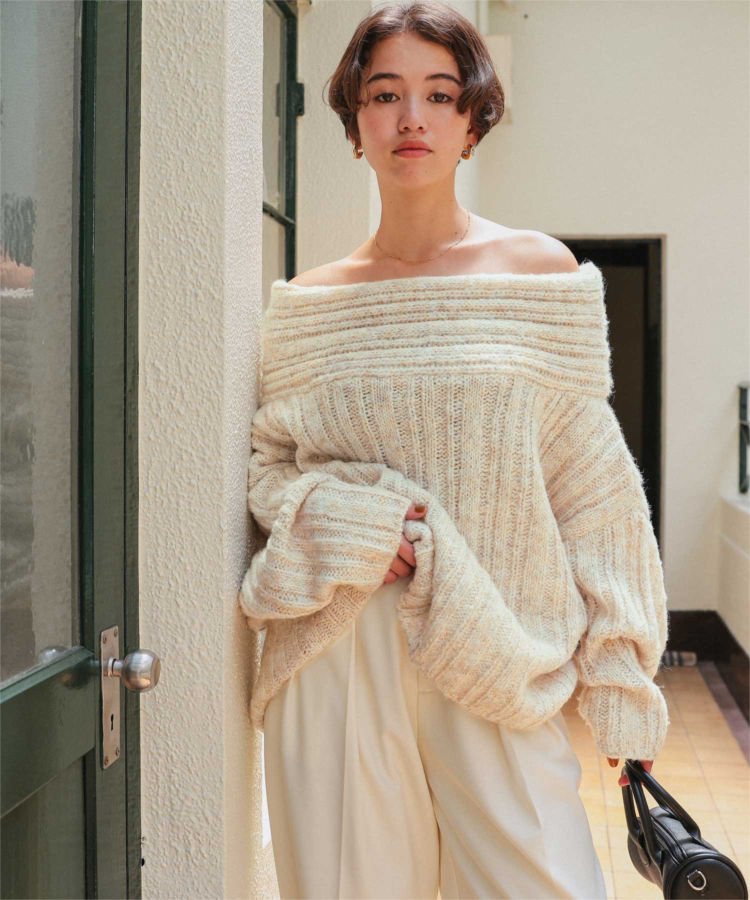 ・ゆるっとしたシルエットと抜け感が魅力のオフショルダーニット