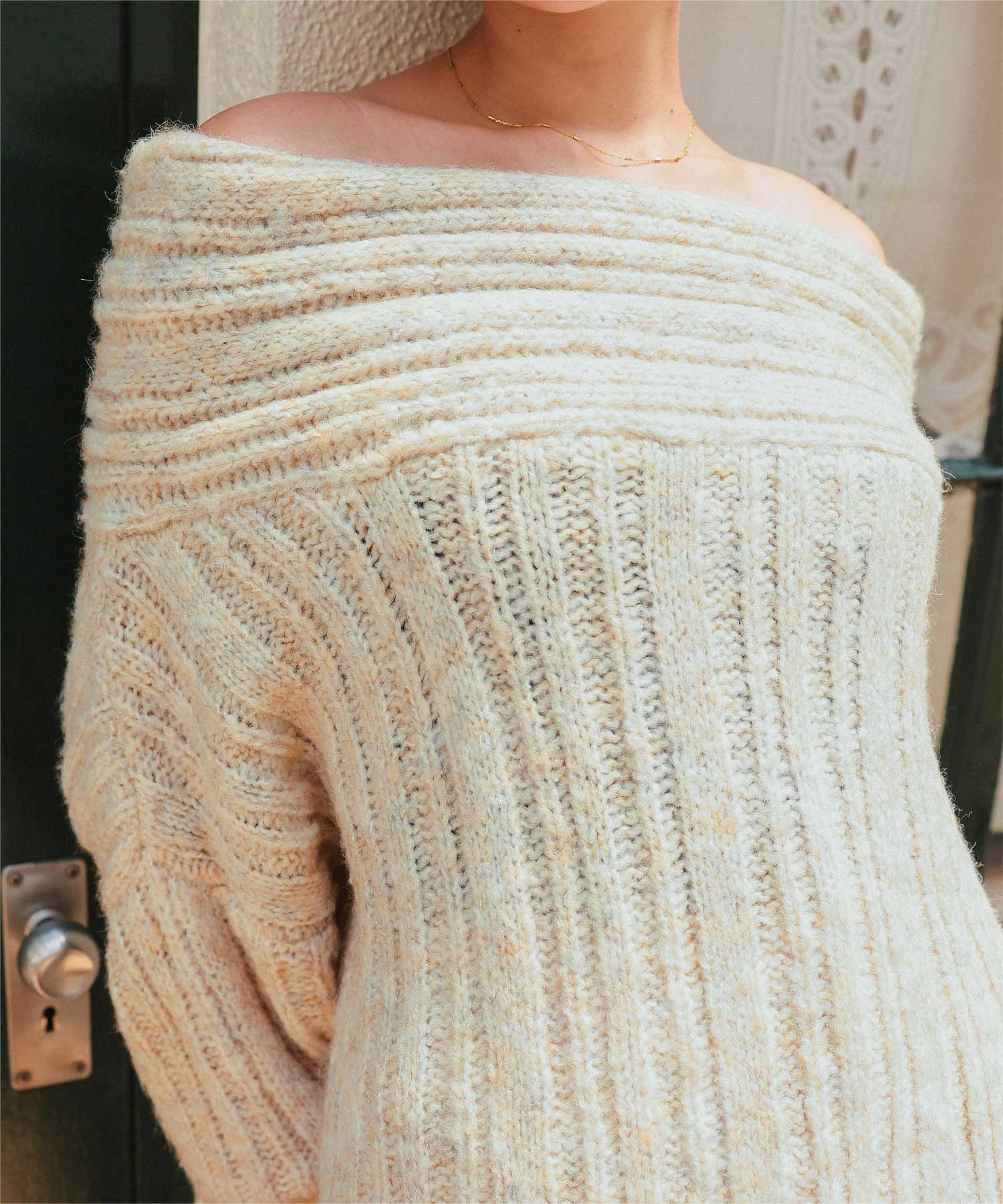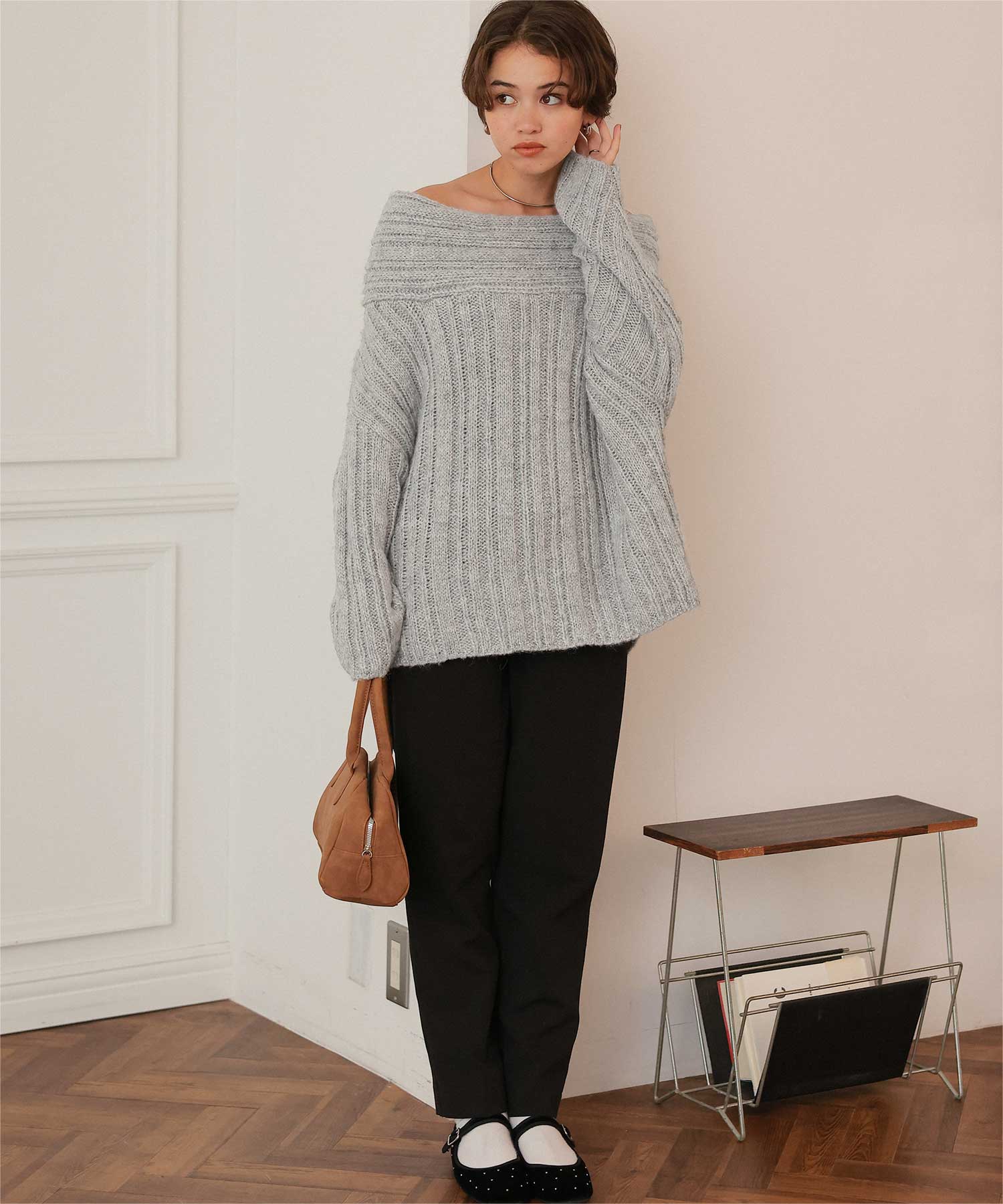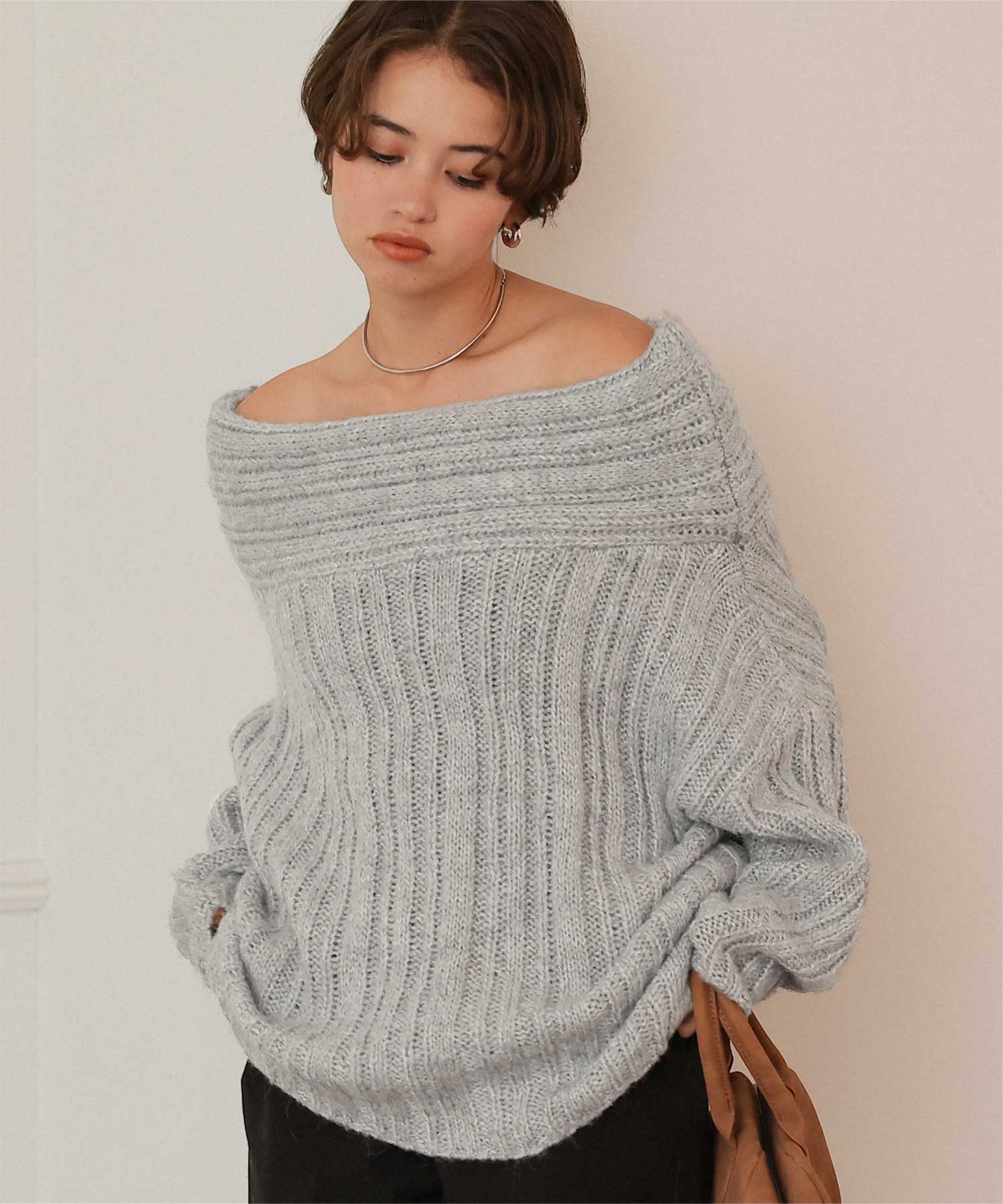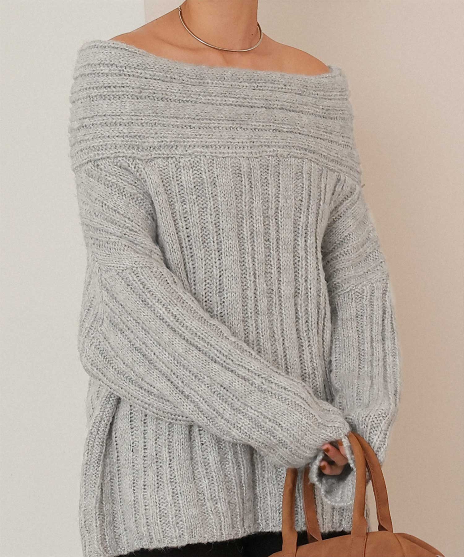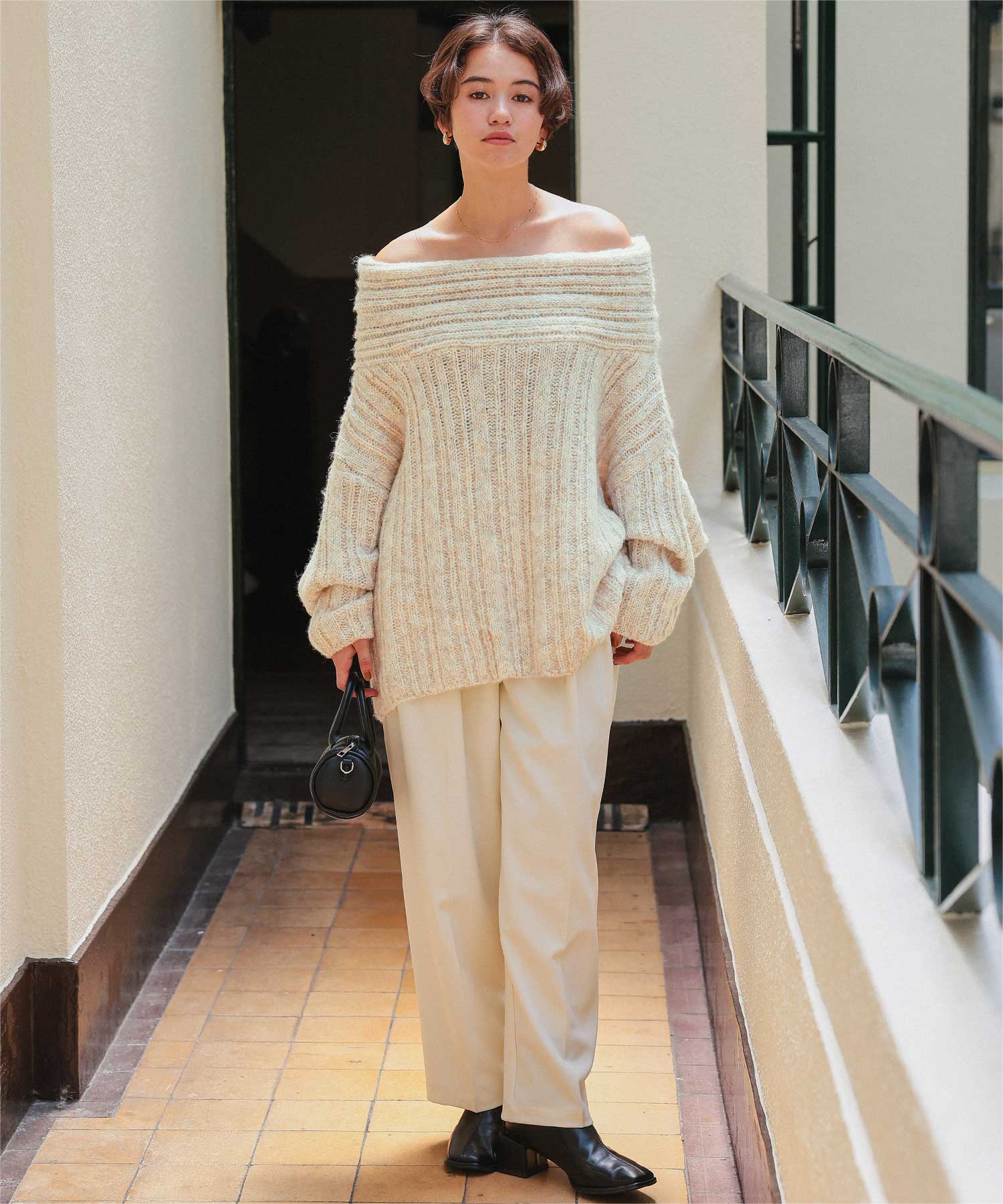 ・ゆるっとしたシルエットと抜け感が魅力のオフショルダーニット