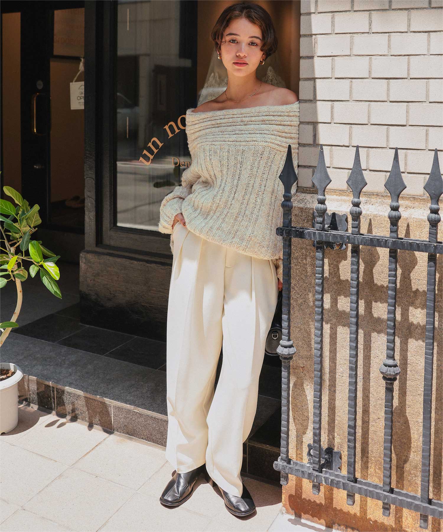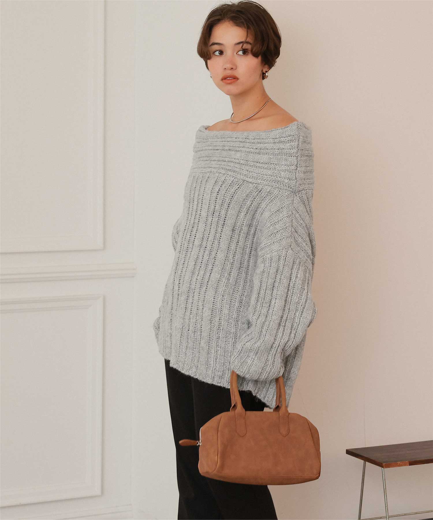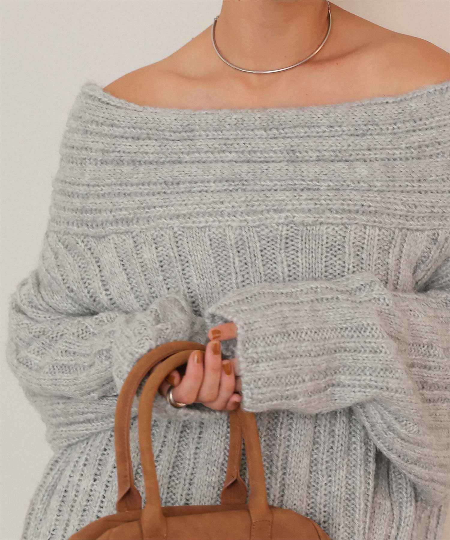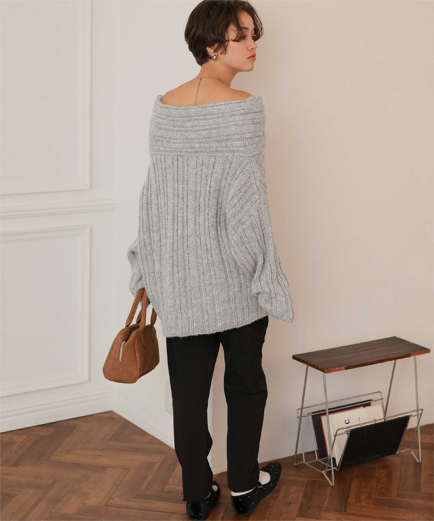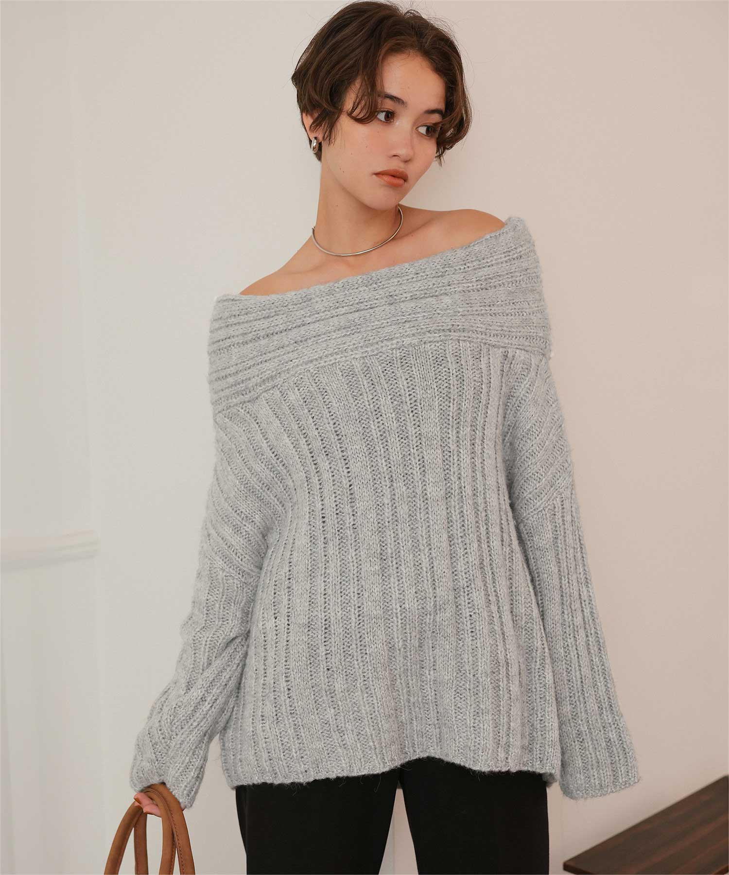 ・ゆるっとしたシルエットと抜け感が魅力のオフショルダーニット