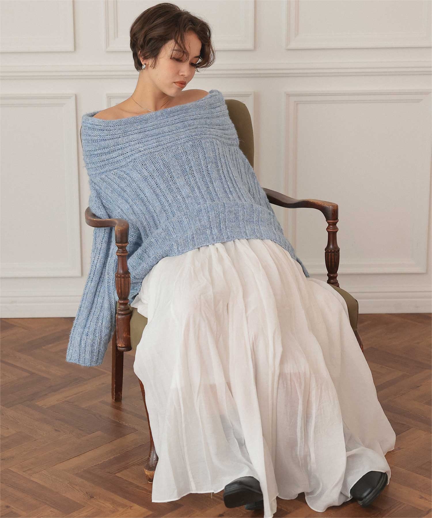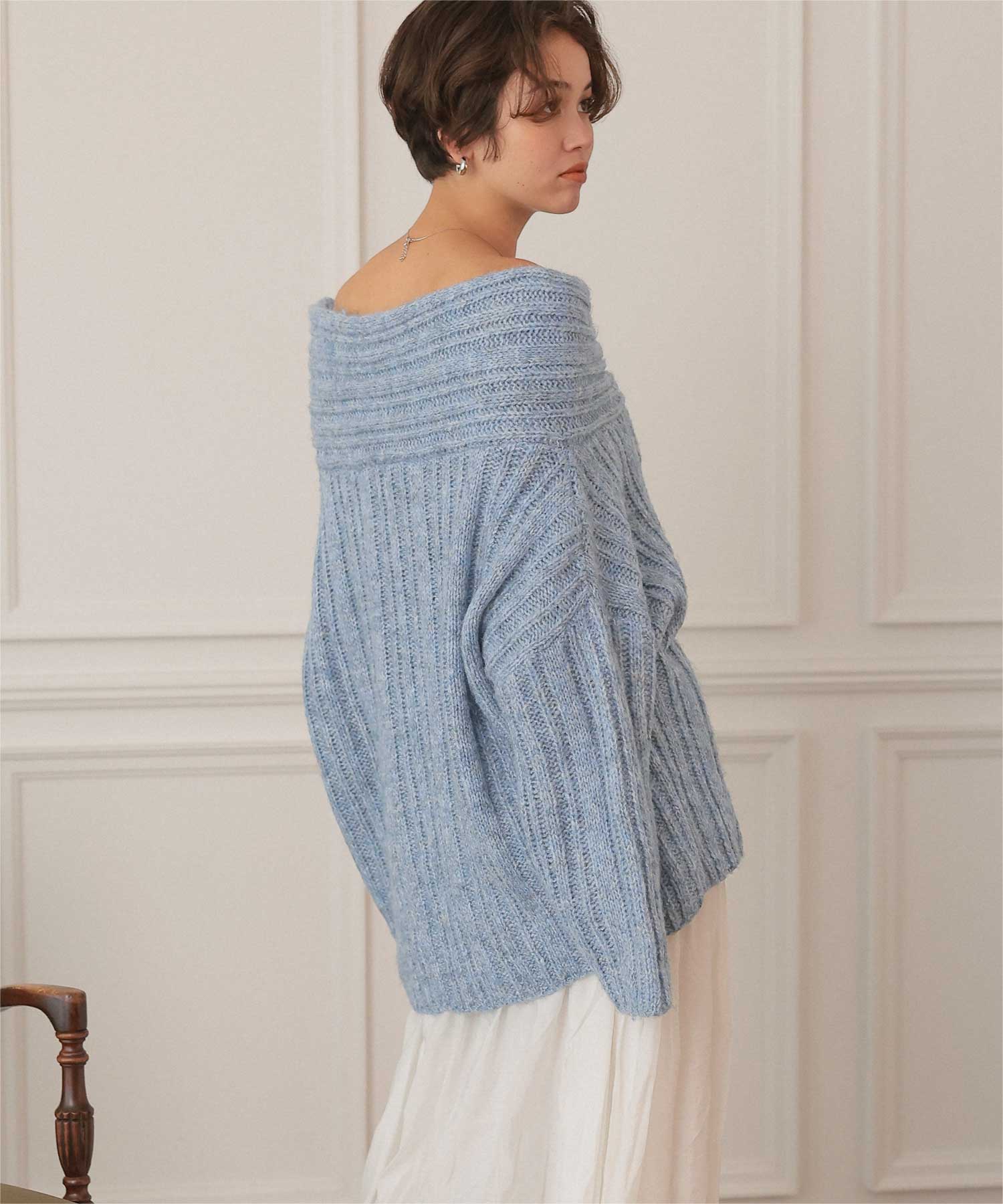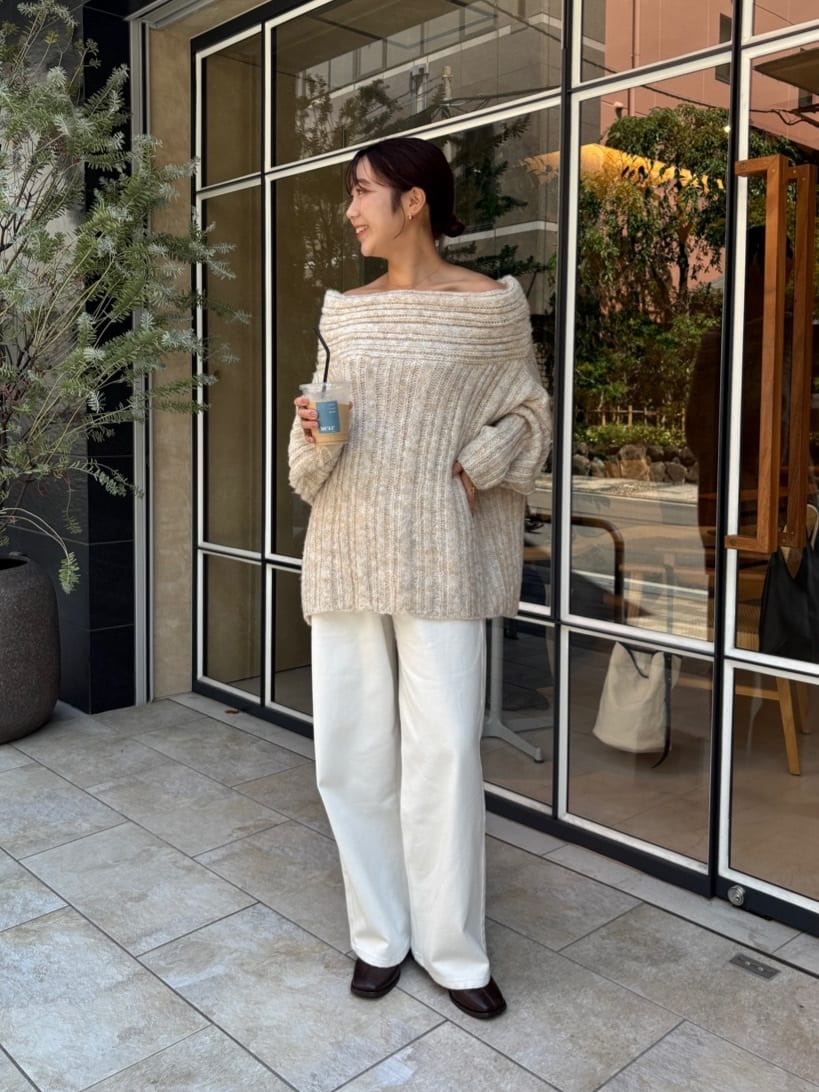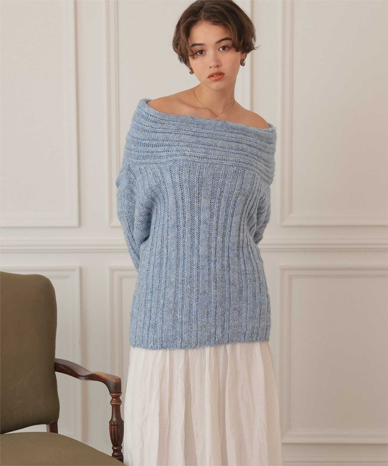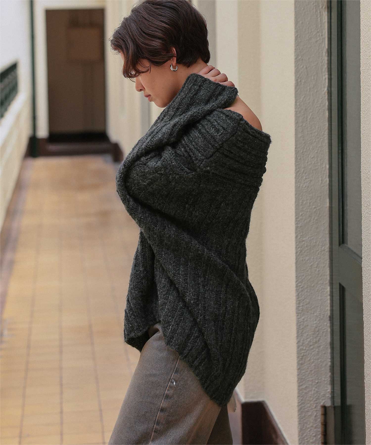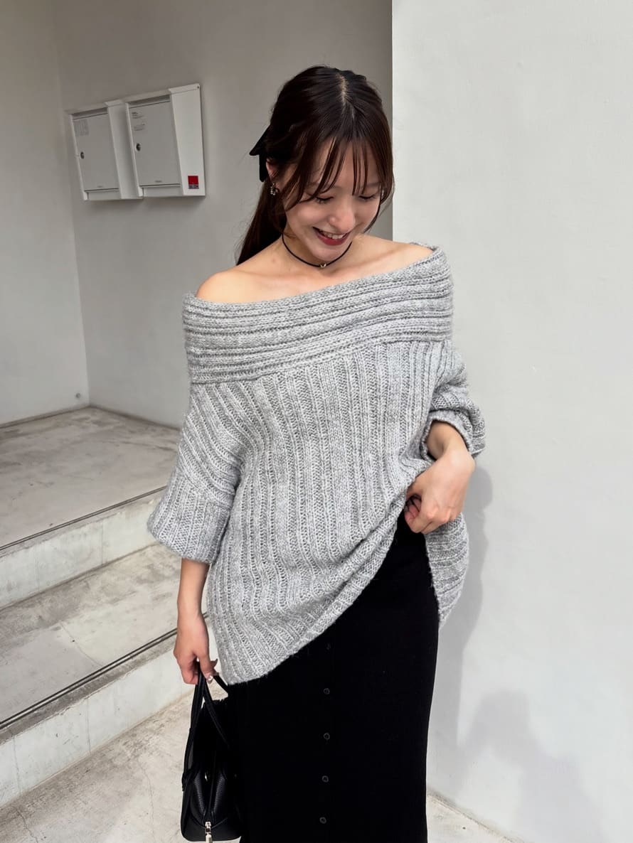 ・ゆるっとしたシルエットと抜け感が魅力のオフショルダーニット