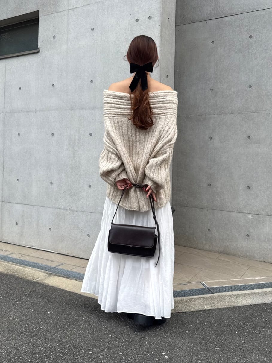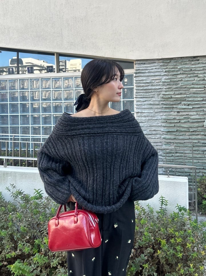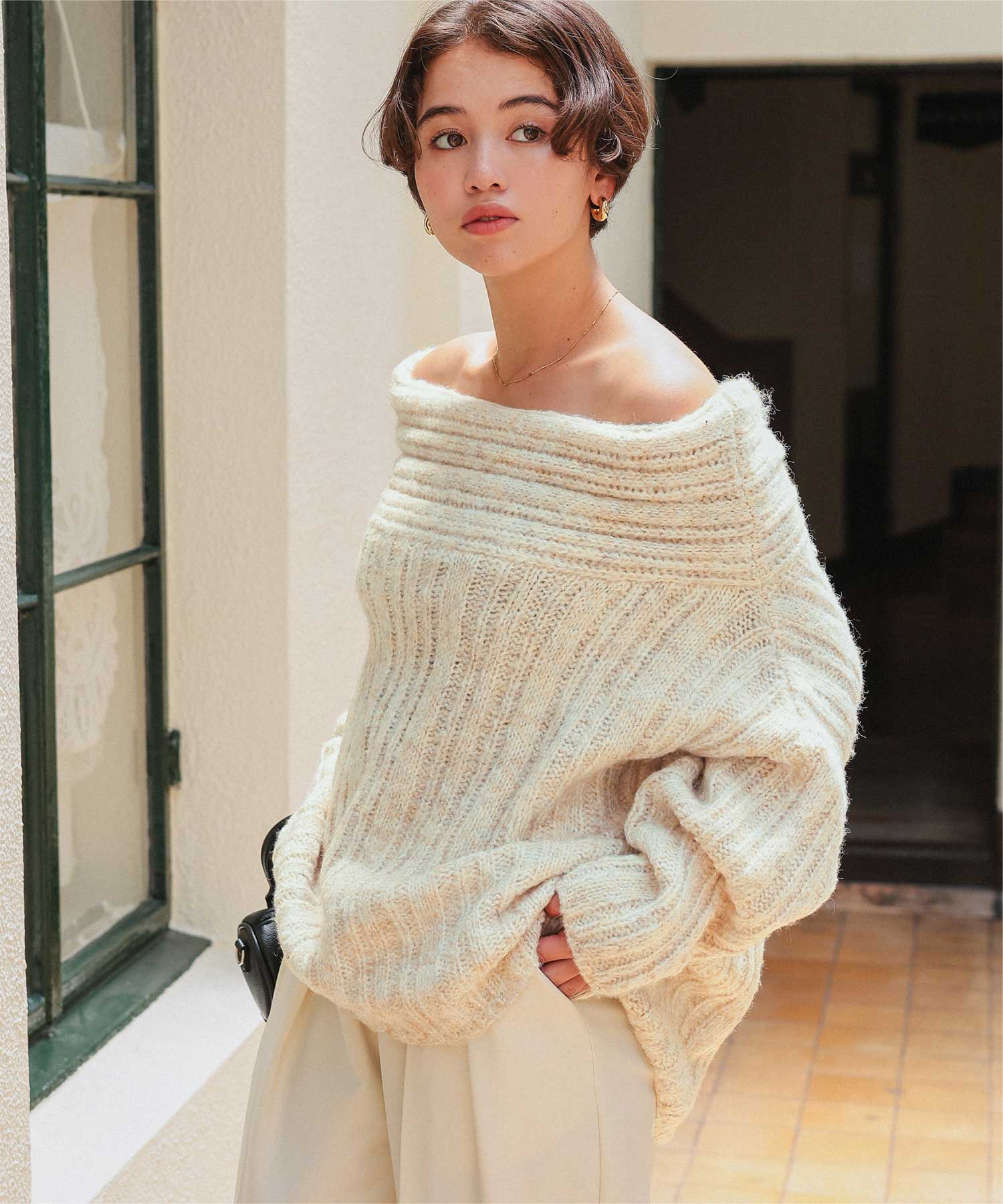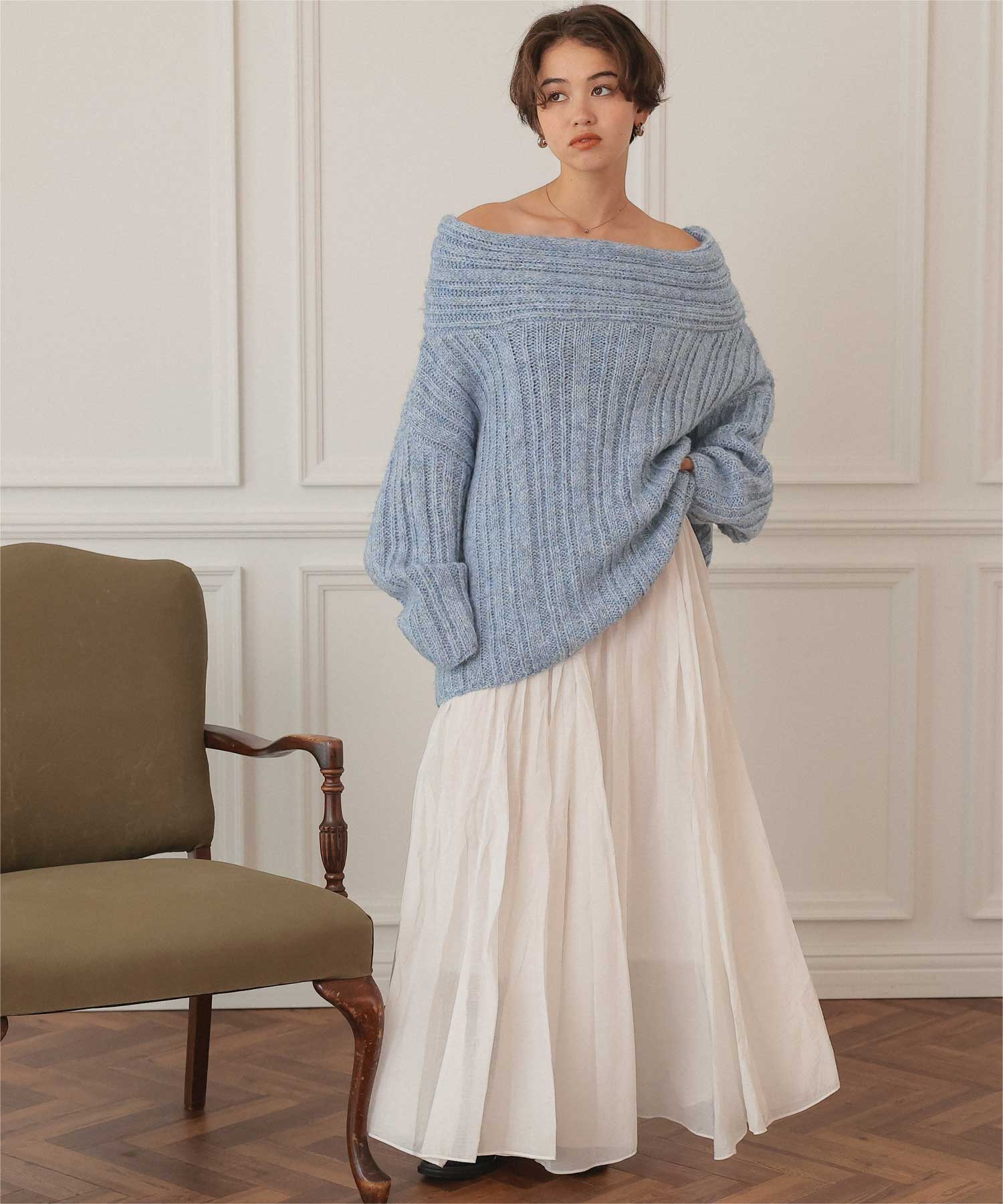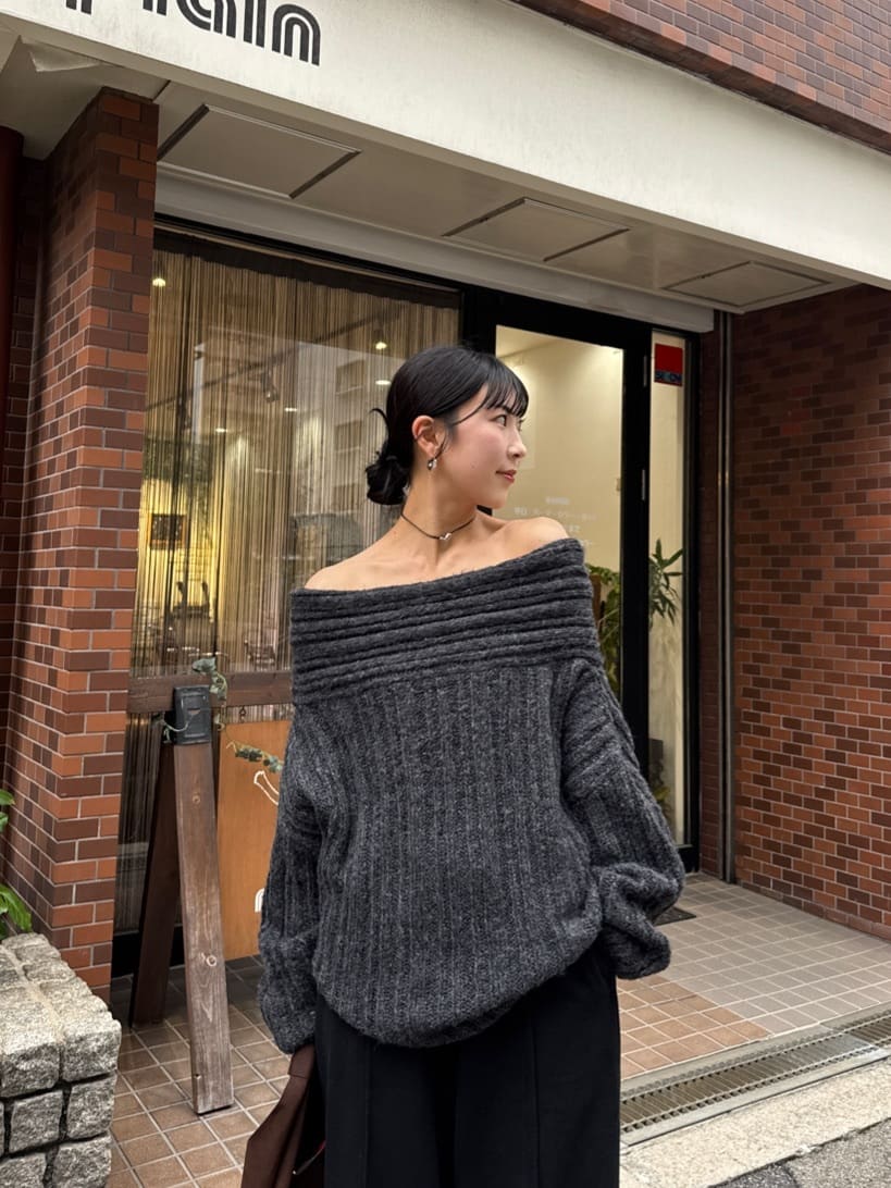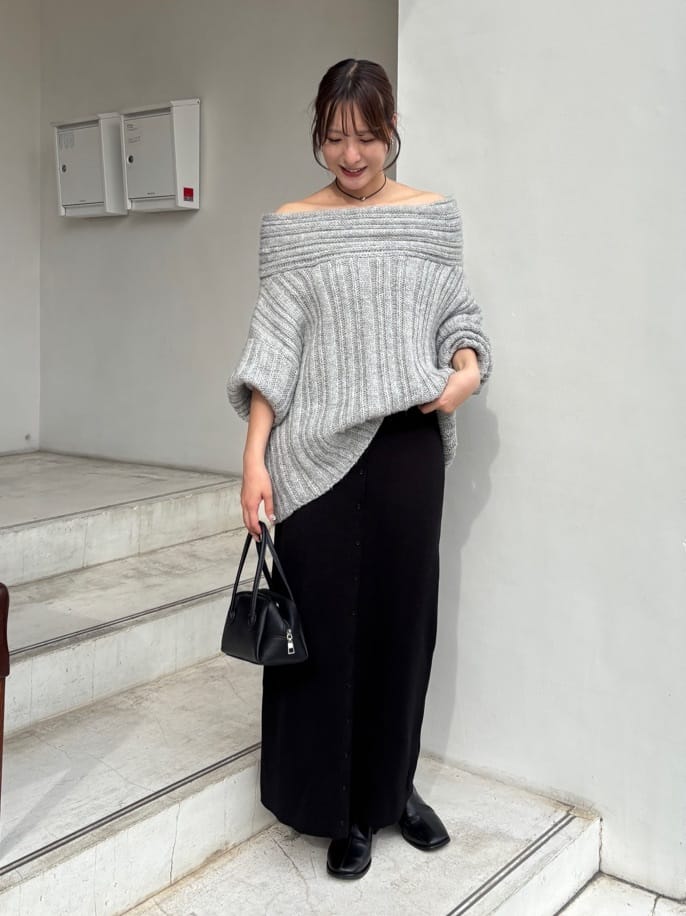 ・ゆるっとしたシルエットと抜け感が魅力のオフショルダーニット