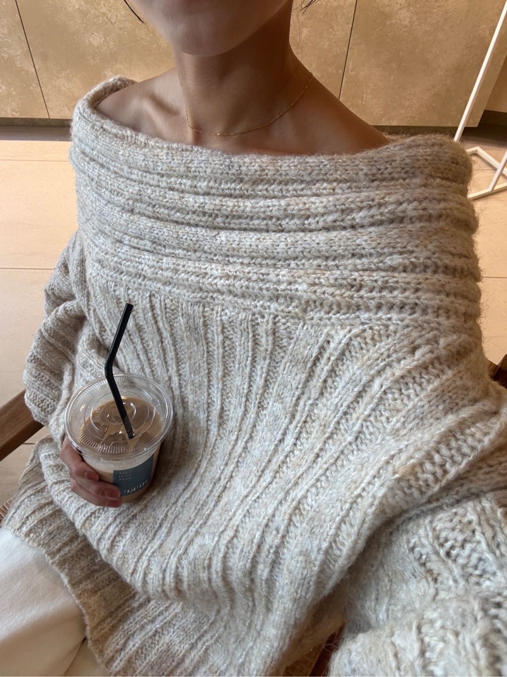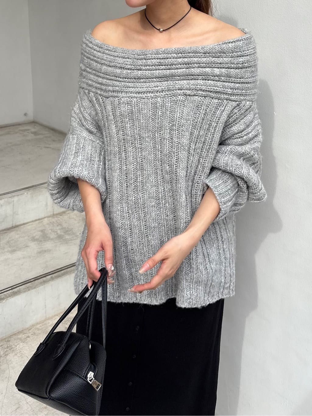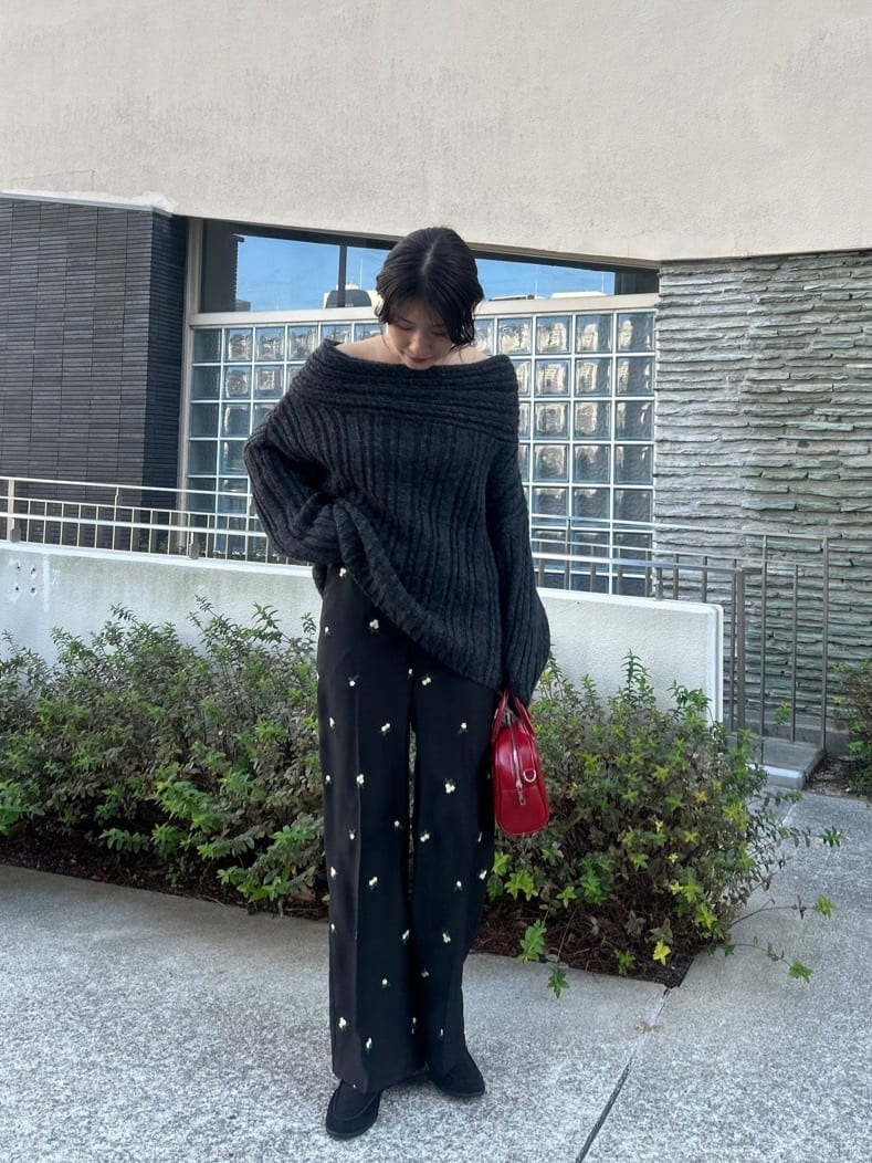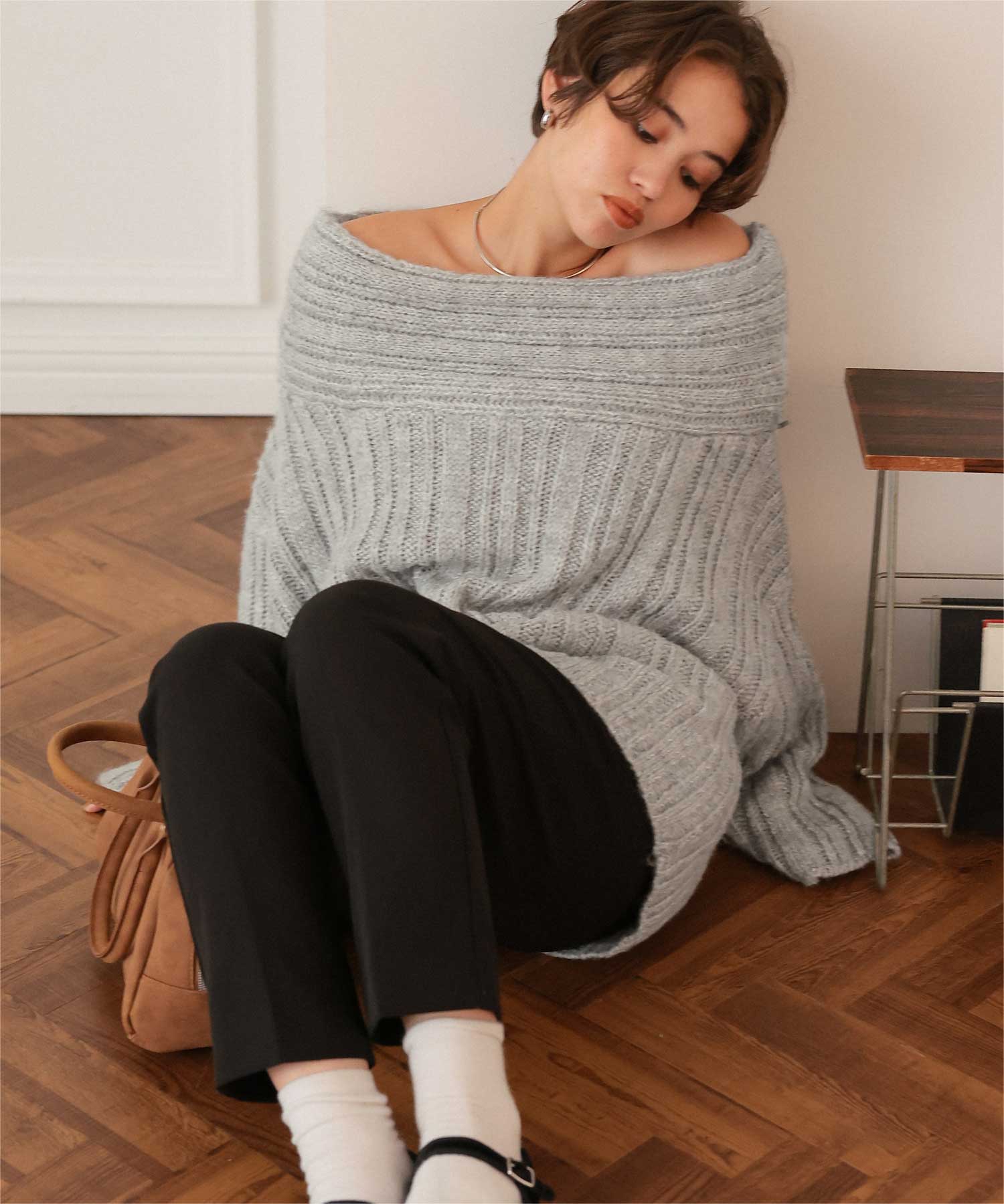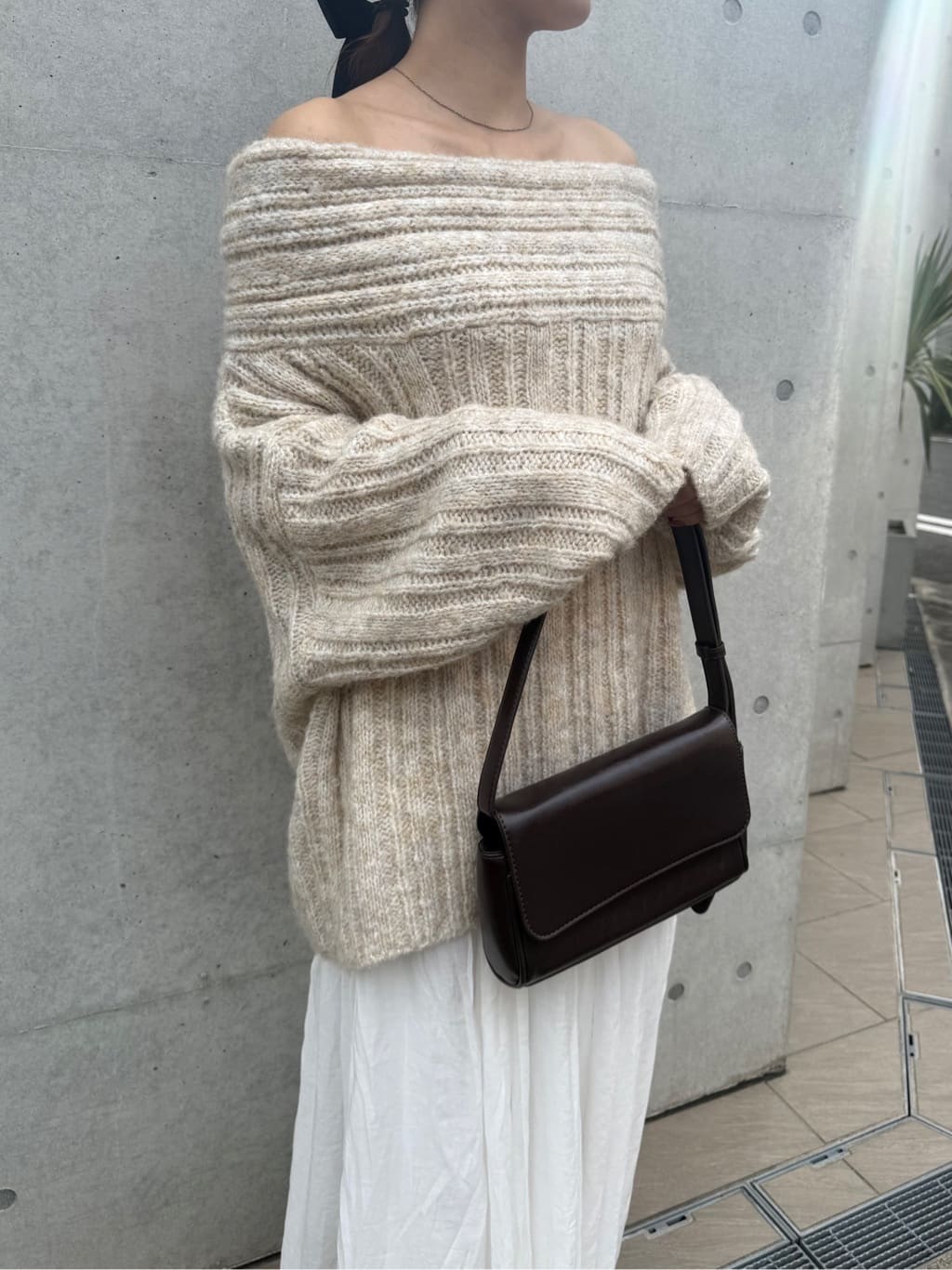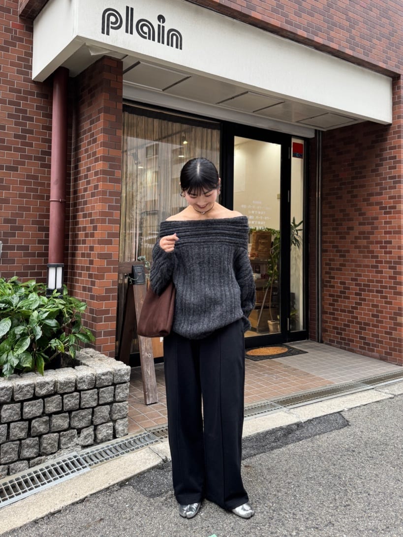 ・ゆるっとしたシルエットと抜け感が魅力のオフショルダーニット