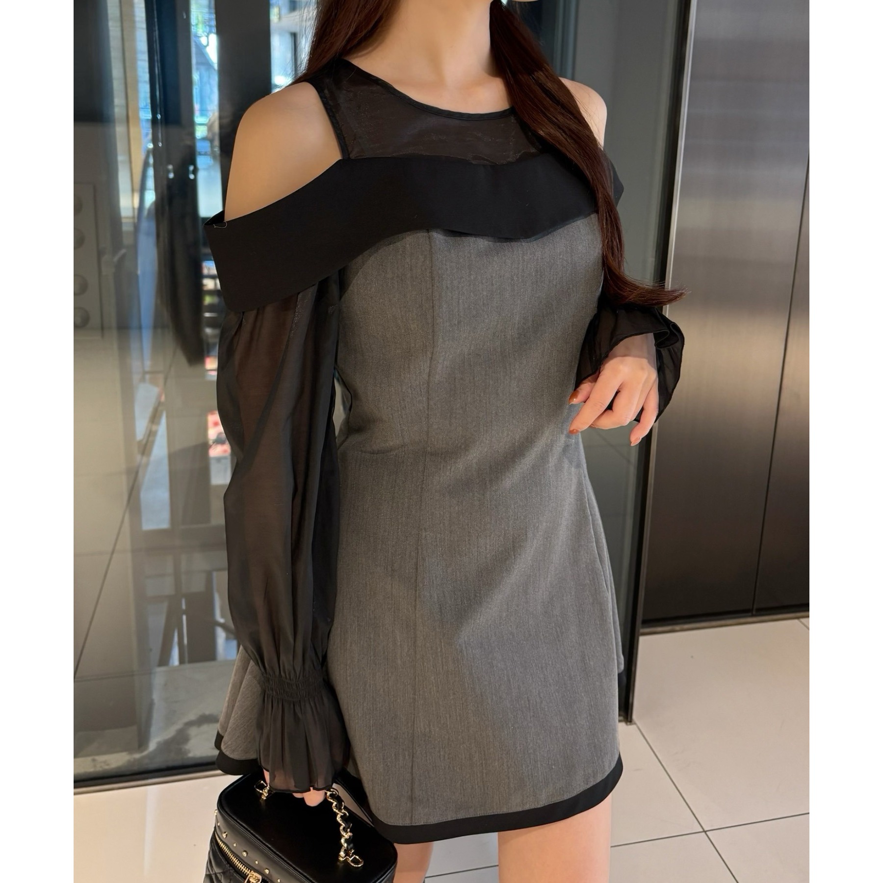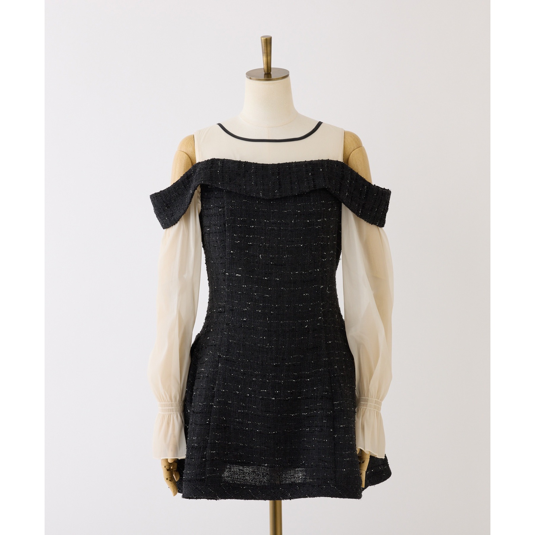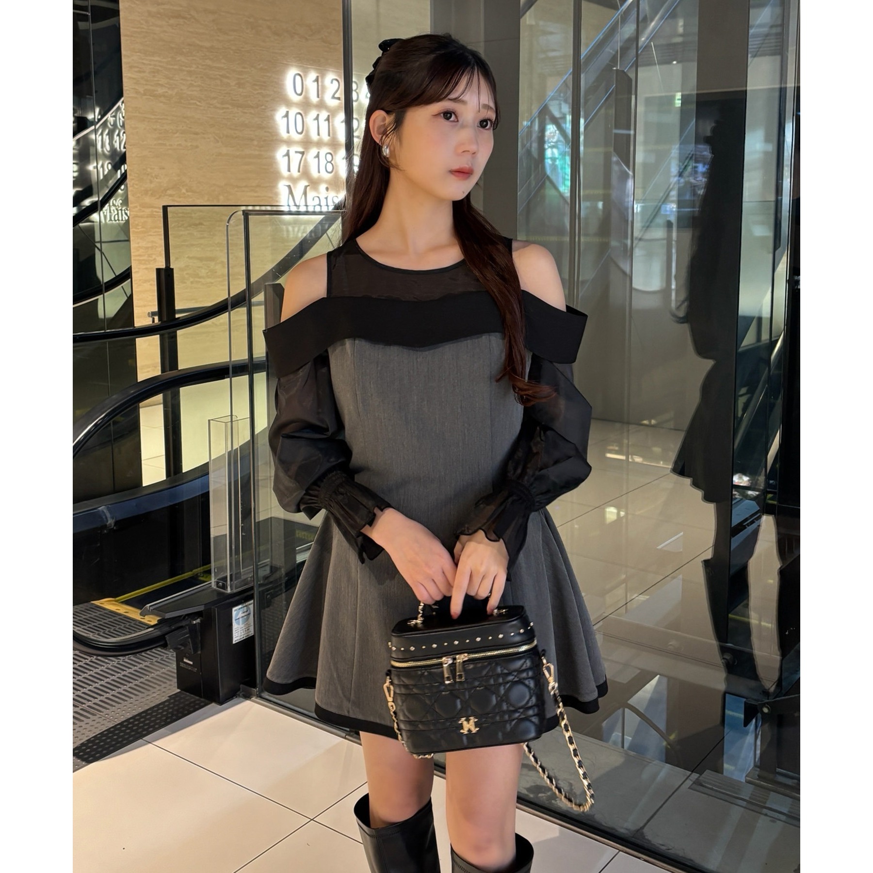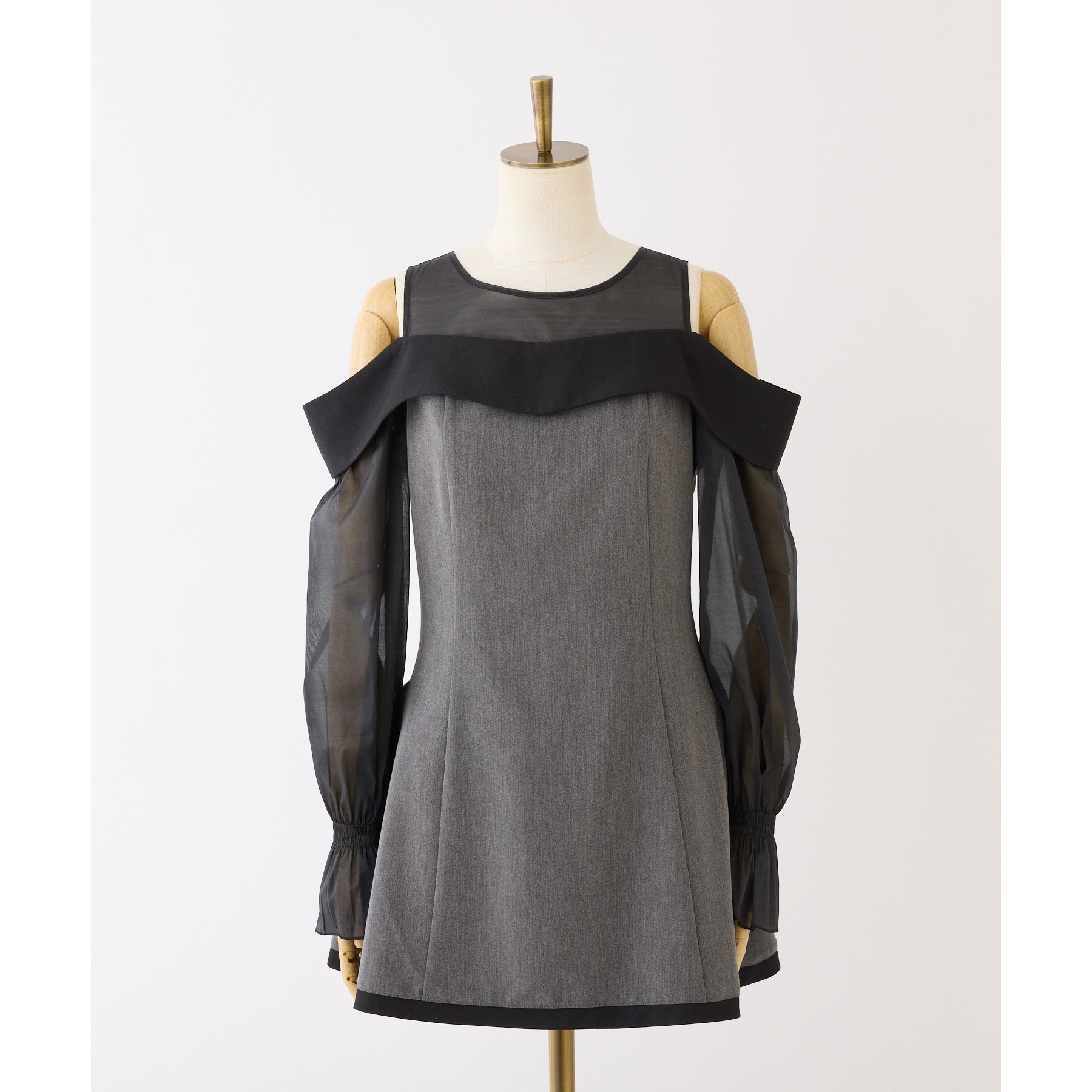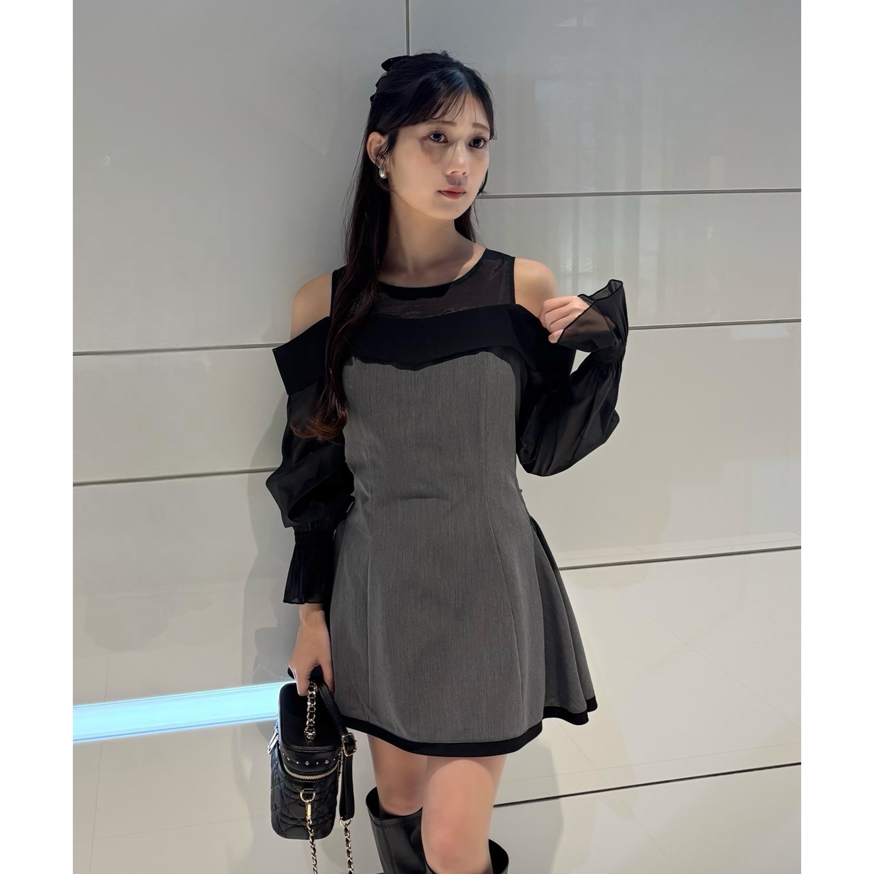 ほんのり肌見せが叶うシアー素材をデコルテと袖に使用したミニワンピース。