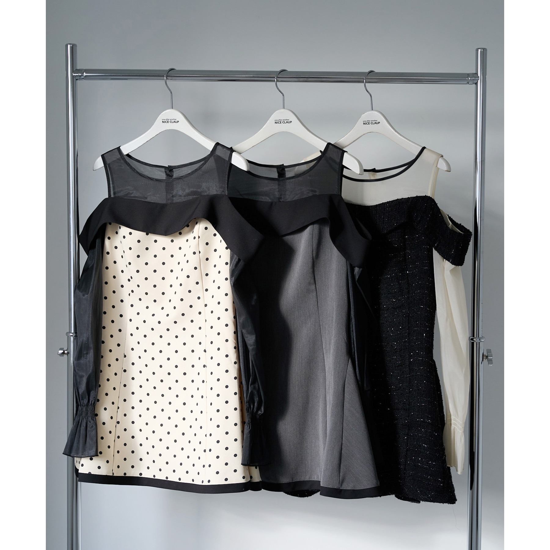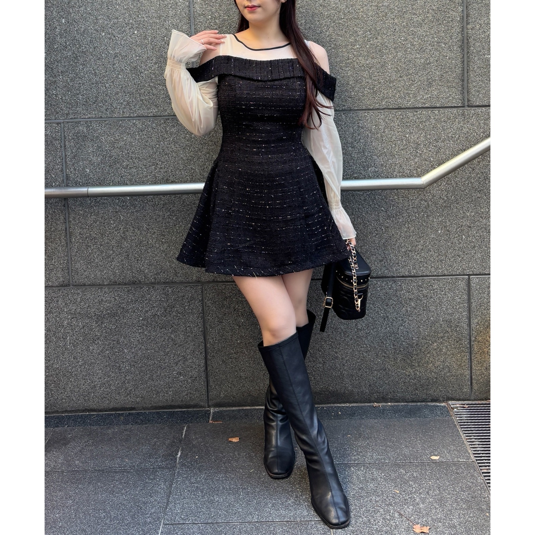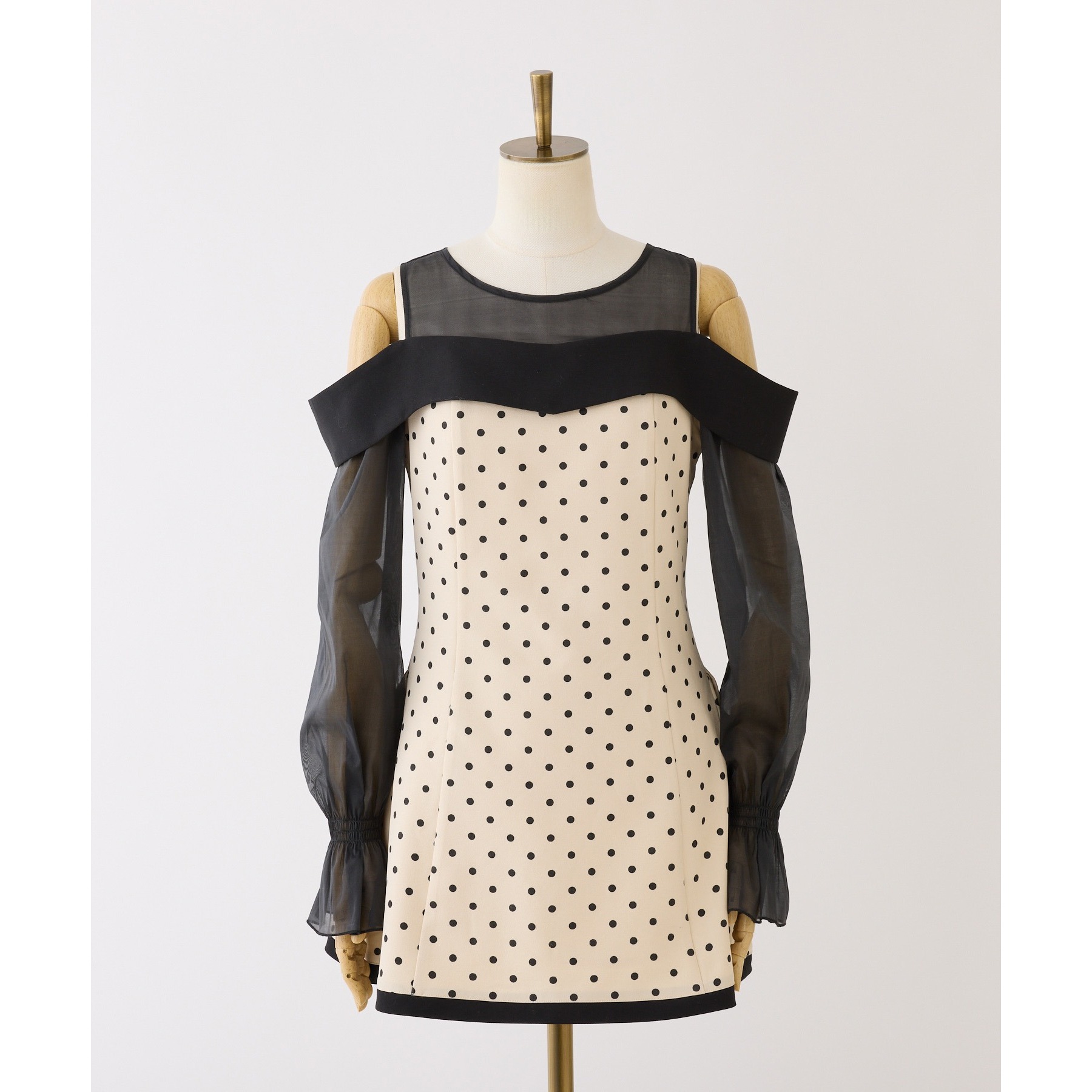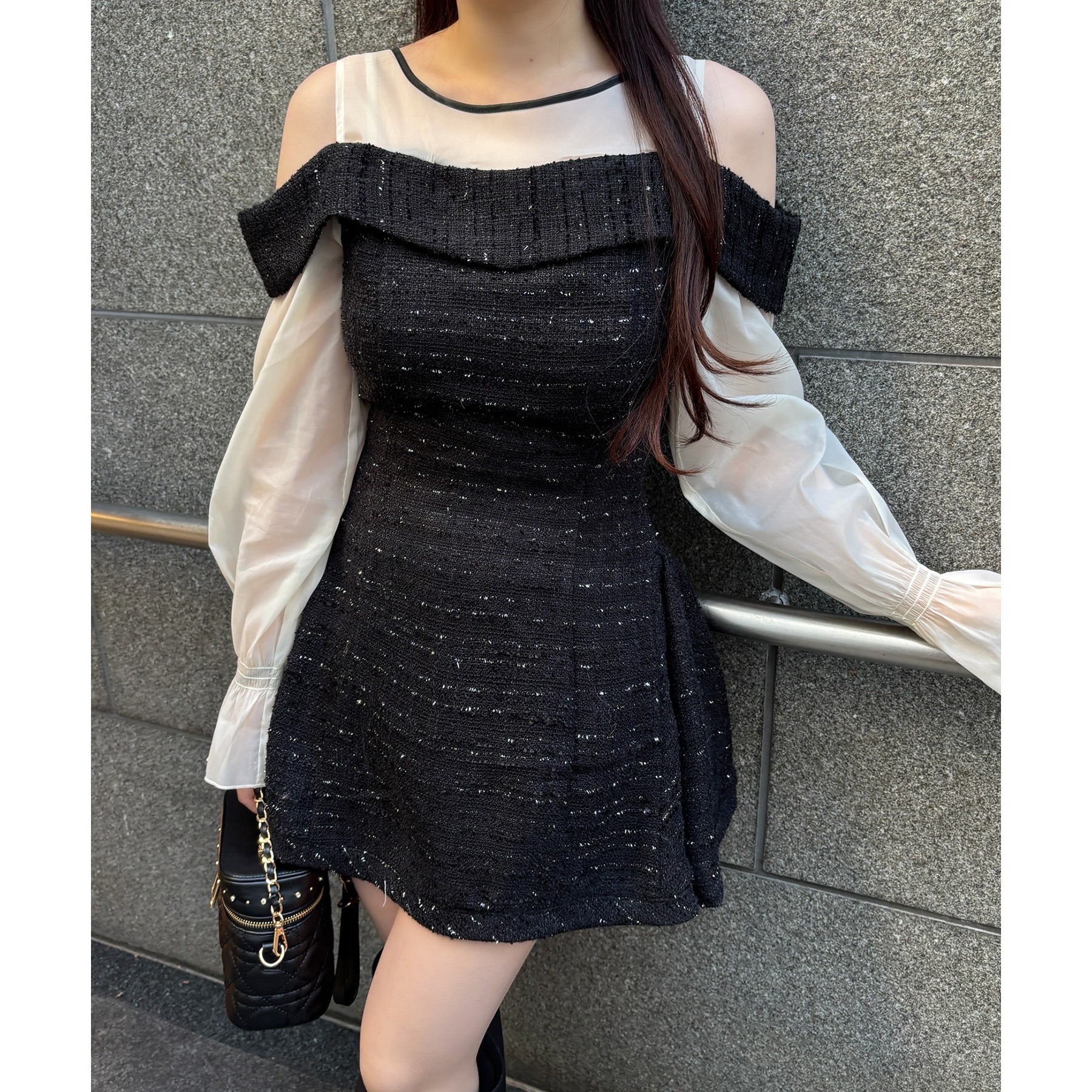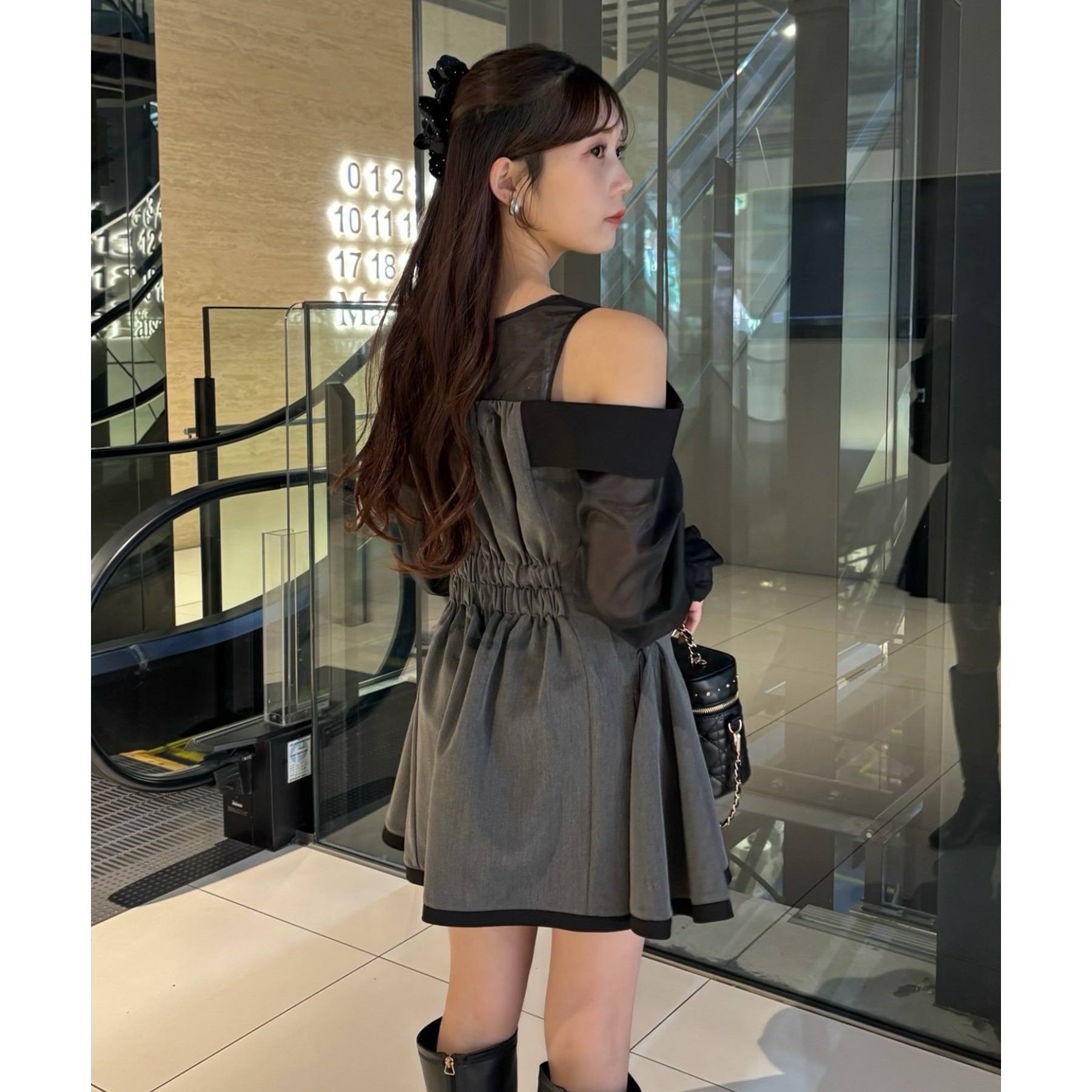 ほんのり肌見せが叶うシアー素材をデコルテと袖に使用したミニワンピース。