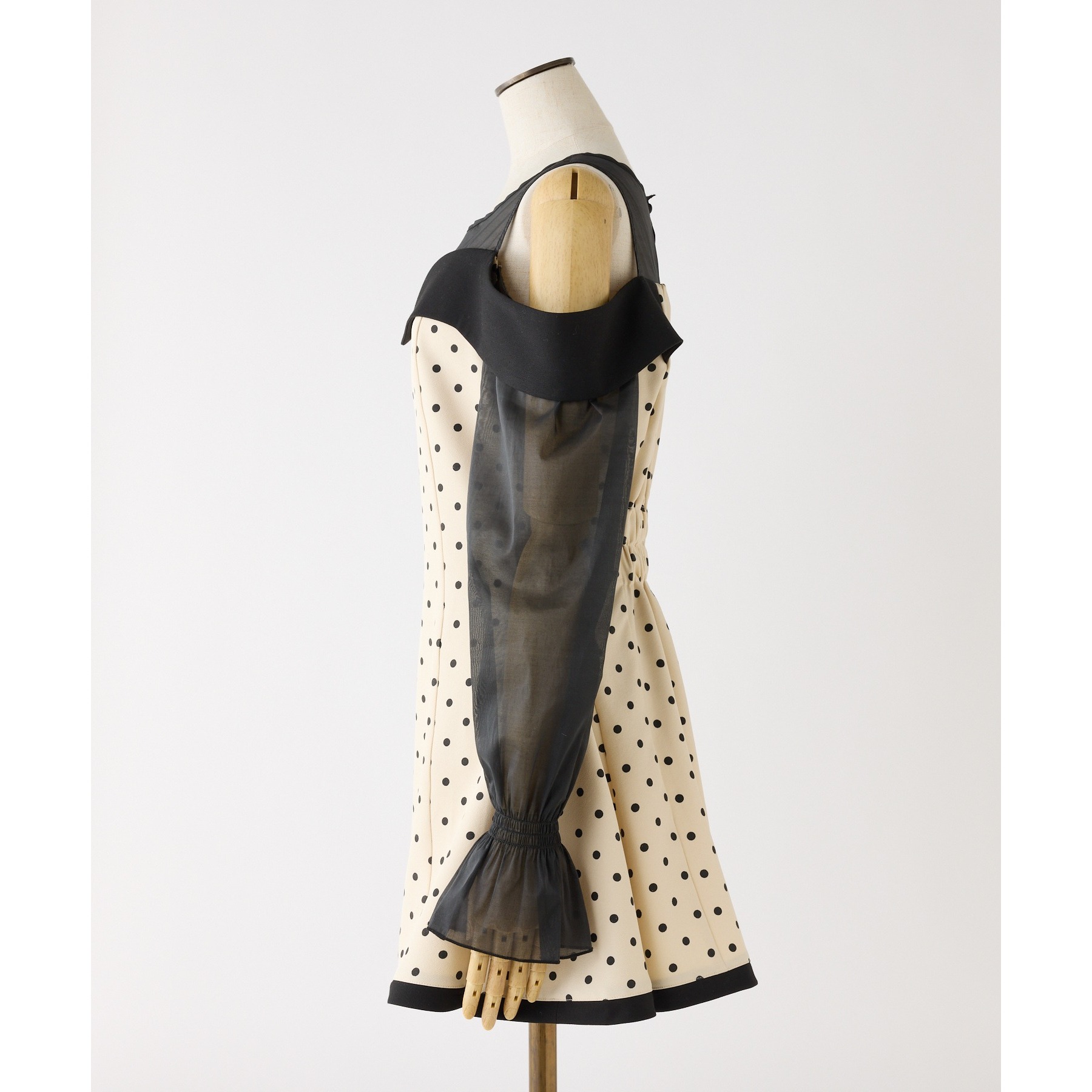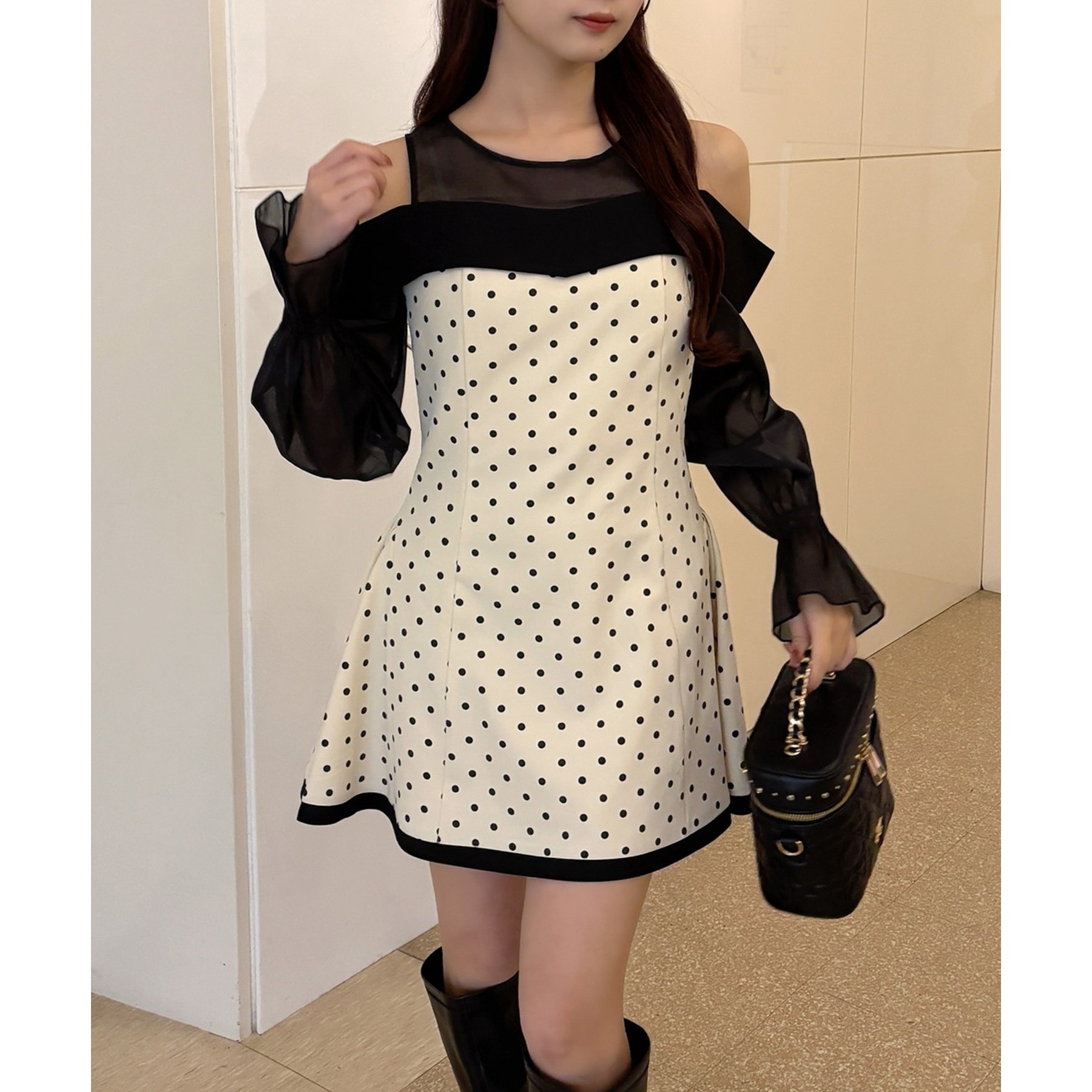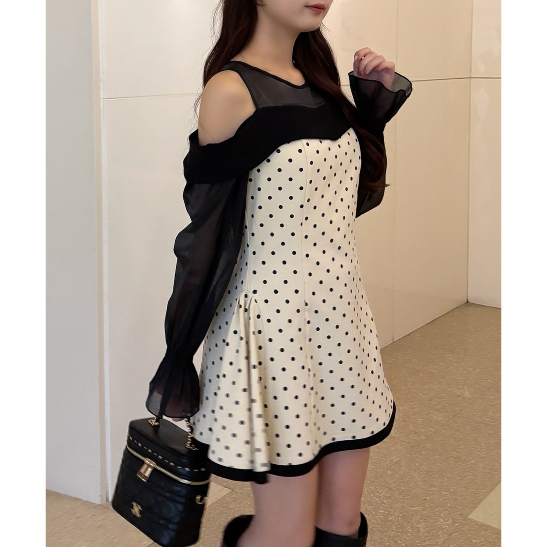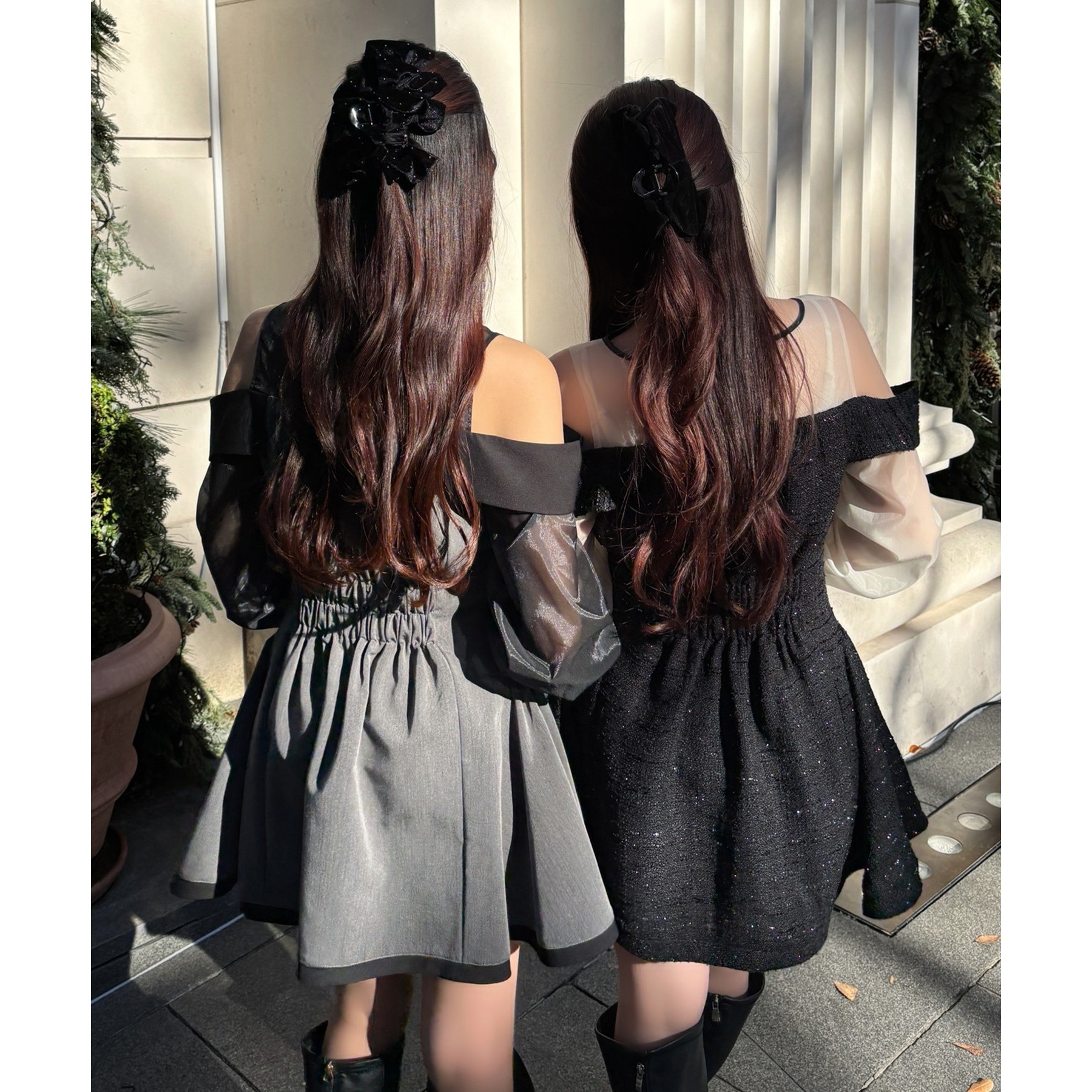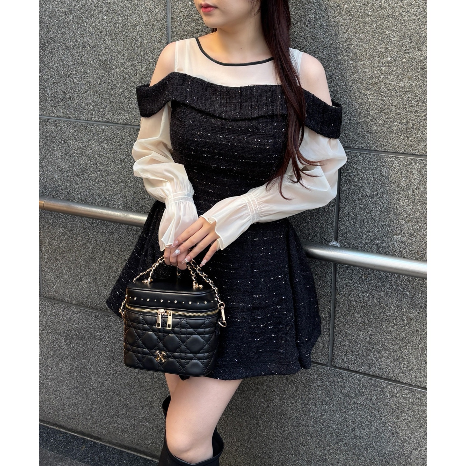 ほんのり肌見せが叶うシアー素材をデコルテと袖に使用したミニワンピース。