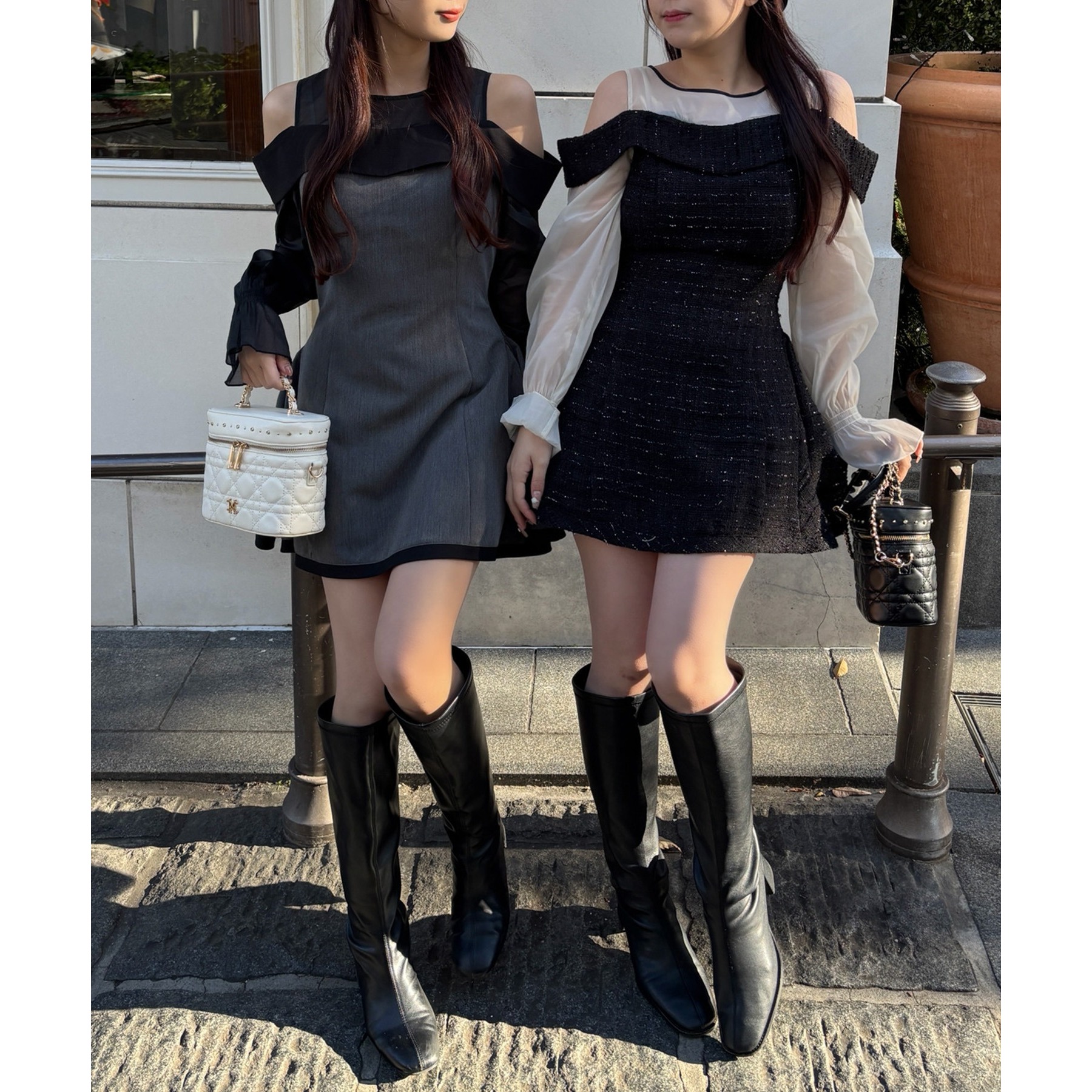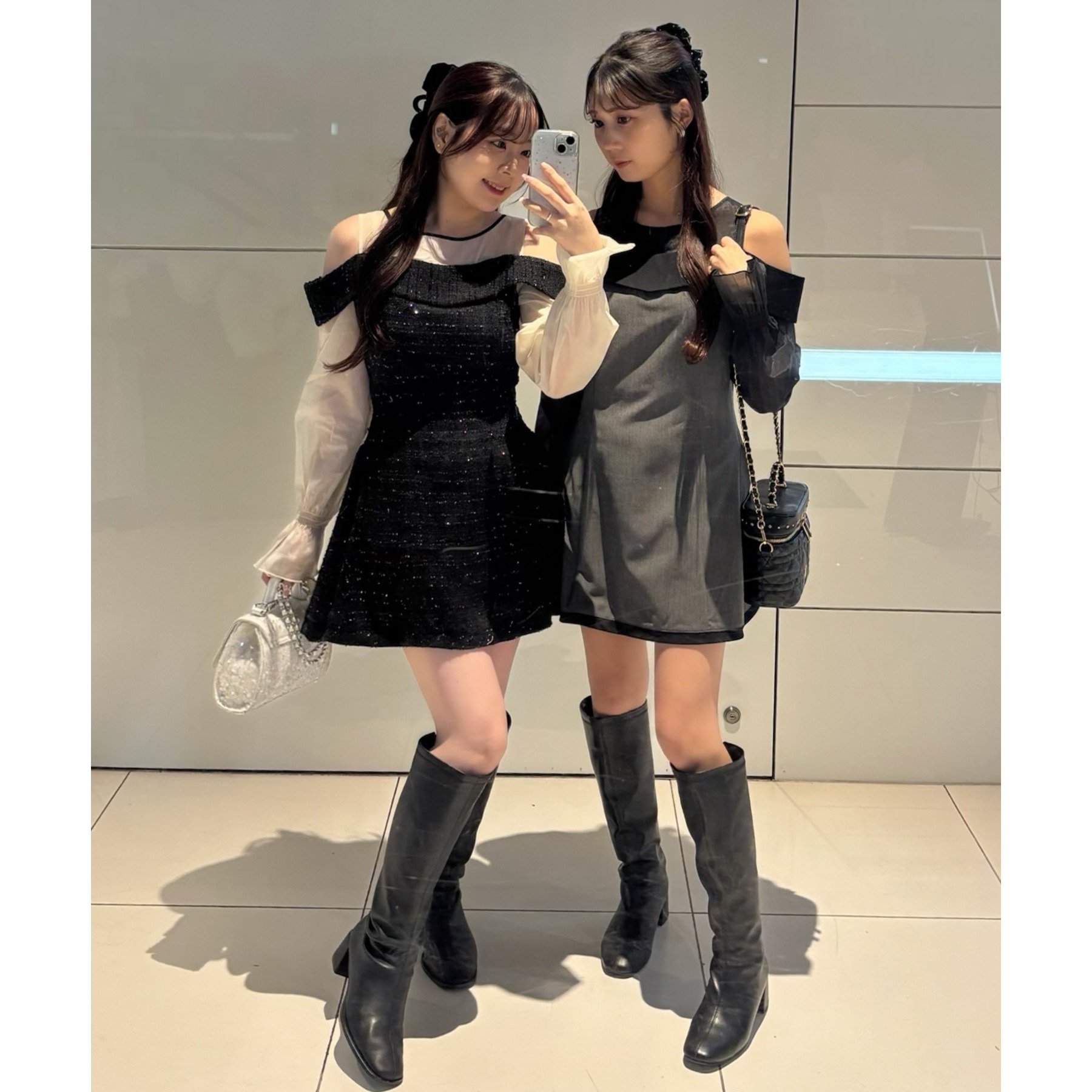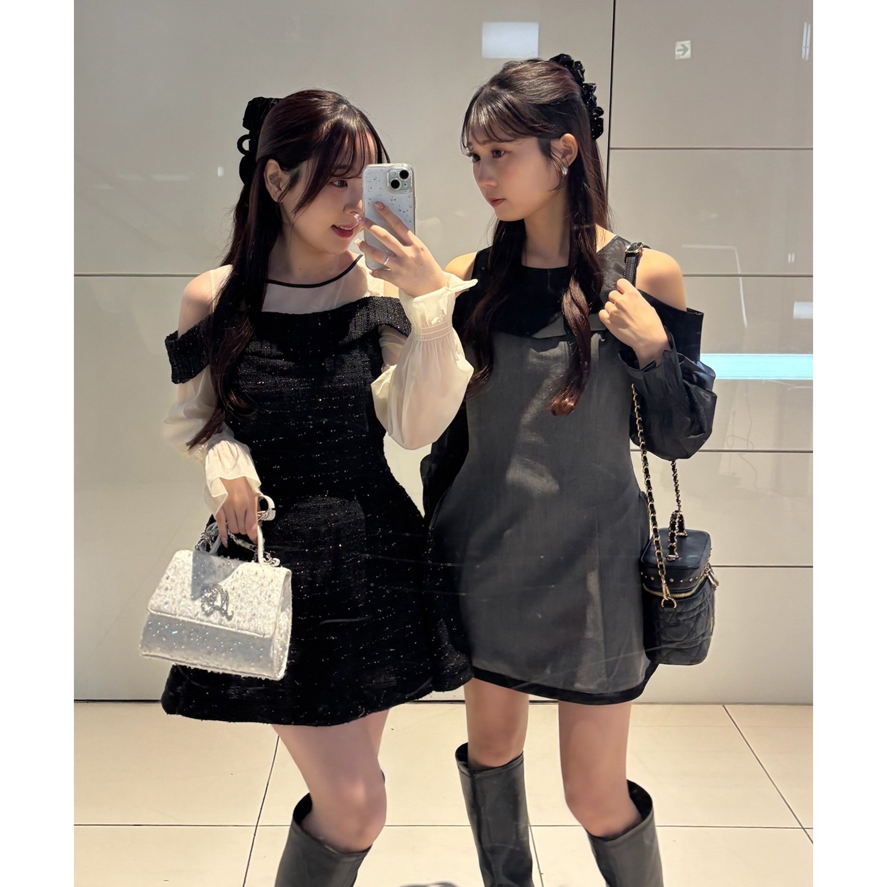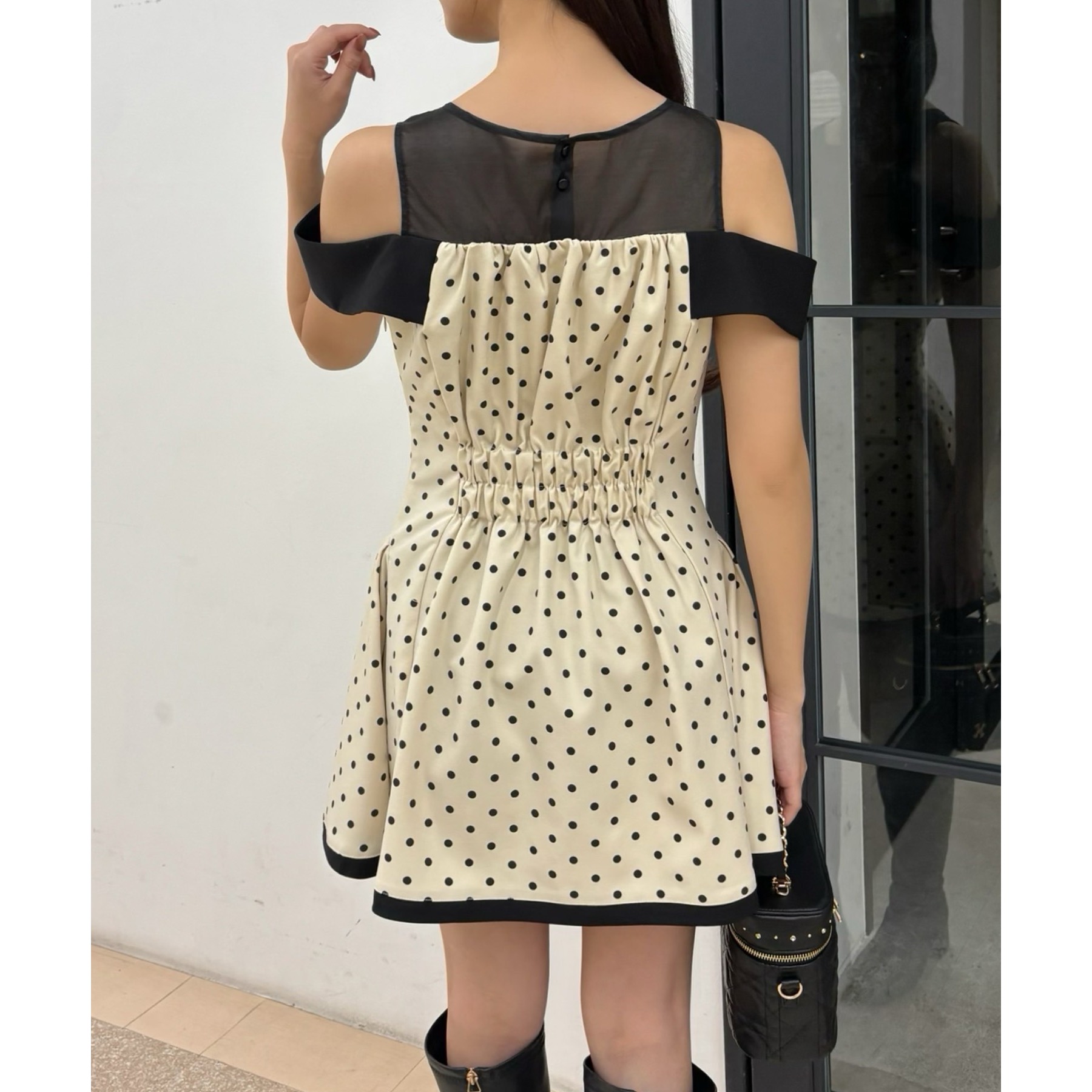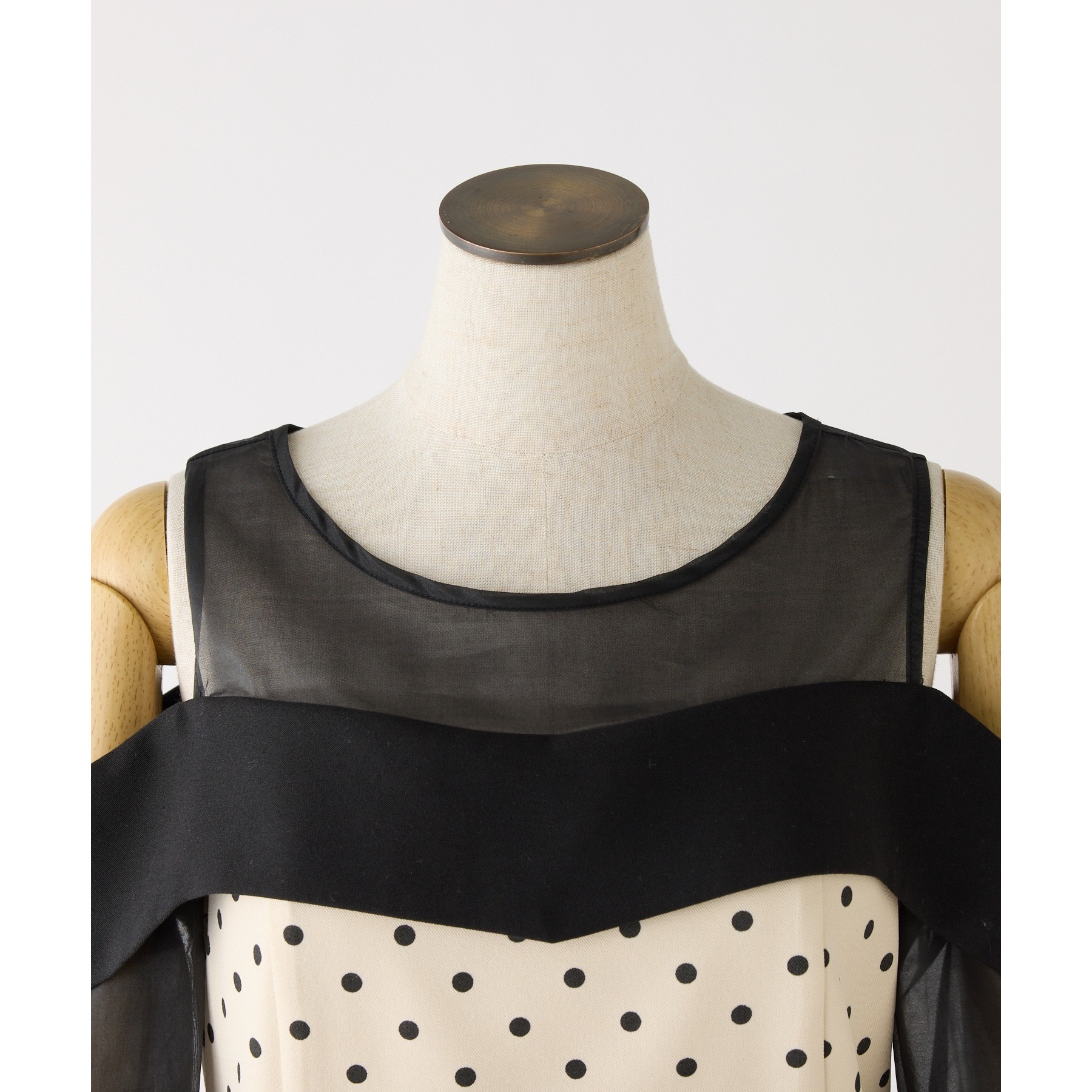 ほんのり肌見せが叶うシアー素材をデコルテと袖に使用したミニワンピース。
