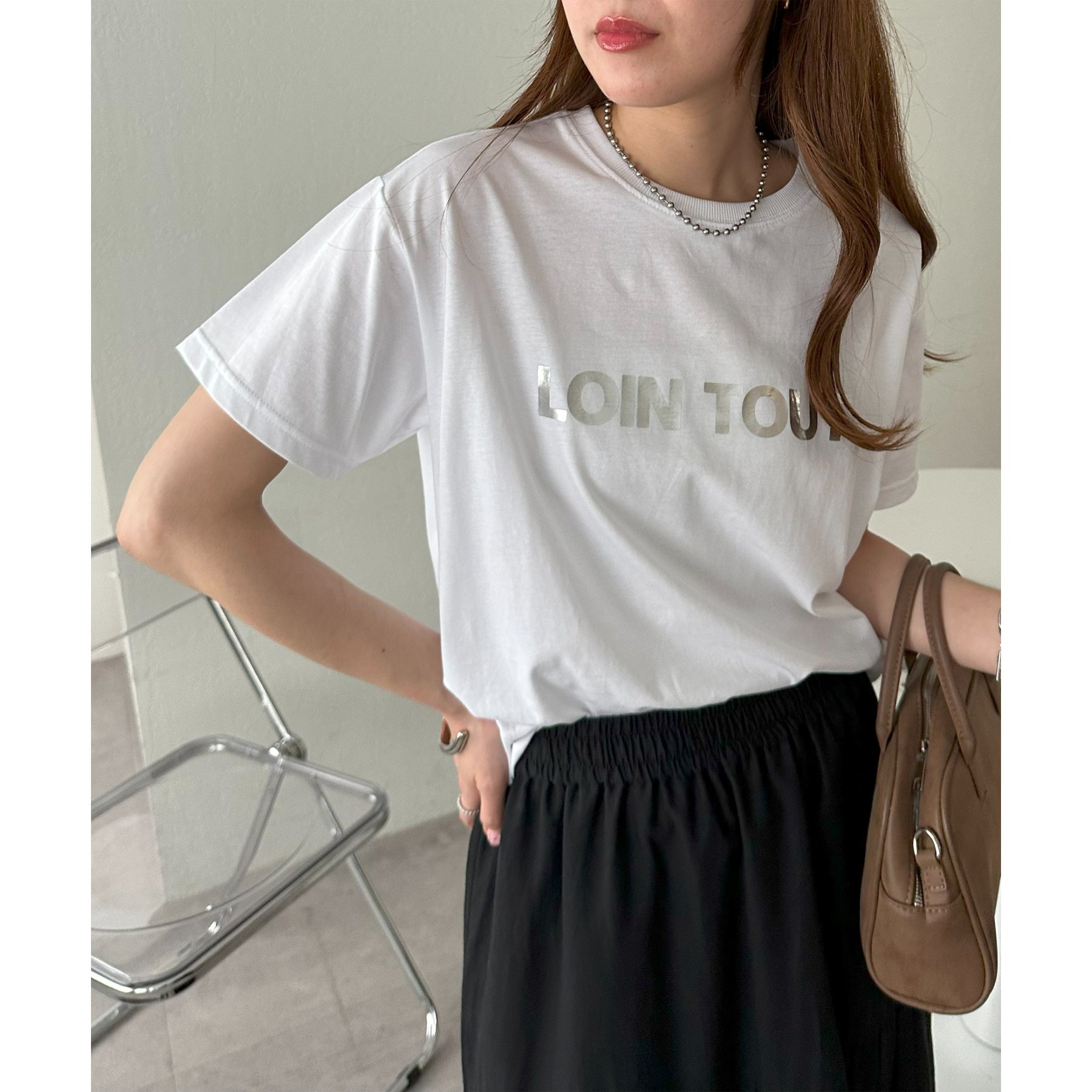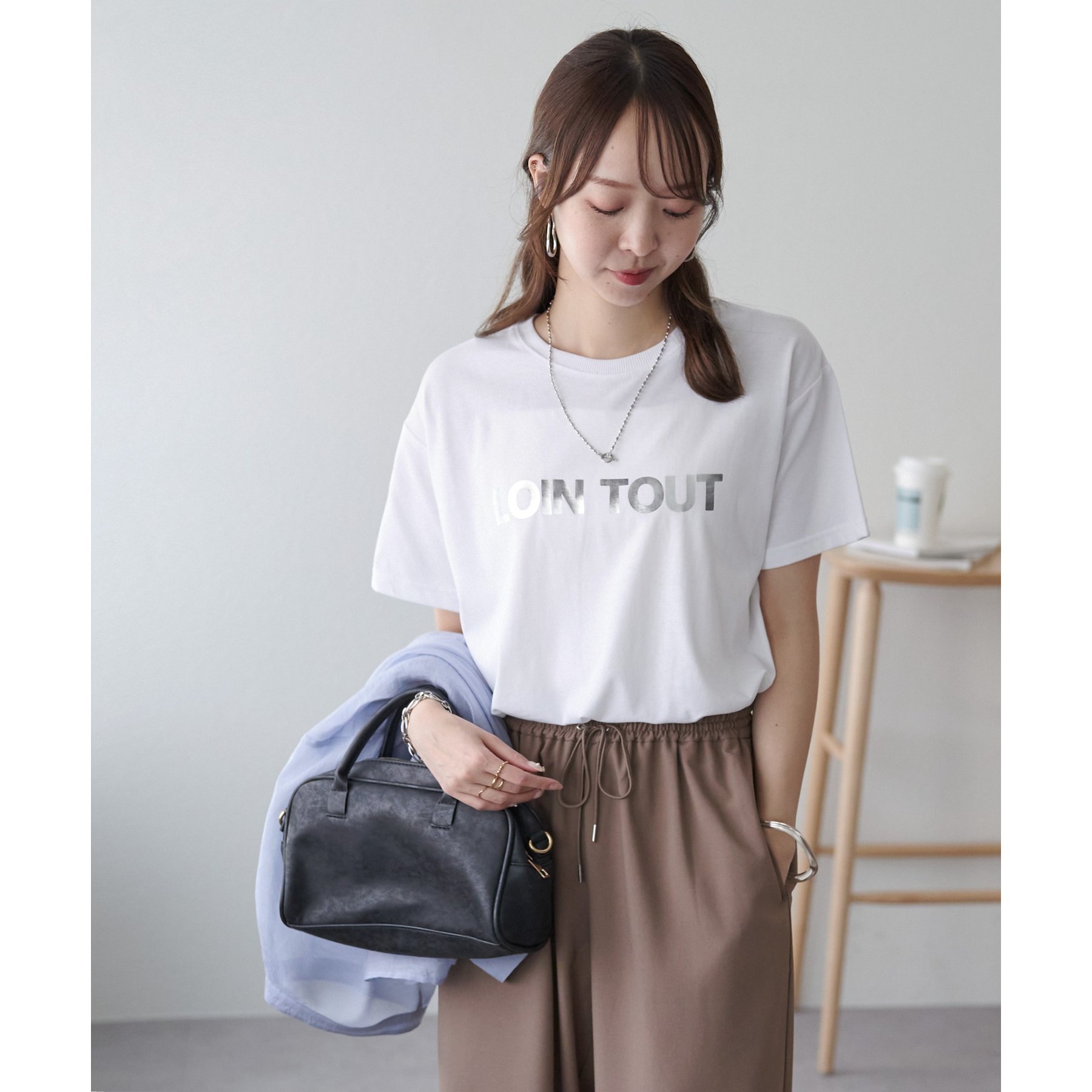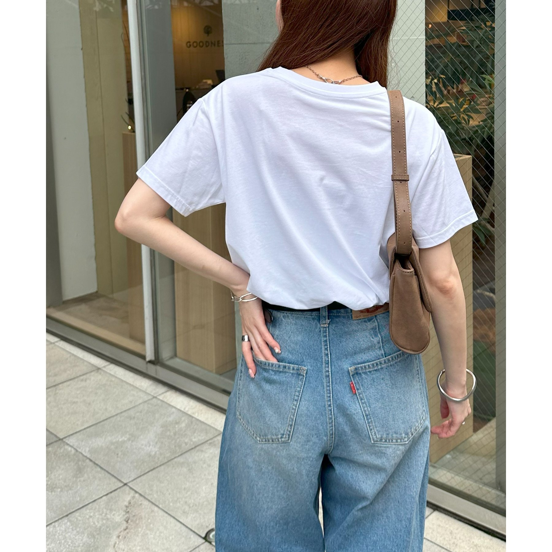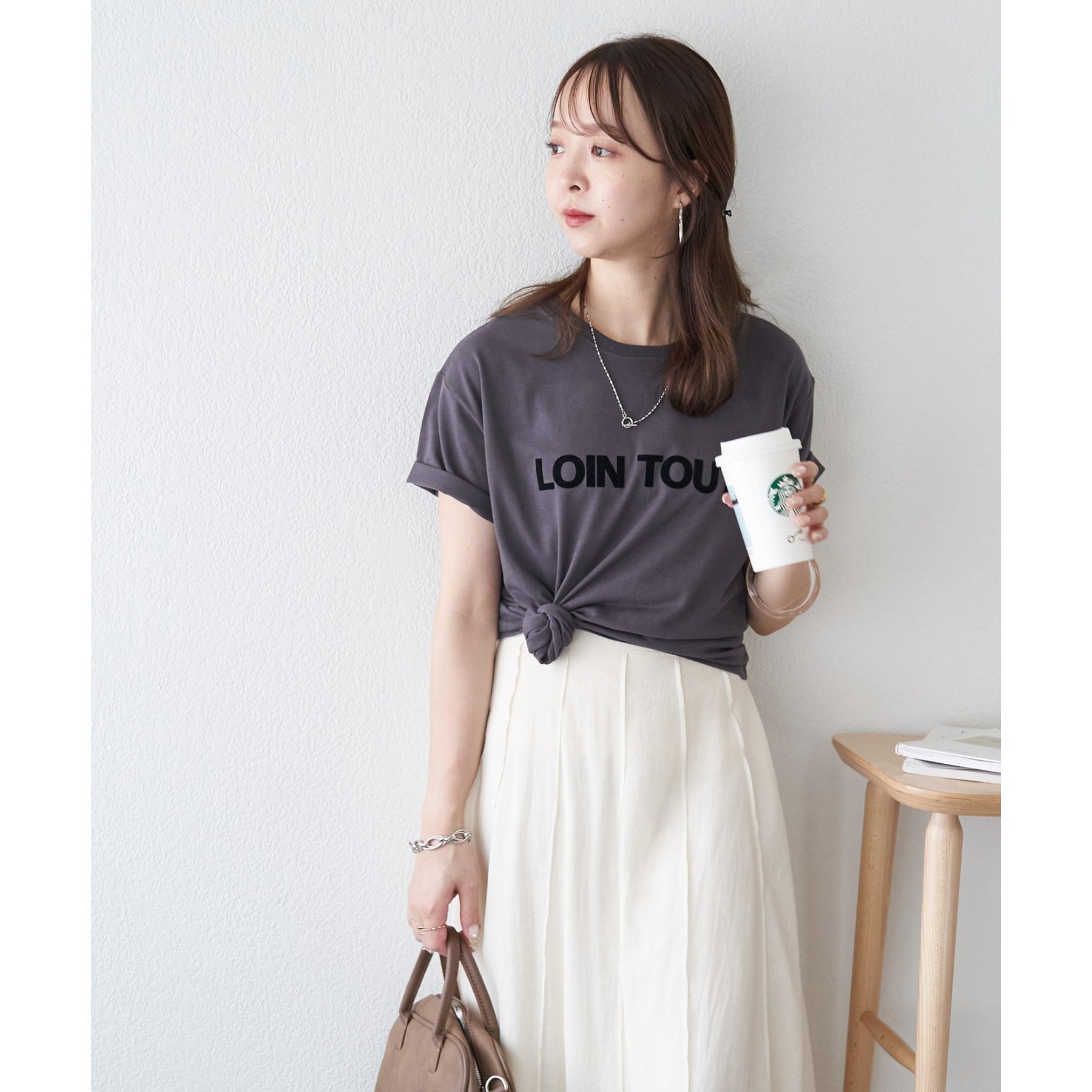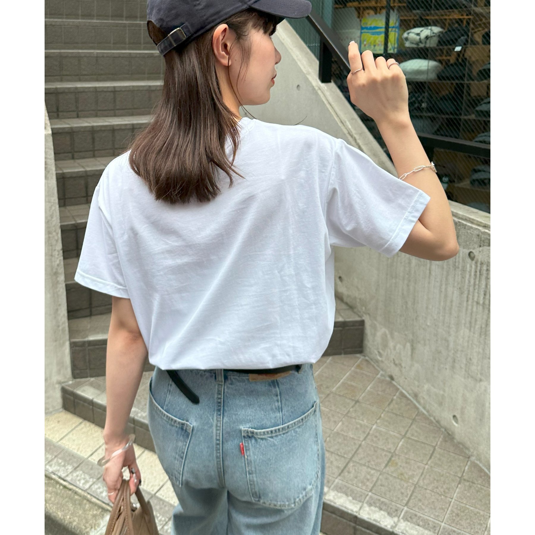 155cmスタッフ:ヒップにかかるくらいの丈感です。ロゴ部分はフロッキーや箔プリントになっているので高見えするTシャツです!