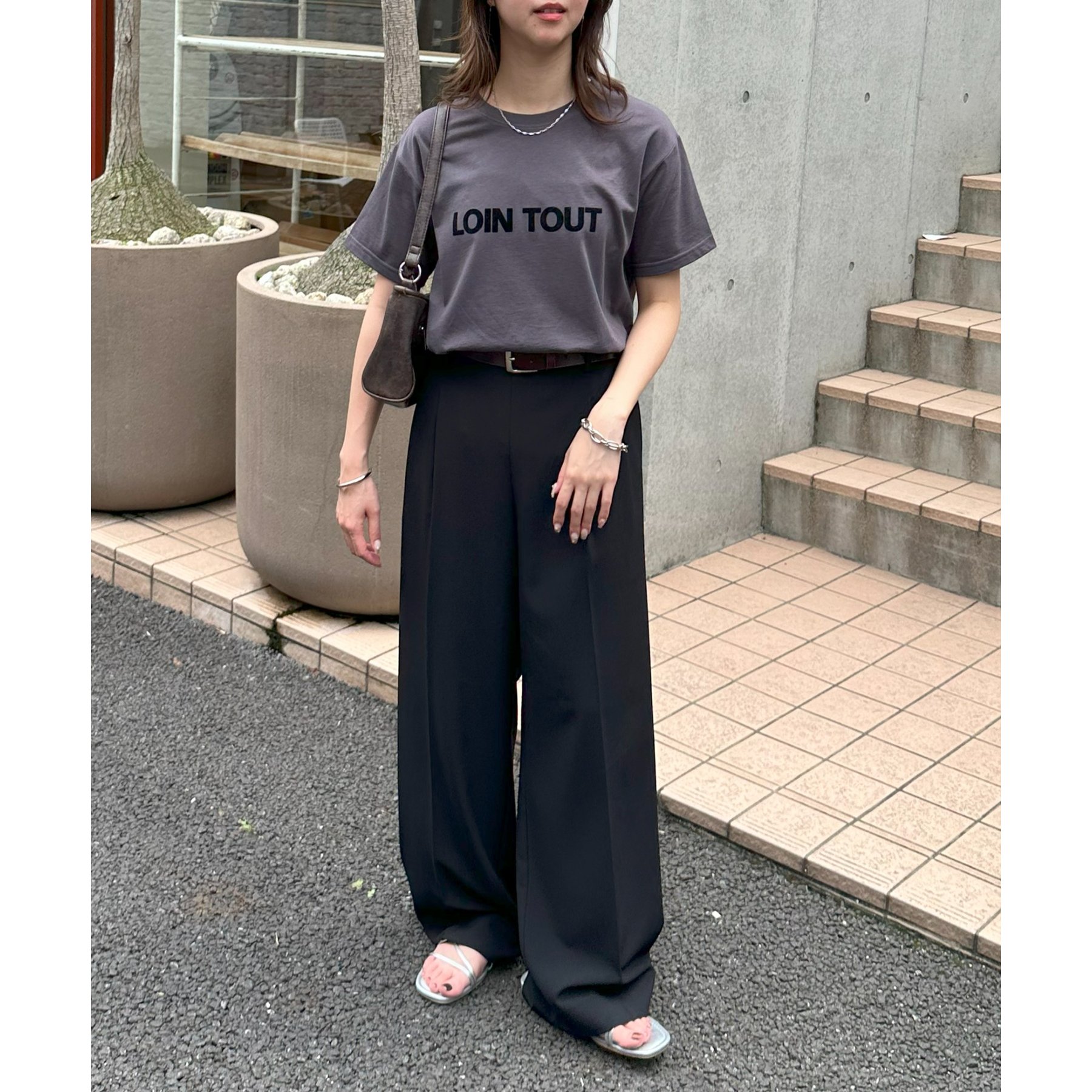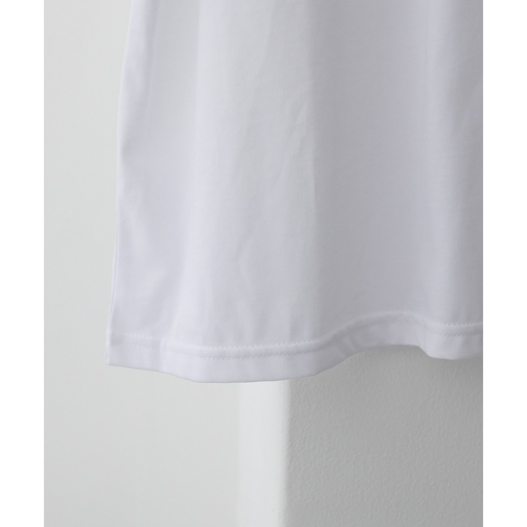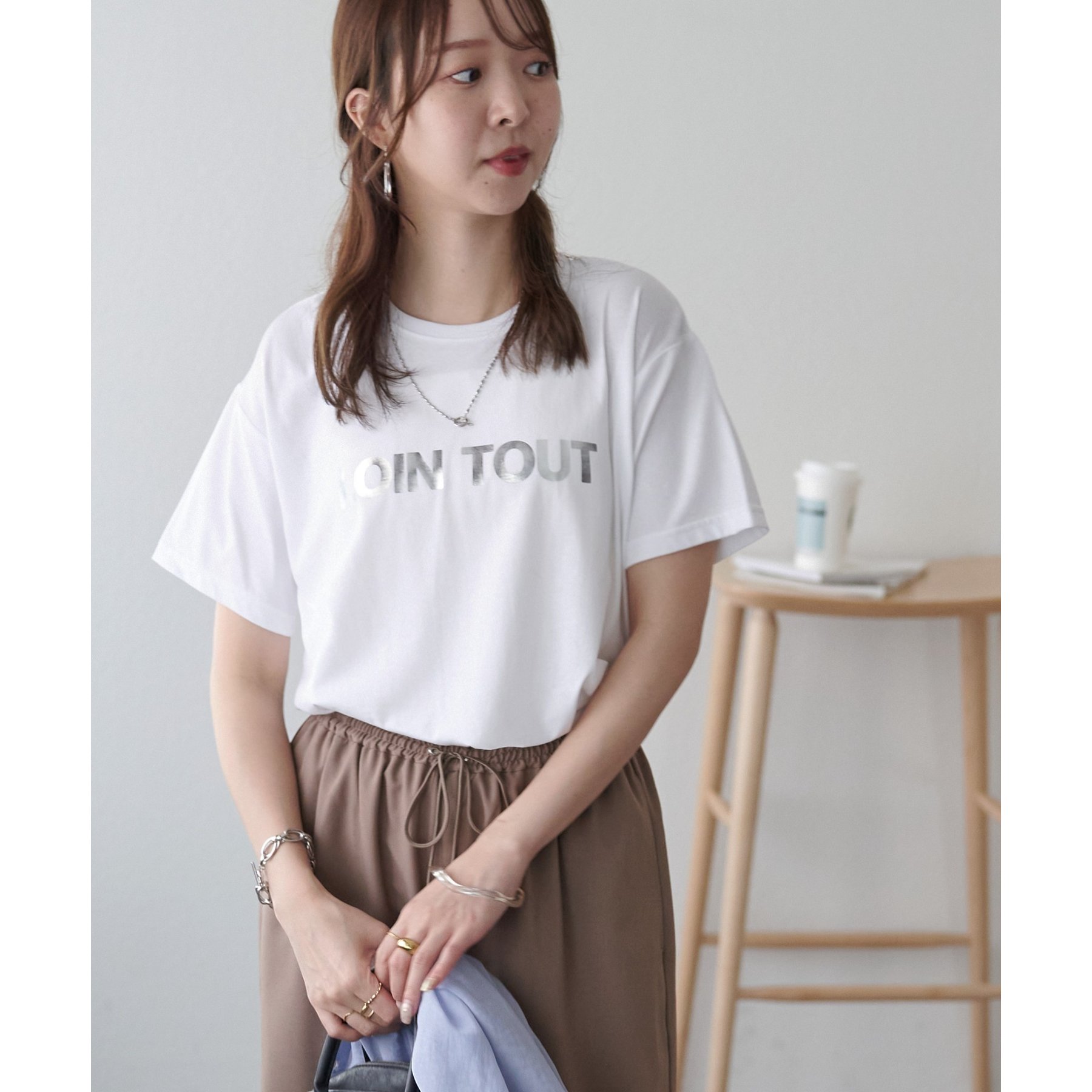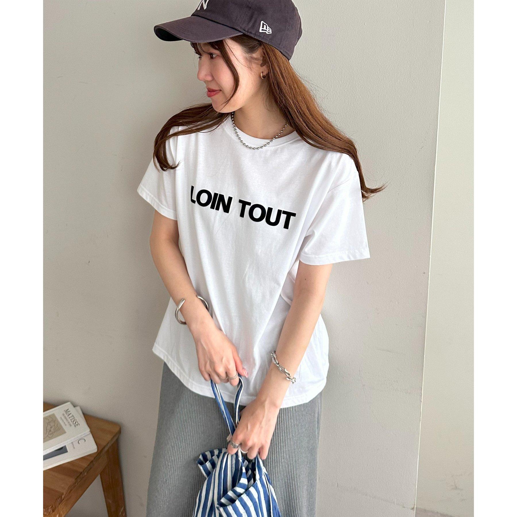 155cmスタッフ:ヒップにかかるくらいの丈感です。ロゴ部分はフロッキーや箔プリントになっているので高見えするTシャツです!