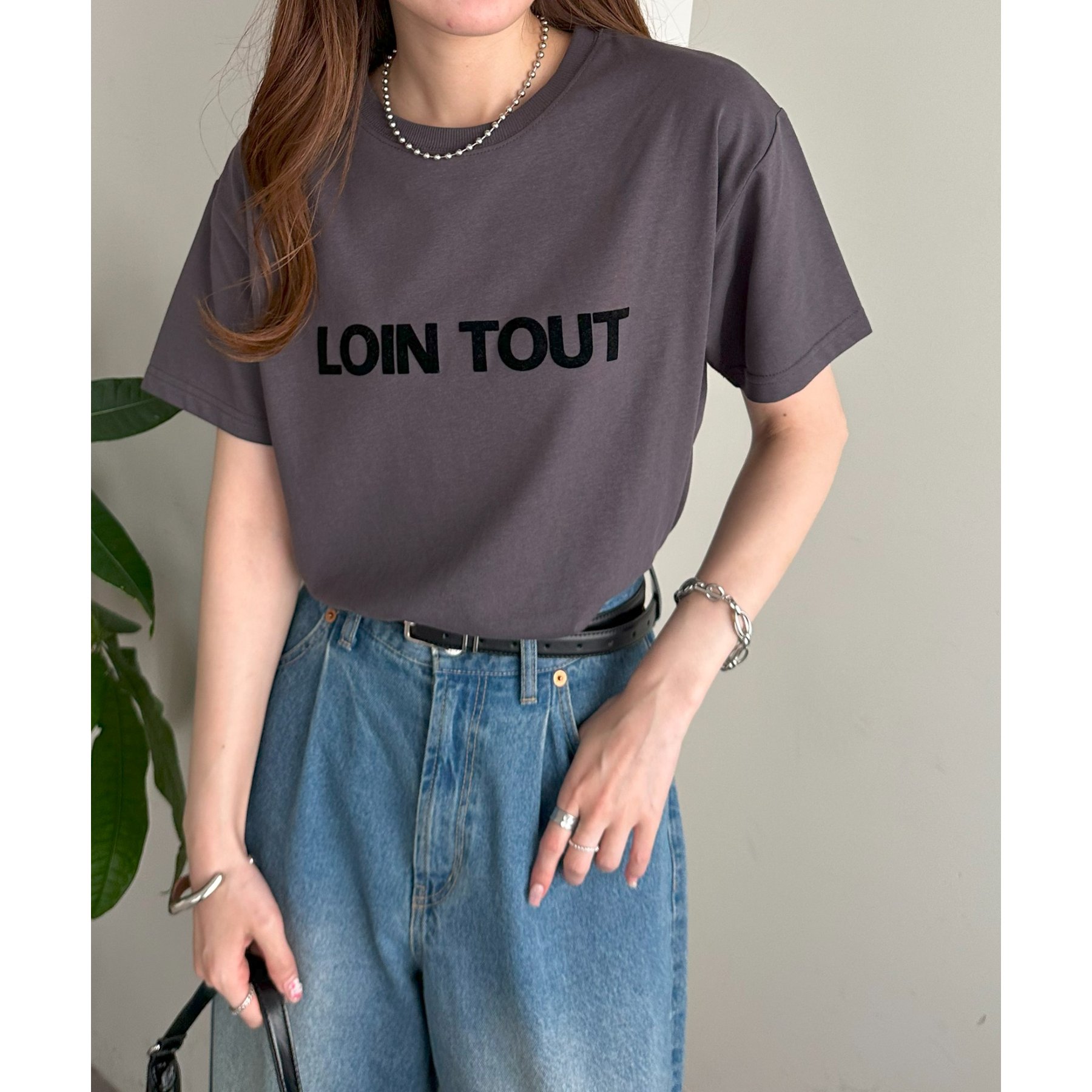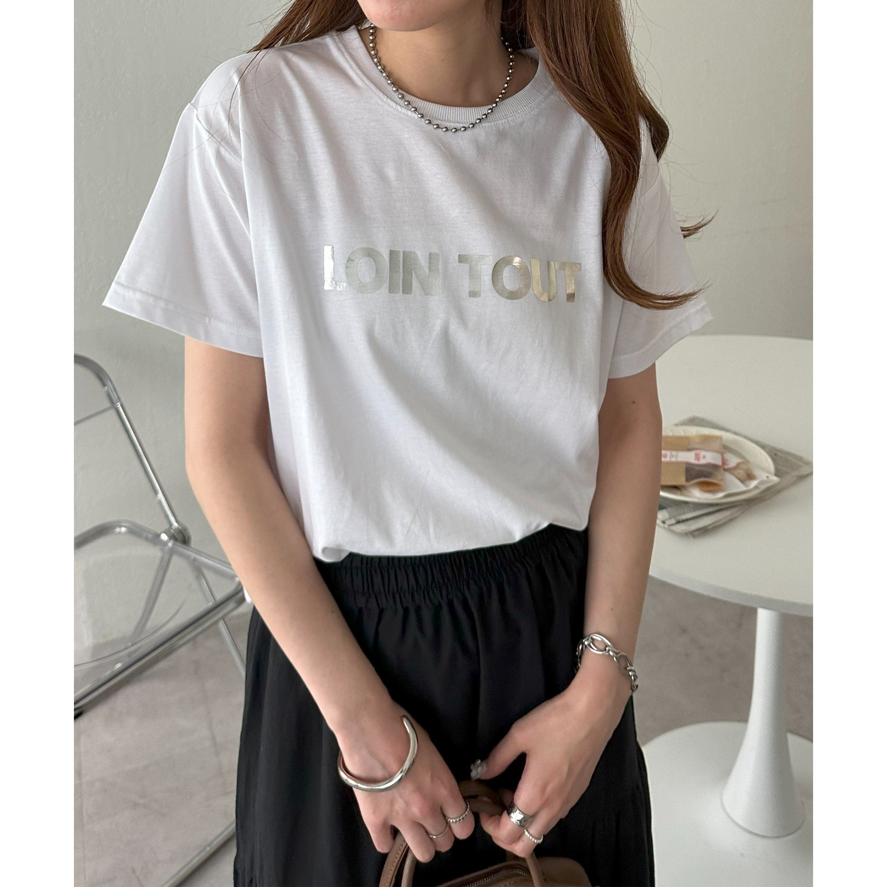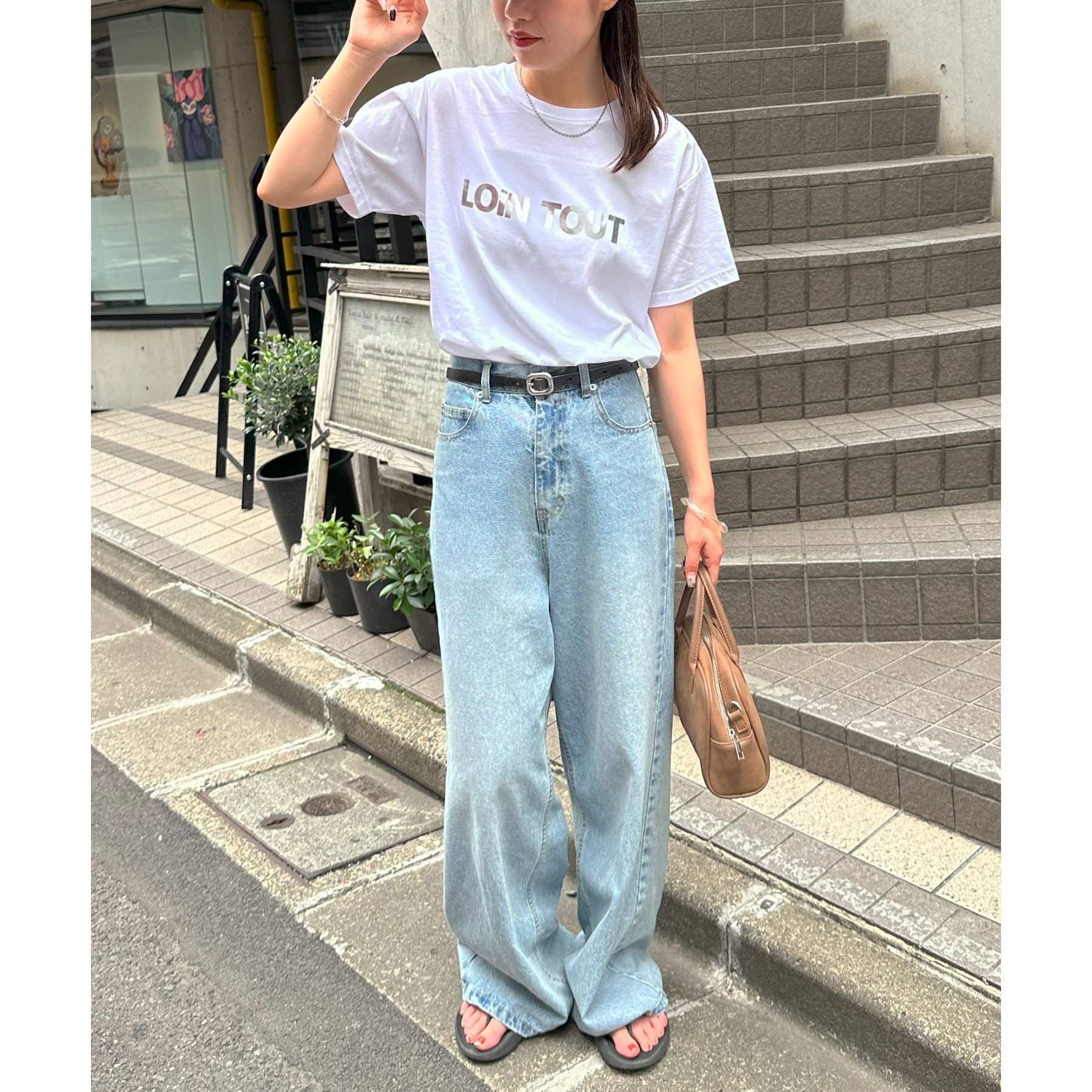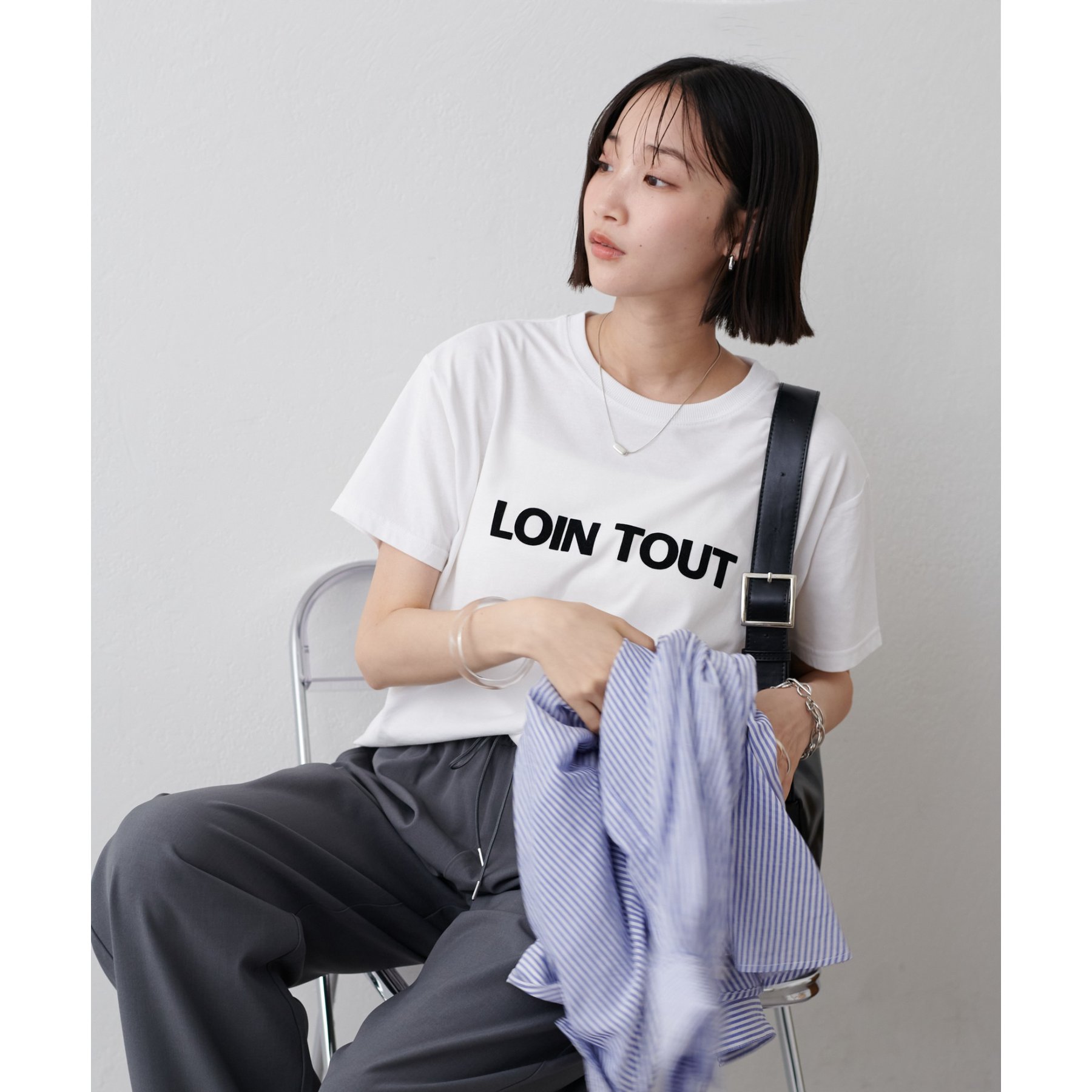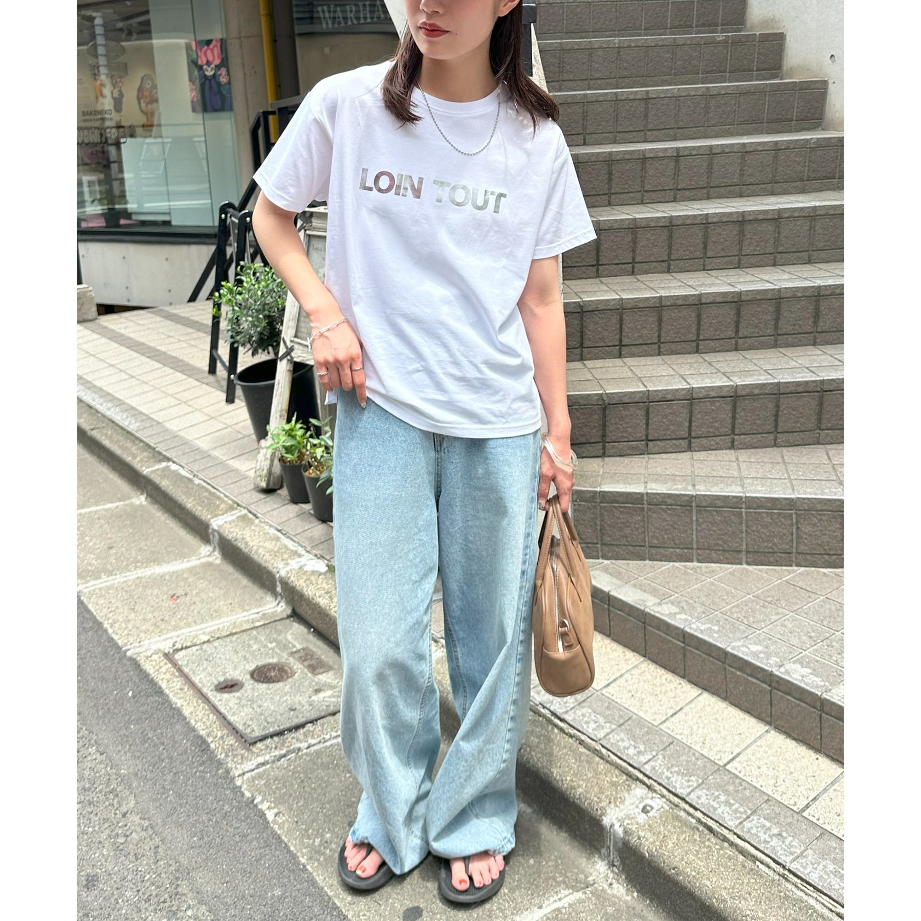 155cmスタッフ:ヒップにかかるくらいの丈感です。ロゴ部分はフロッキーや箔プリントになっているので高見えするTシャツです!