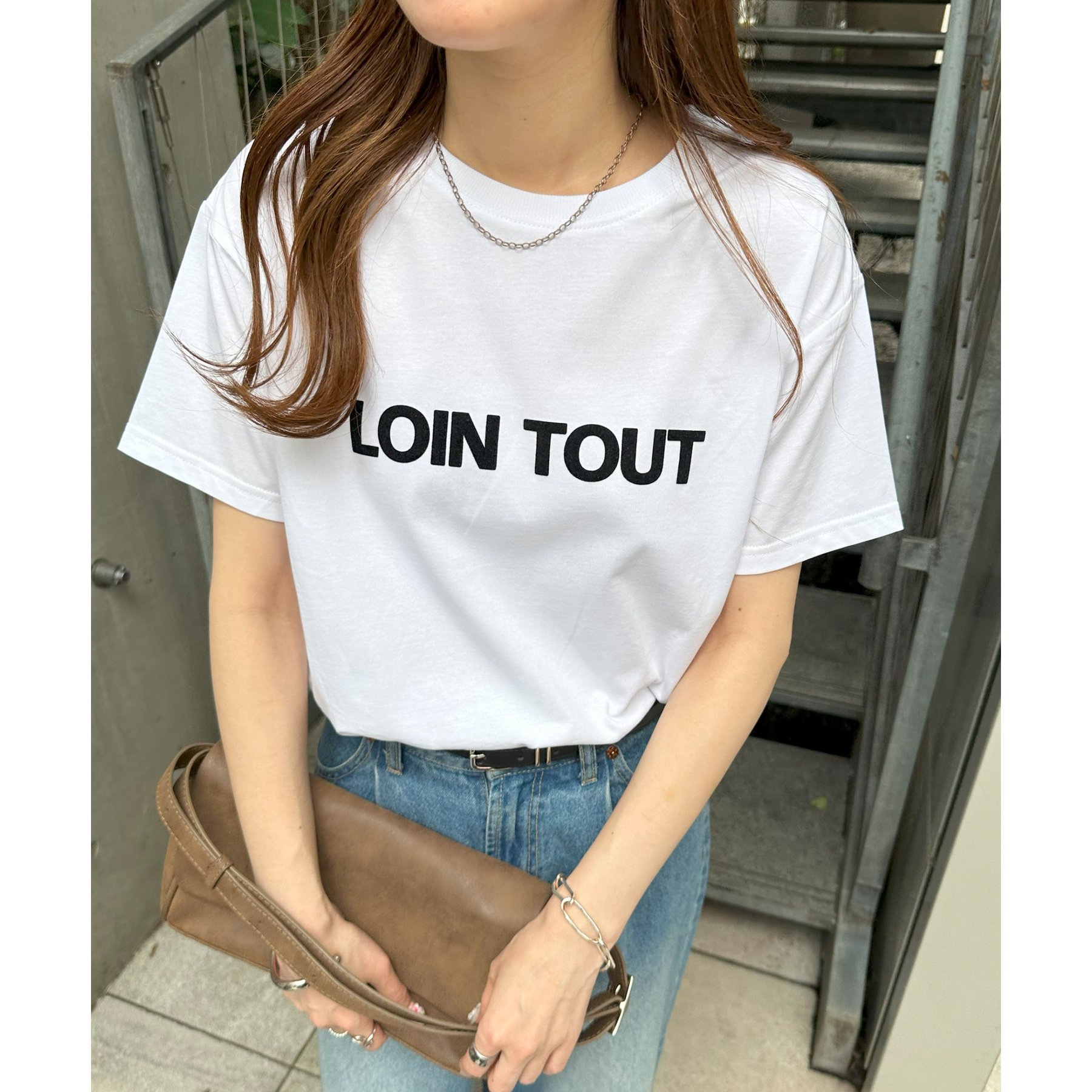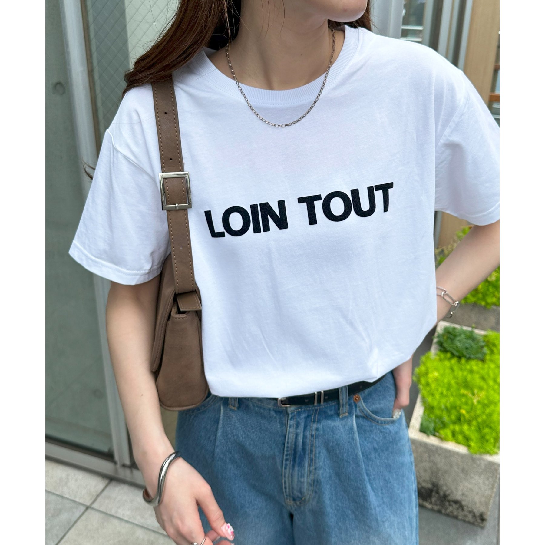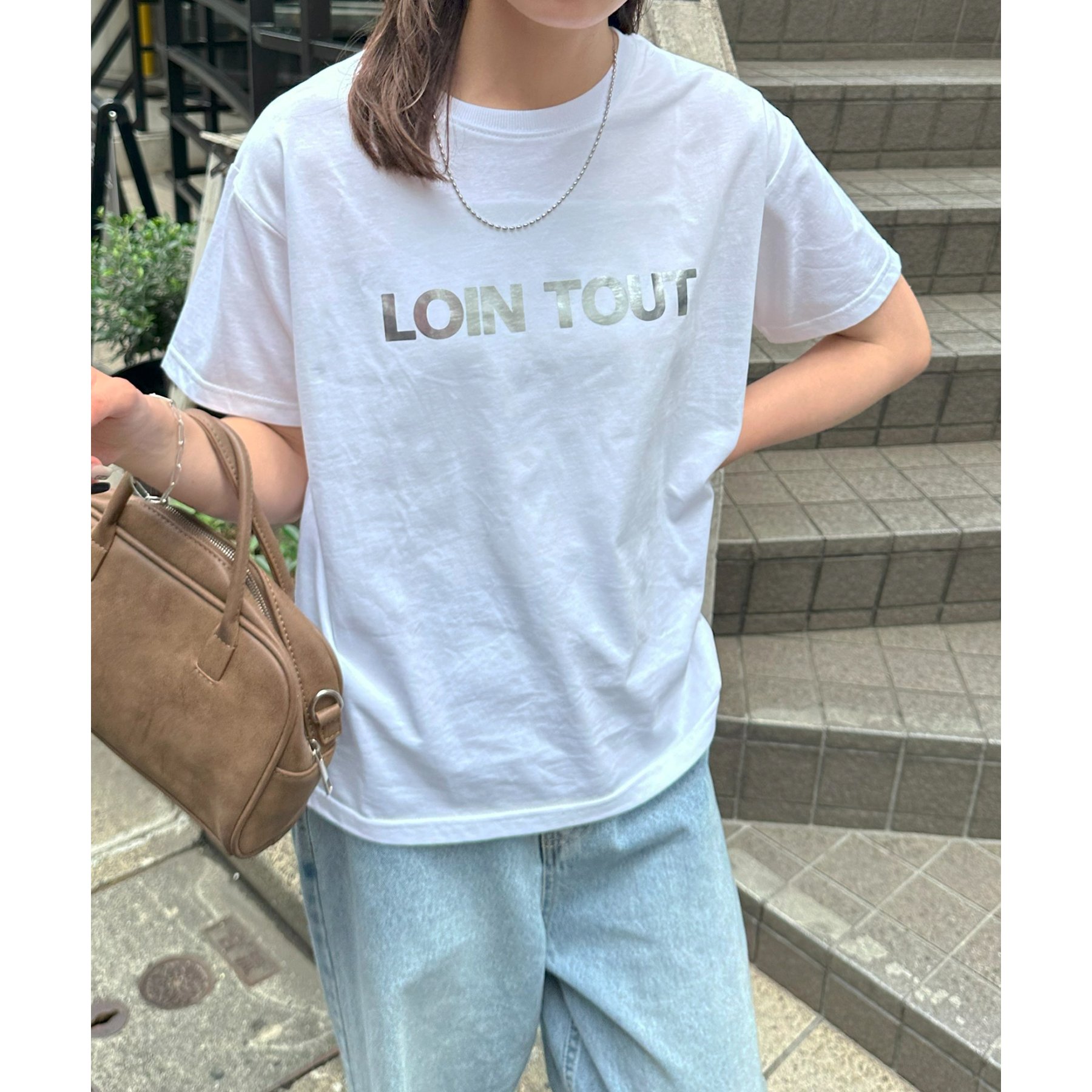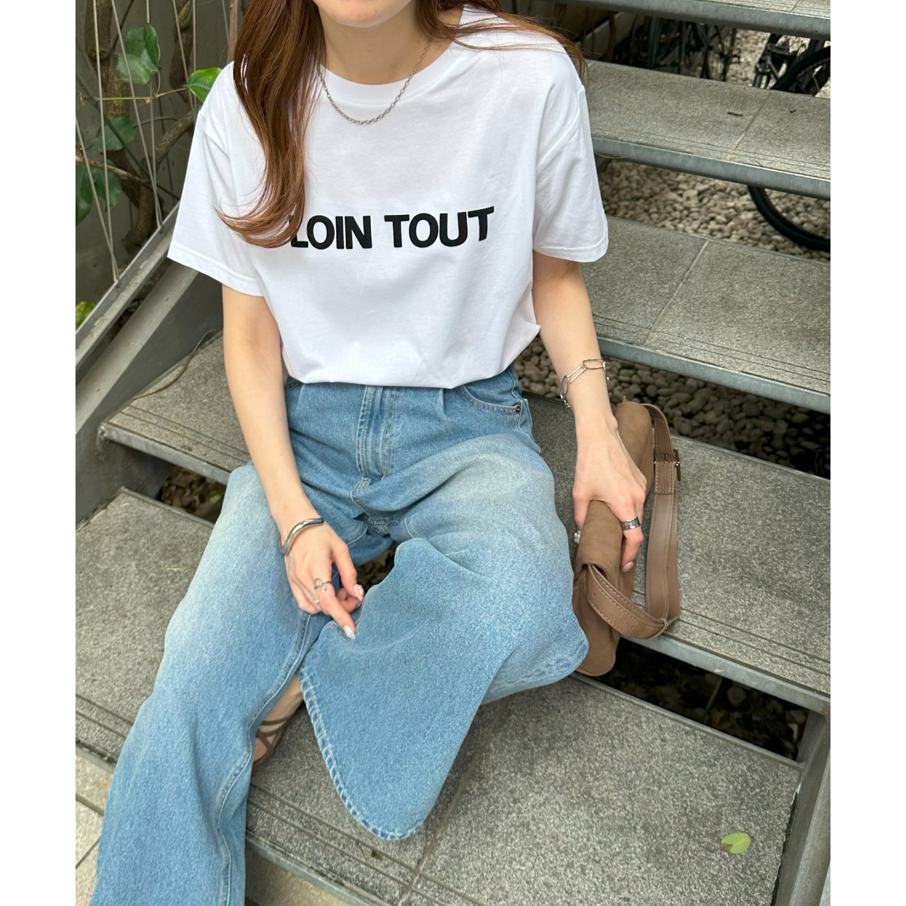 155cmスタッフ:ヒップにかかるくらいの丈感です。ロゴ部分はフロッキーや箔プリントになっているので高見えするTシャツです!