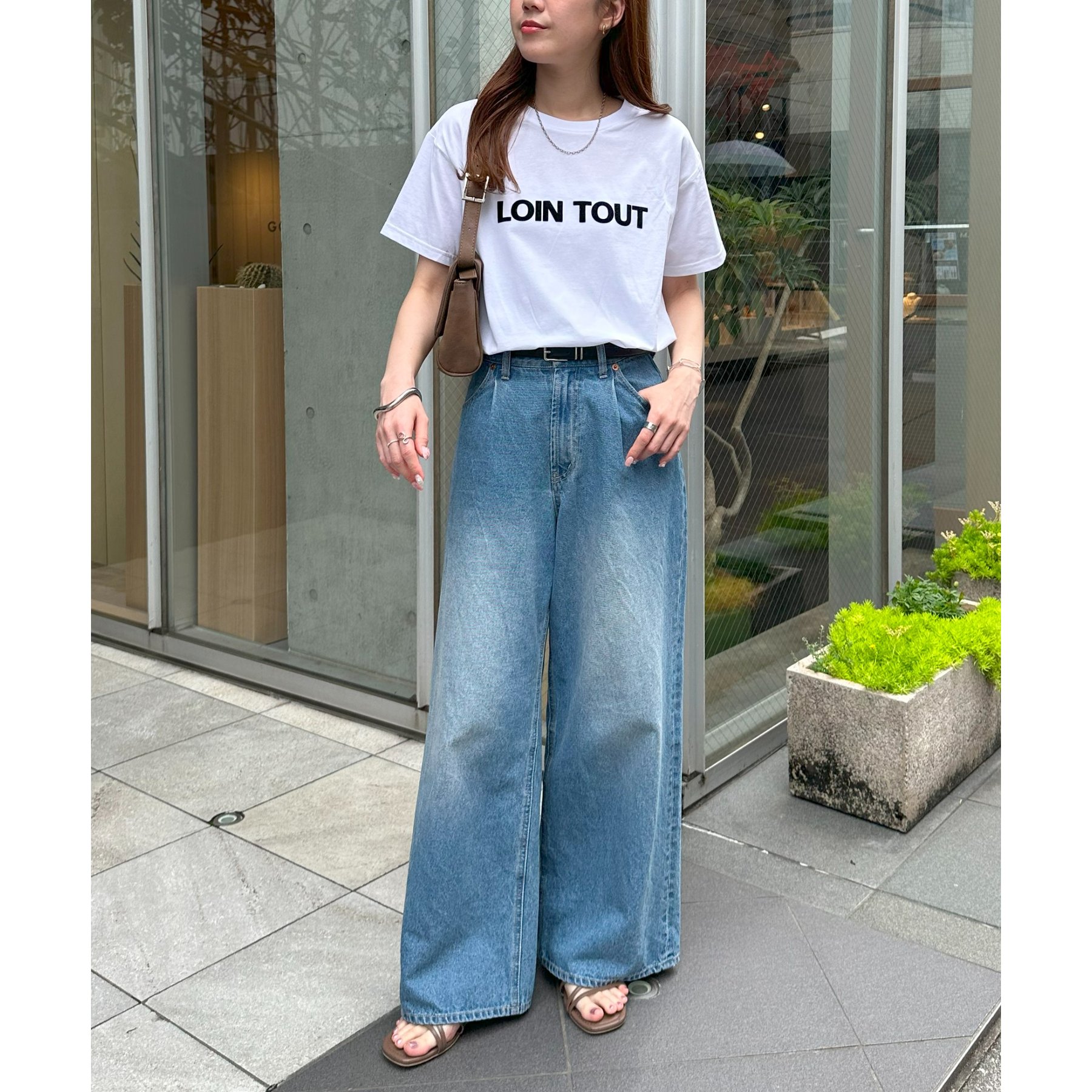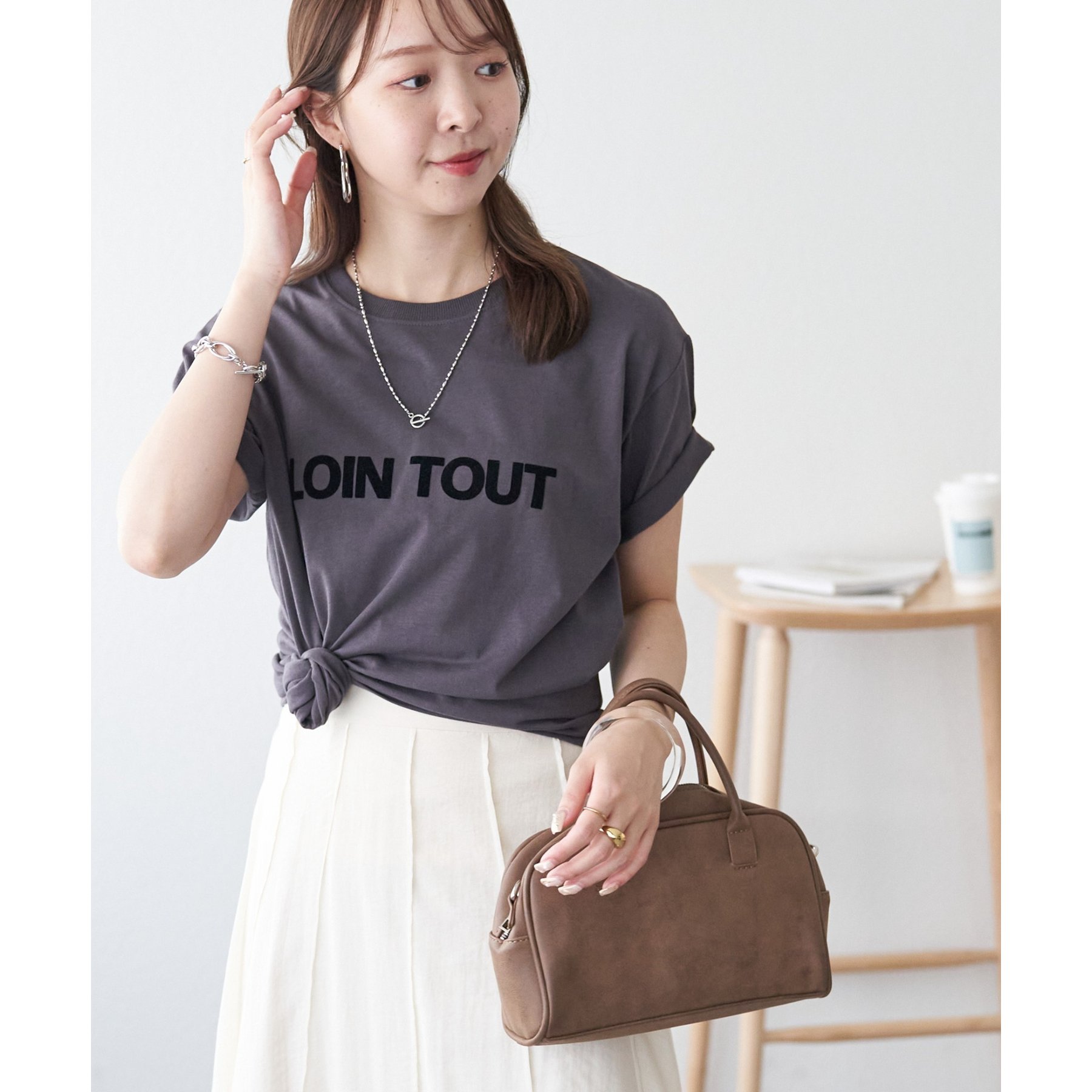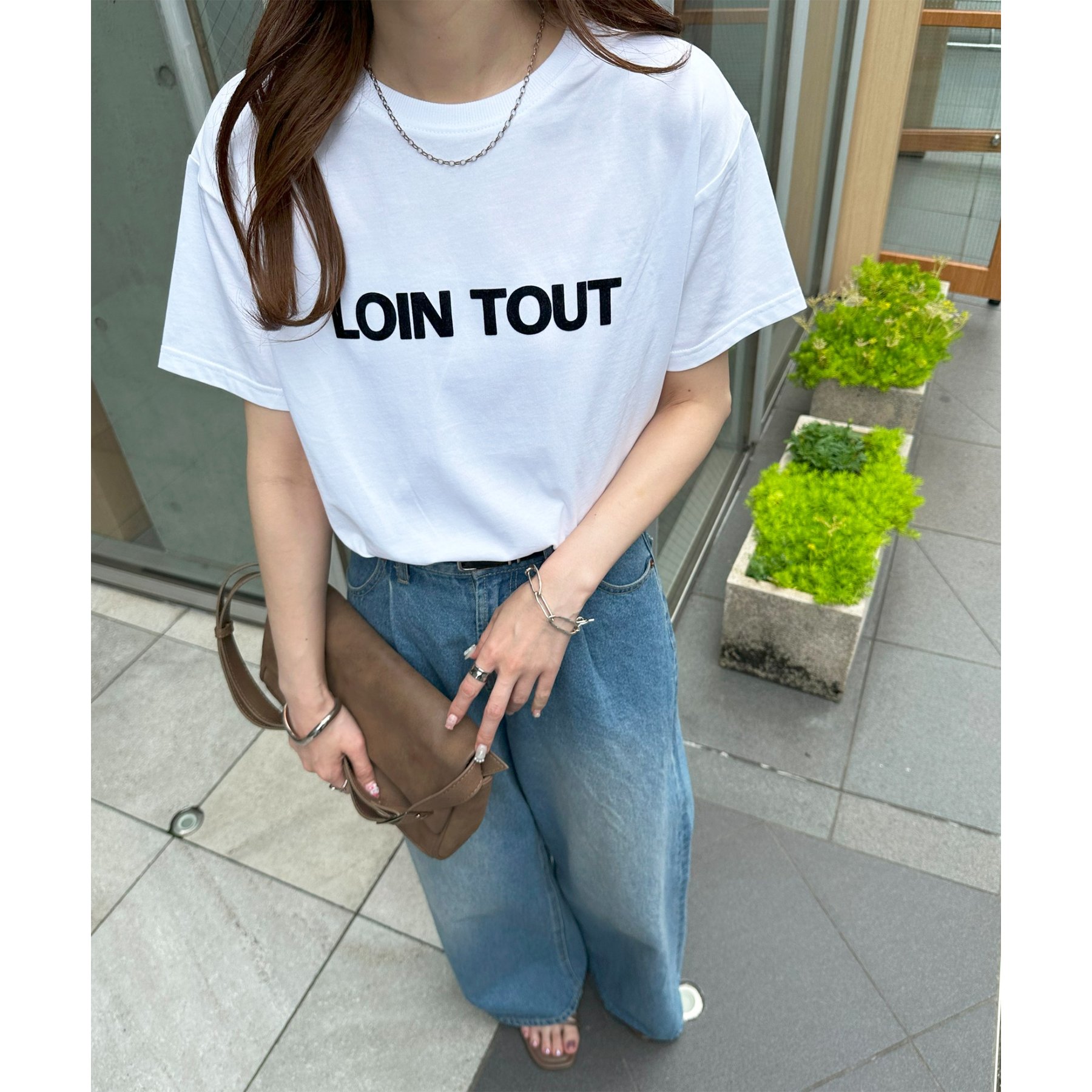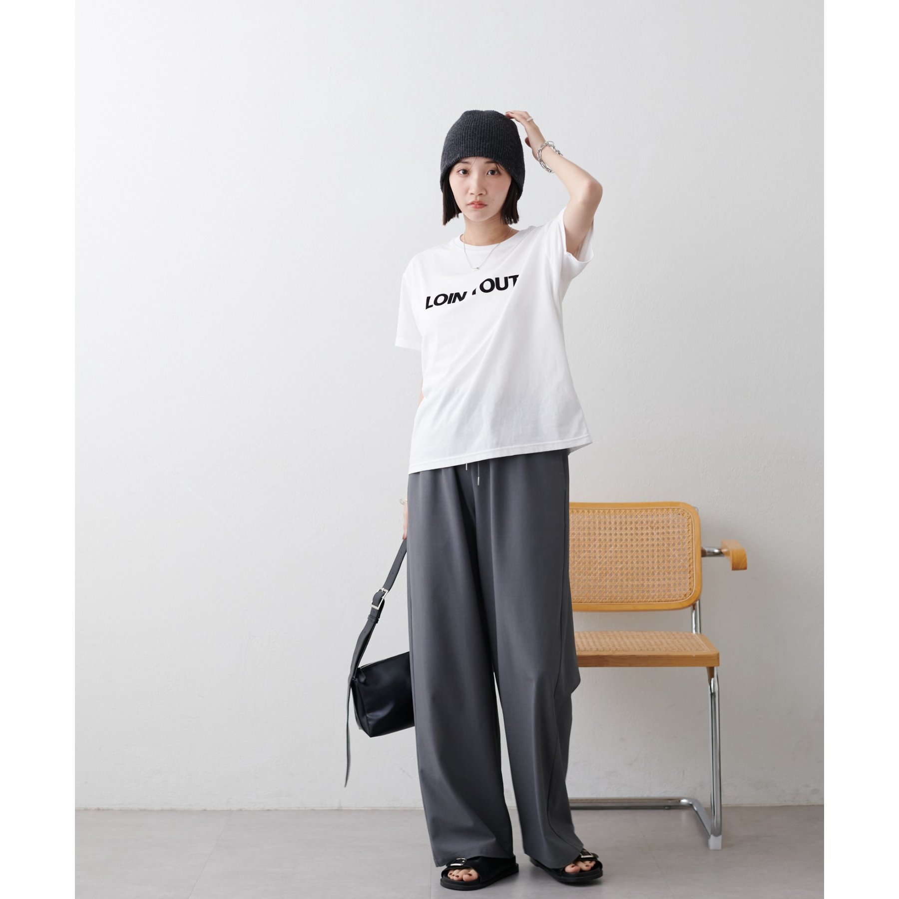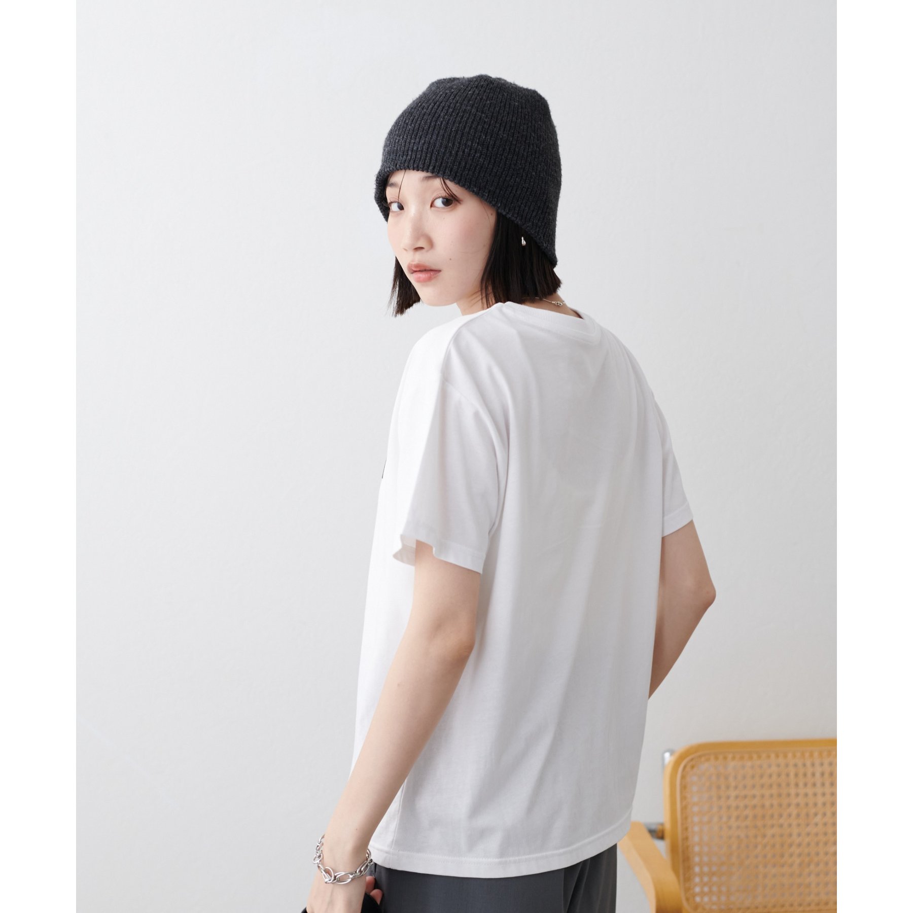 155cmスタッフ:ヒップにかかるくらいの丈感です。ロゴ部分はフロッキーや箔プリントになっているので高見えするTシャツです!