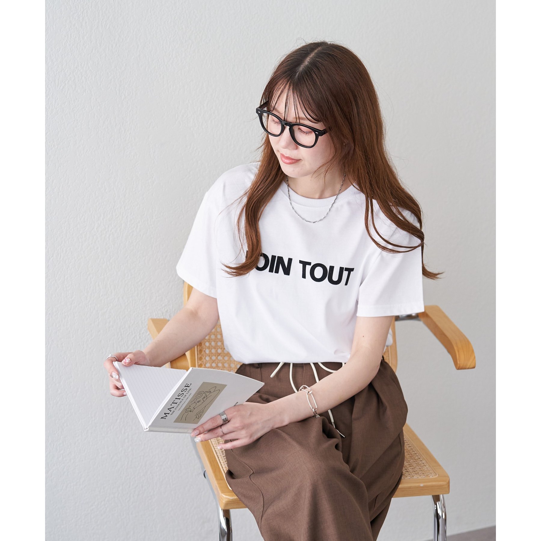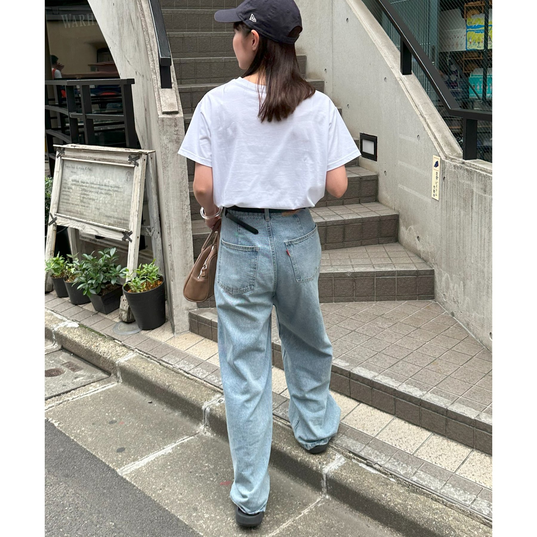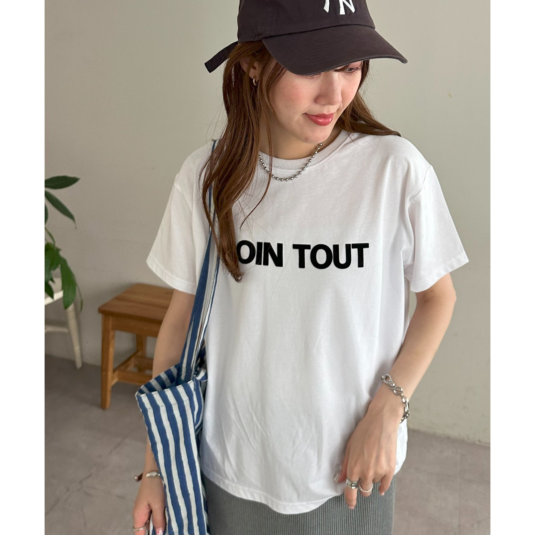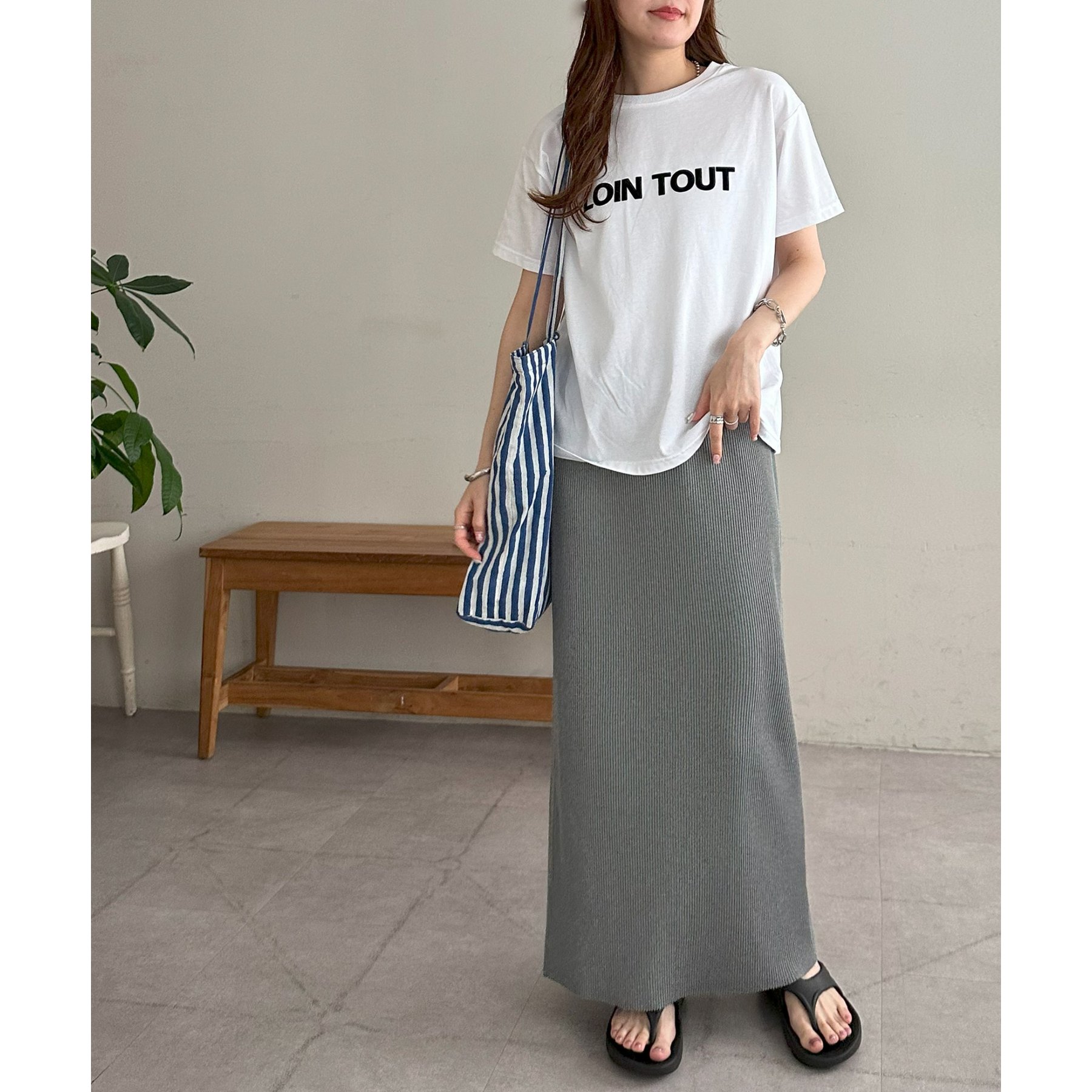 155cmスタッフ:ヒップにかかるくらいの丈感です。ロゴ部分はフロッキーや箔プリントになっているので高見えするTシャツです!