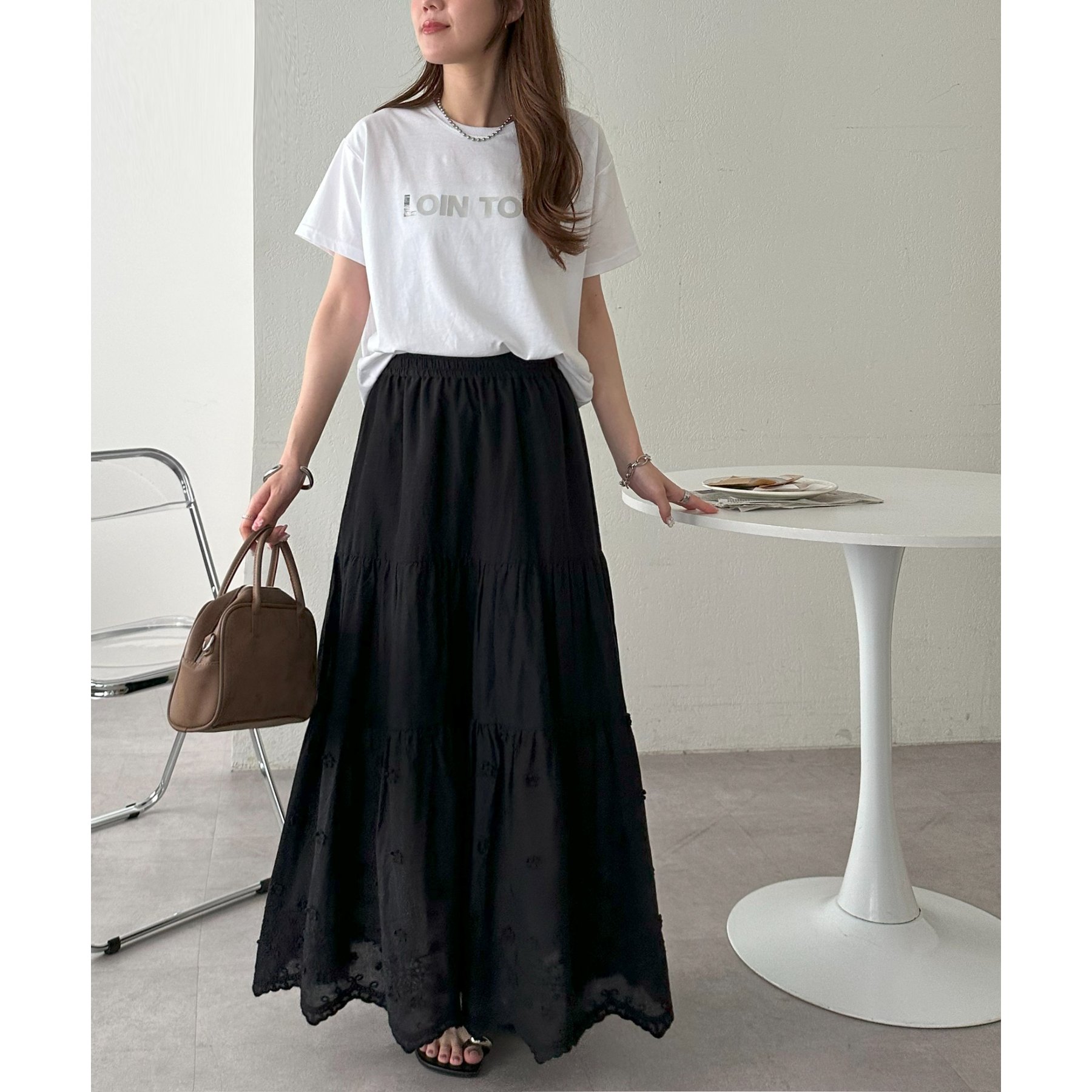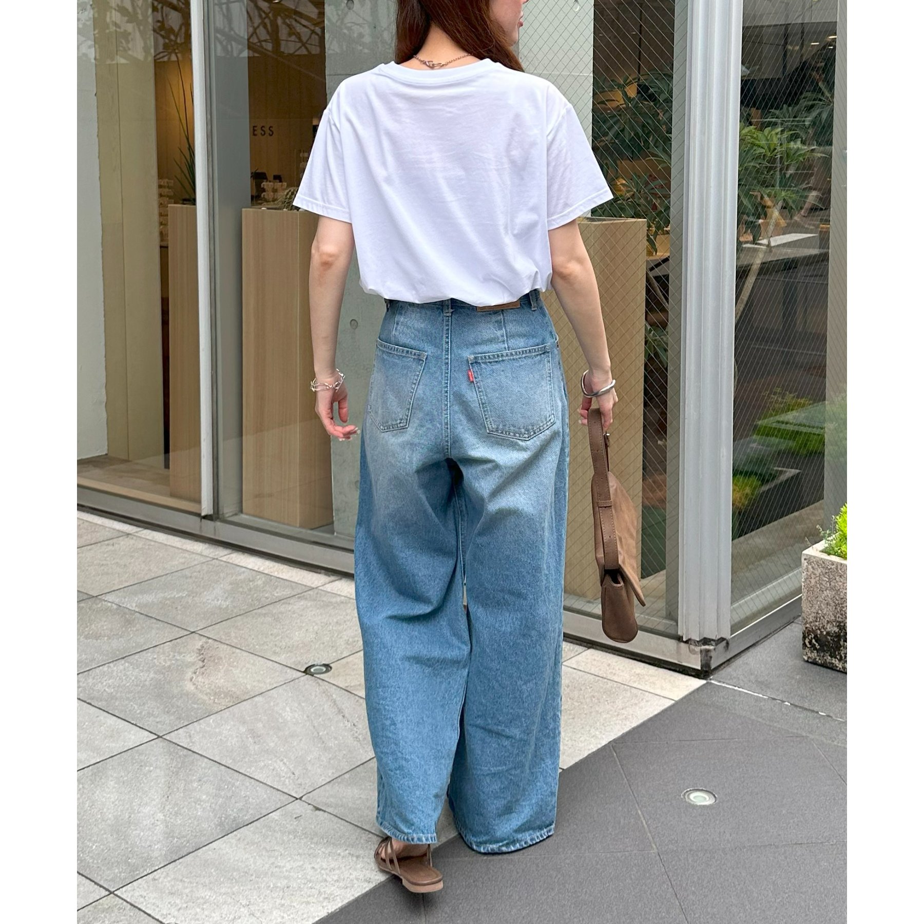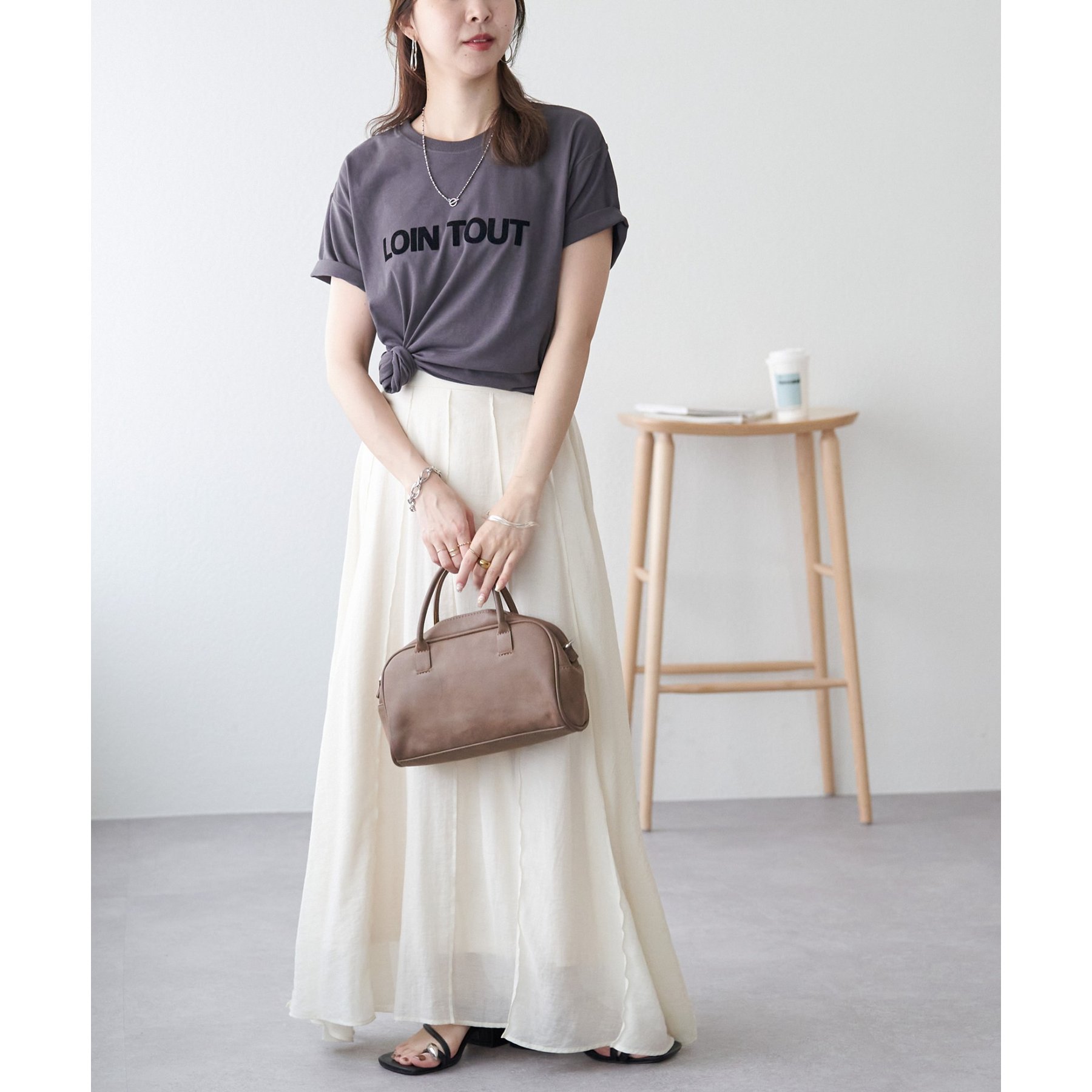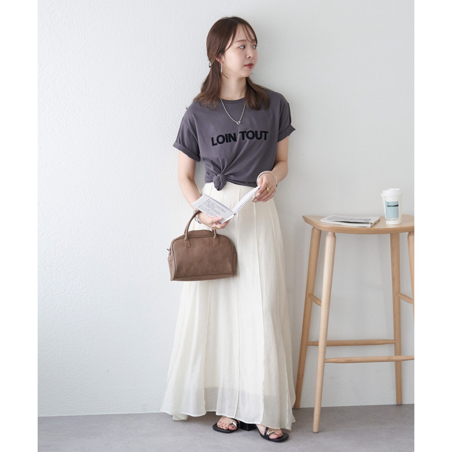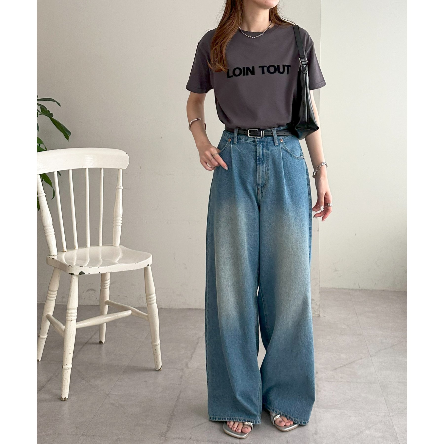 155cmスタッフ:ヒップにかかるくらいの丈感です。ロゴ部分はフロッキーや箔プリントになっているので高見えするTシャツです!