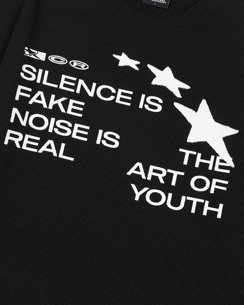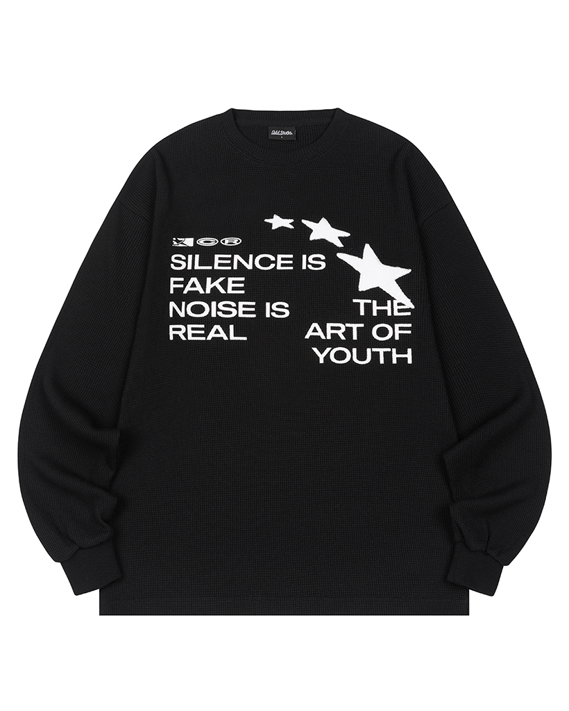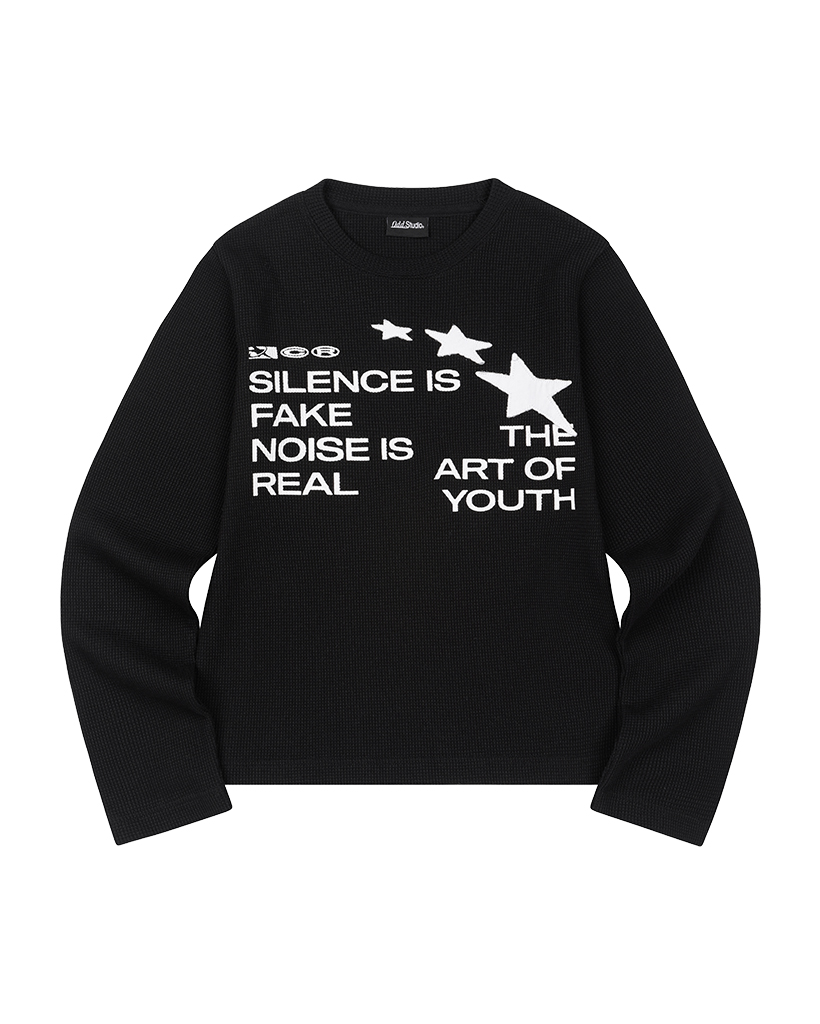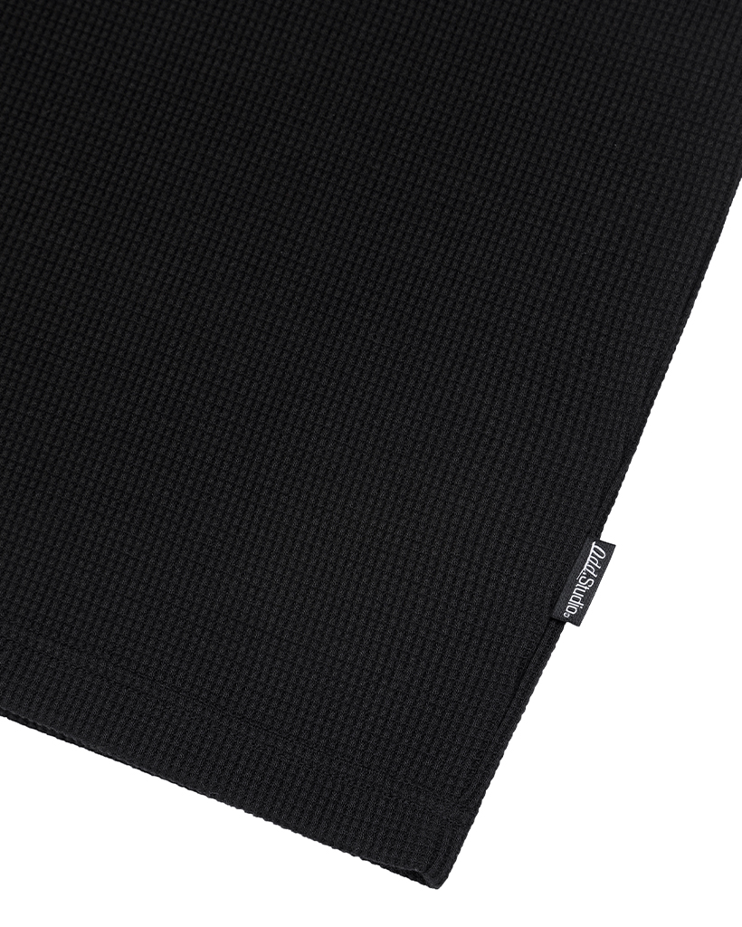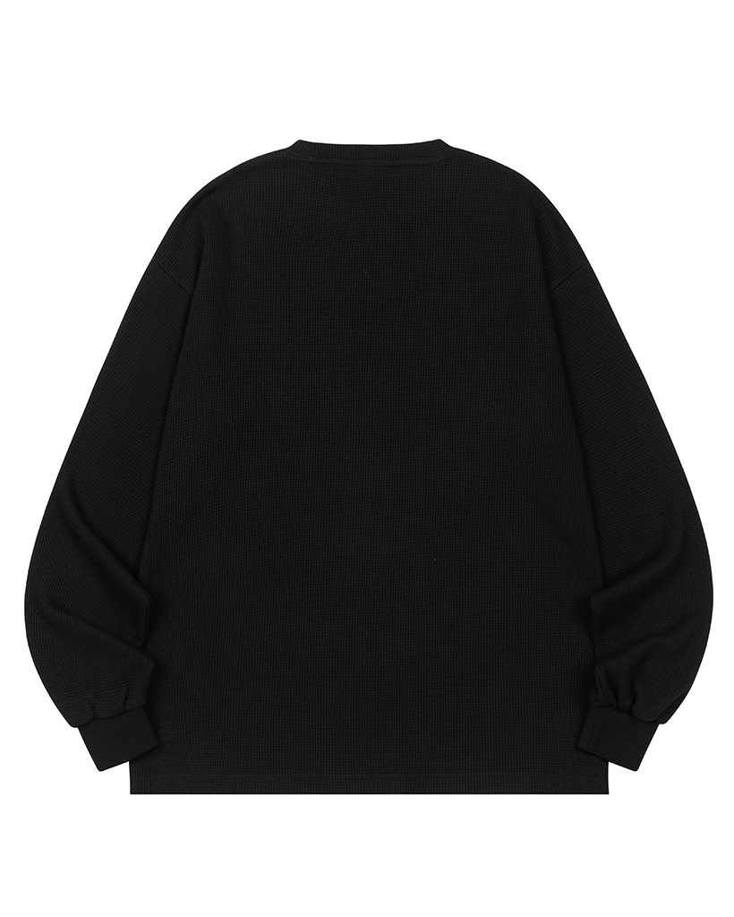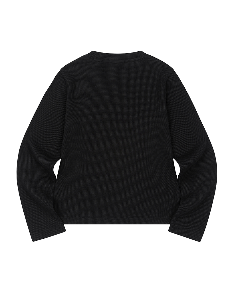 Star Applique Waffle Long Sleeve - BLACK