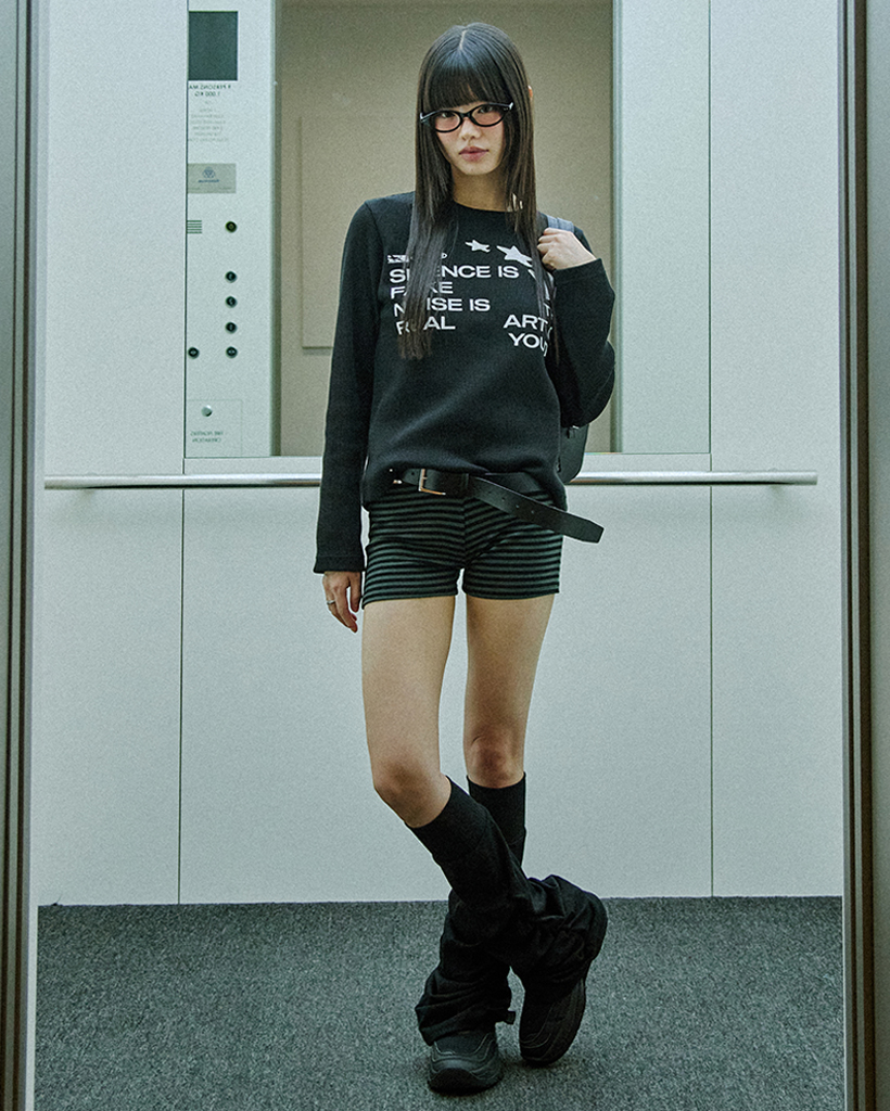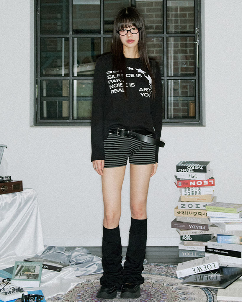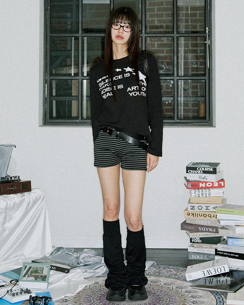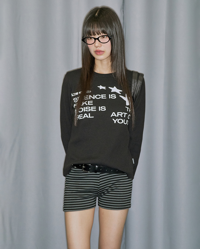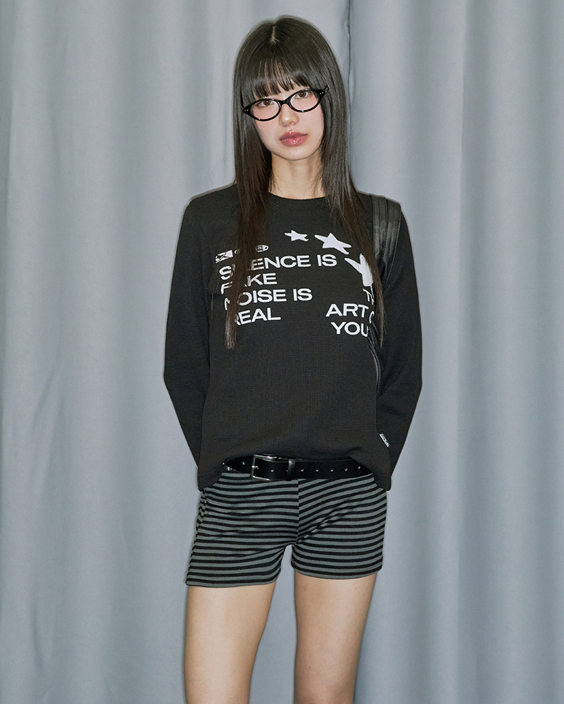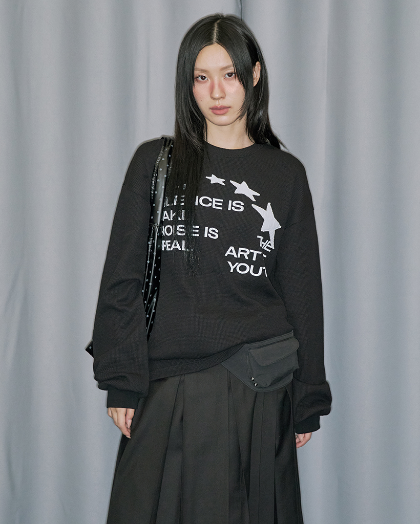 Star Applique Waffle Long Sleeve - BLACK