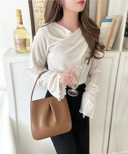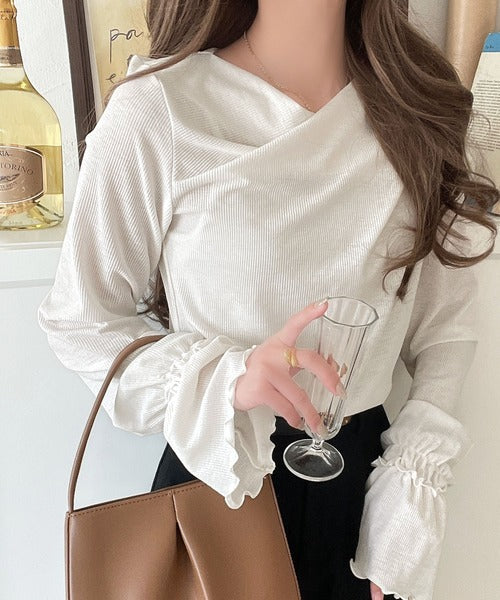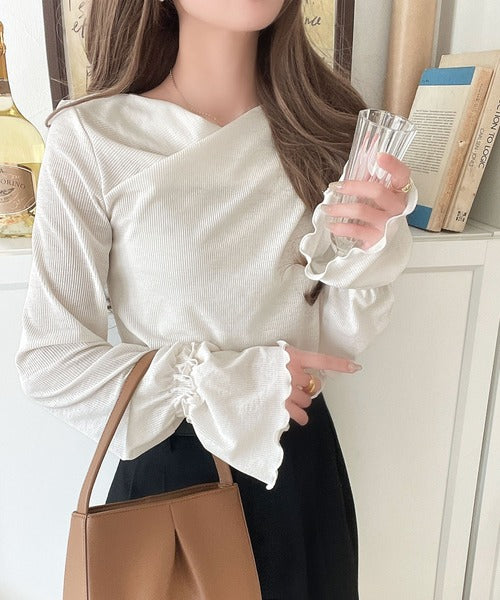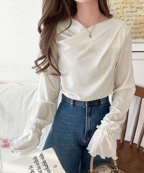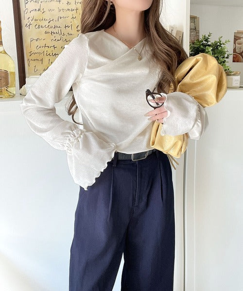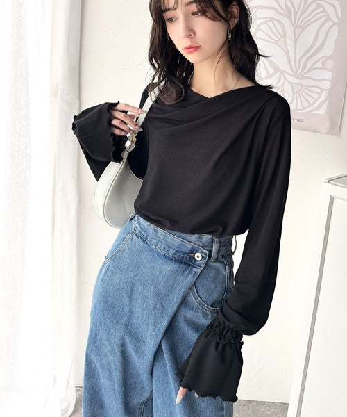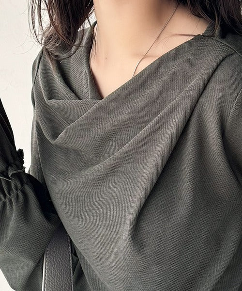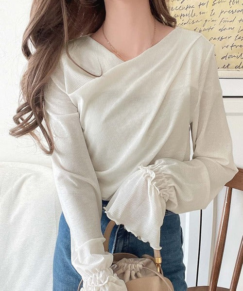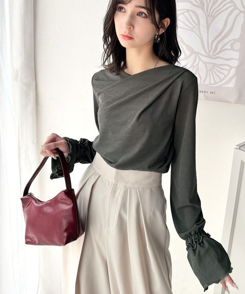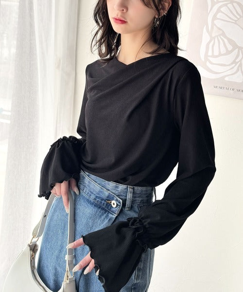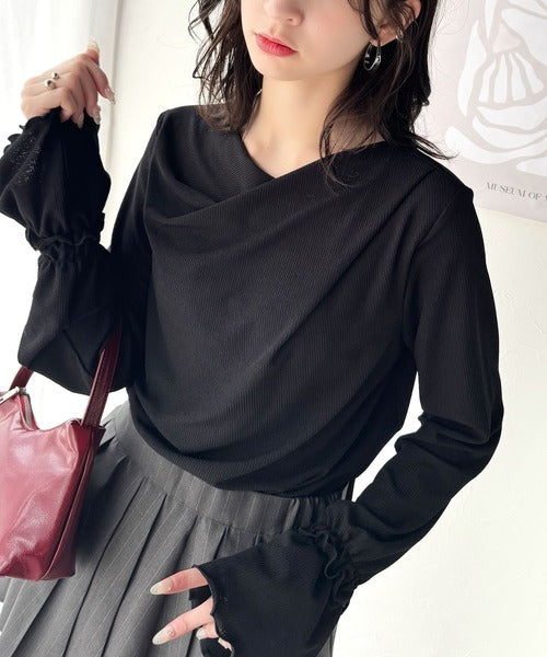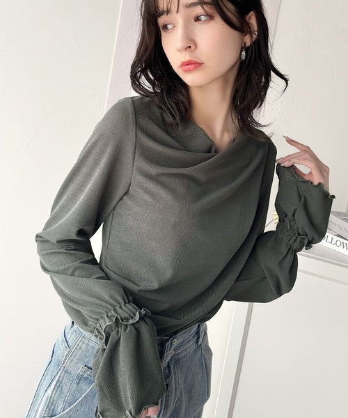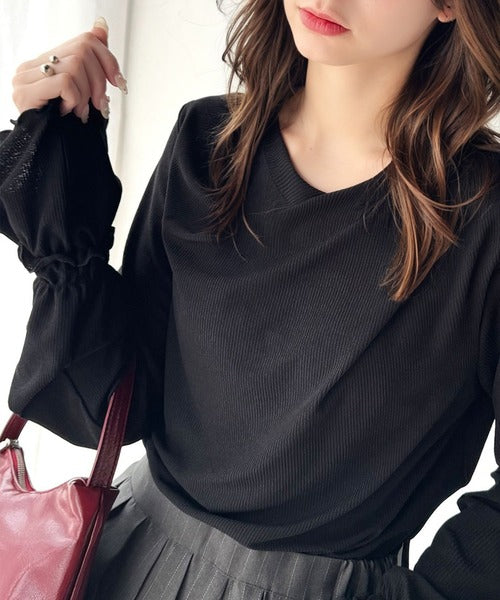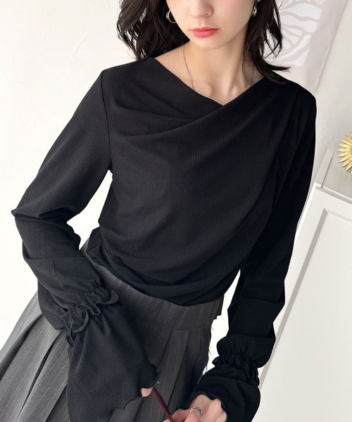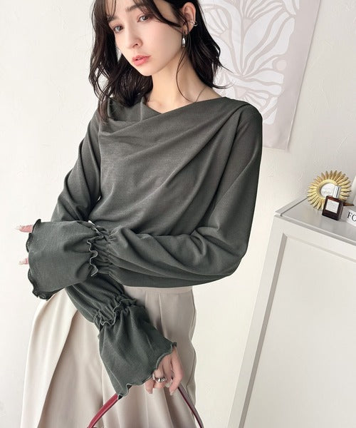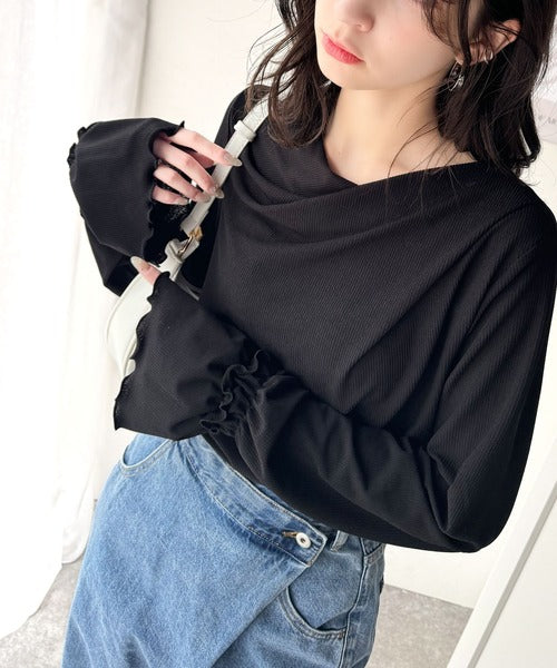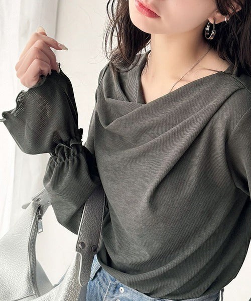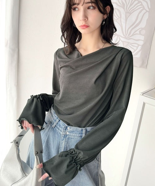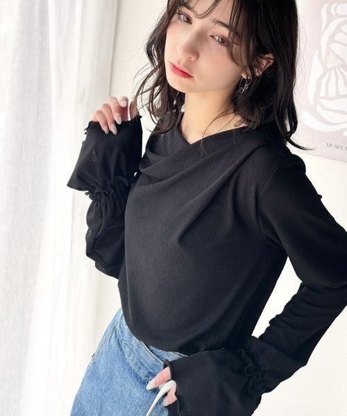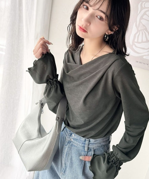 大人の魅力と甘さを兼ね備えた。キャンディースリーブオフショルダードレープネックリブトップス(長袖) ce1110109