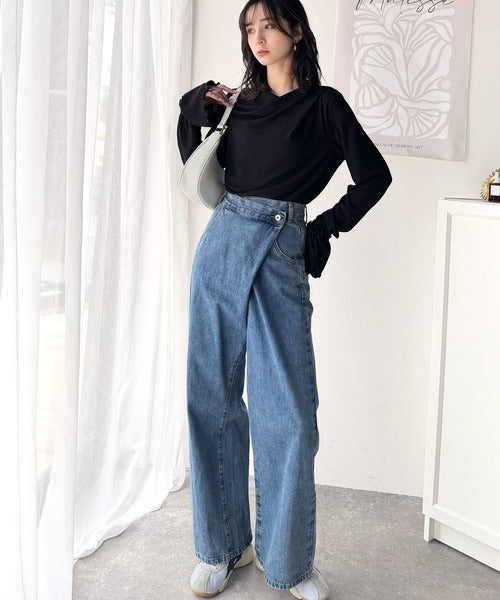 ドレープネックがスタイリングに可愛さをプラス!