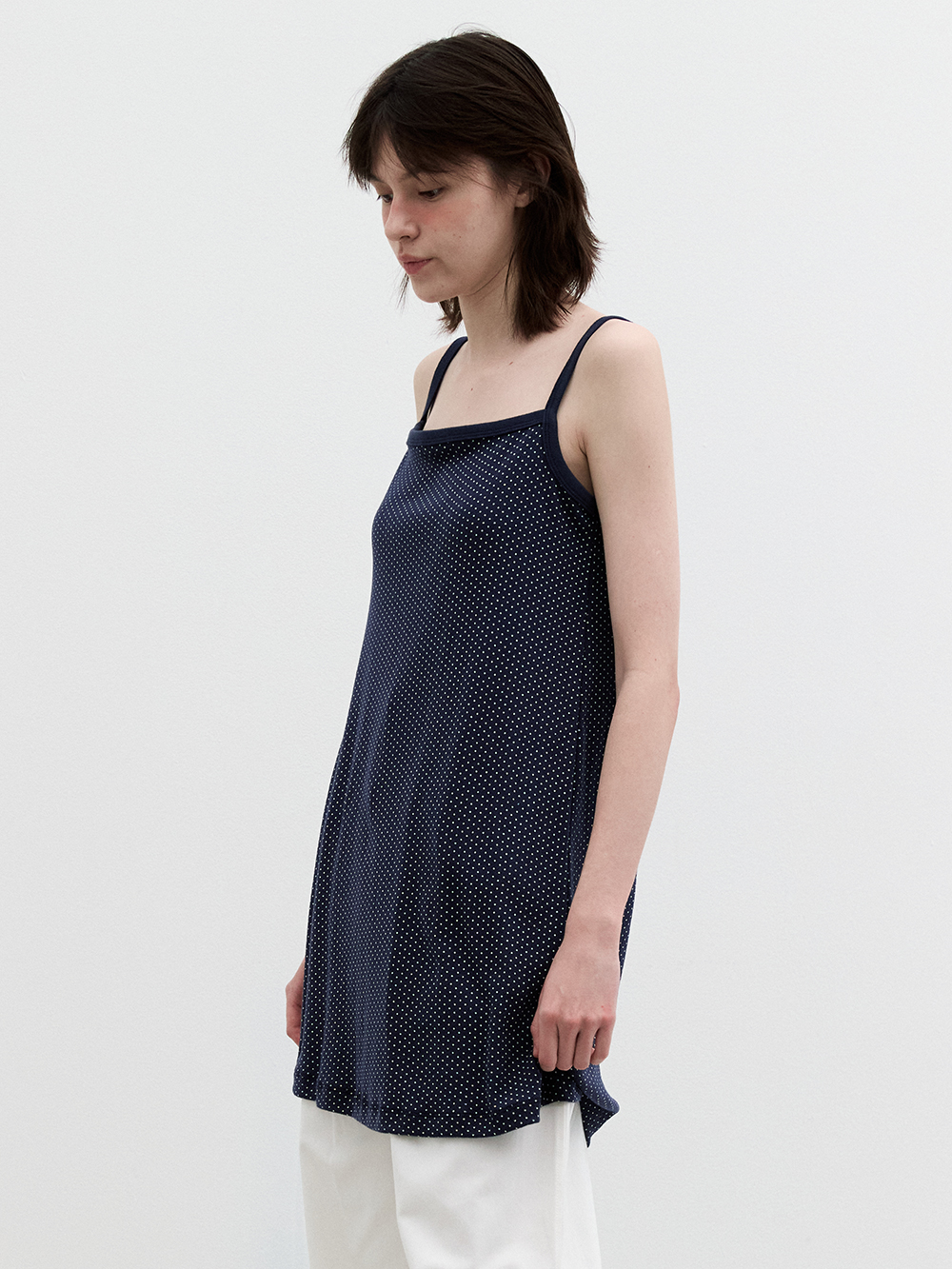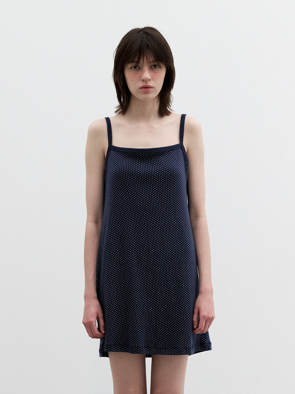 Eyelet Dotted Jersey Layering Dress Navy