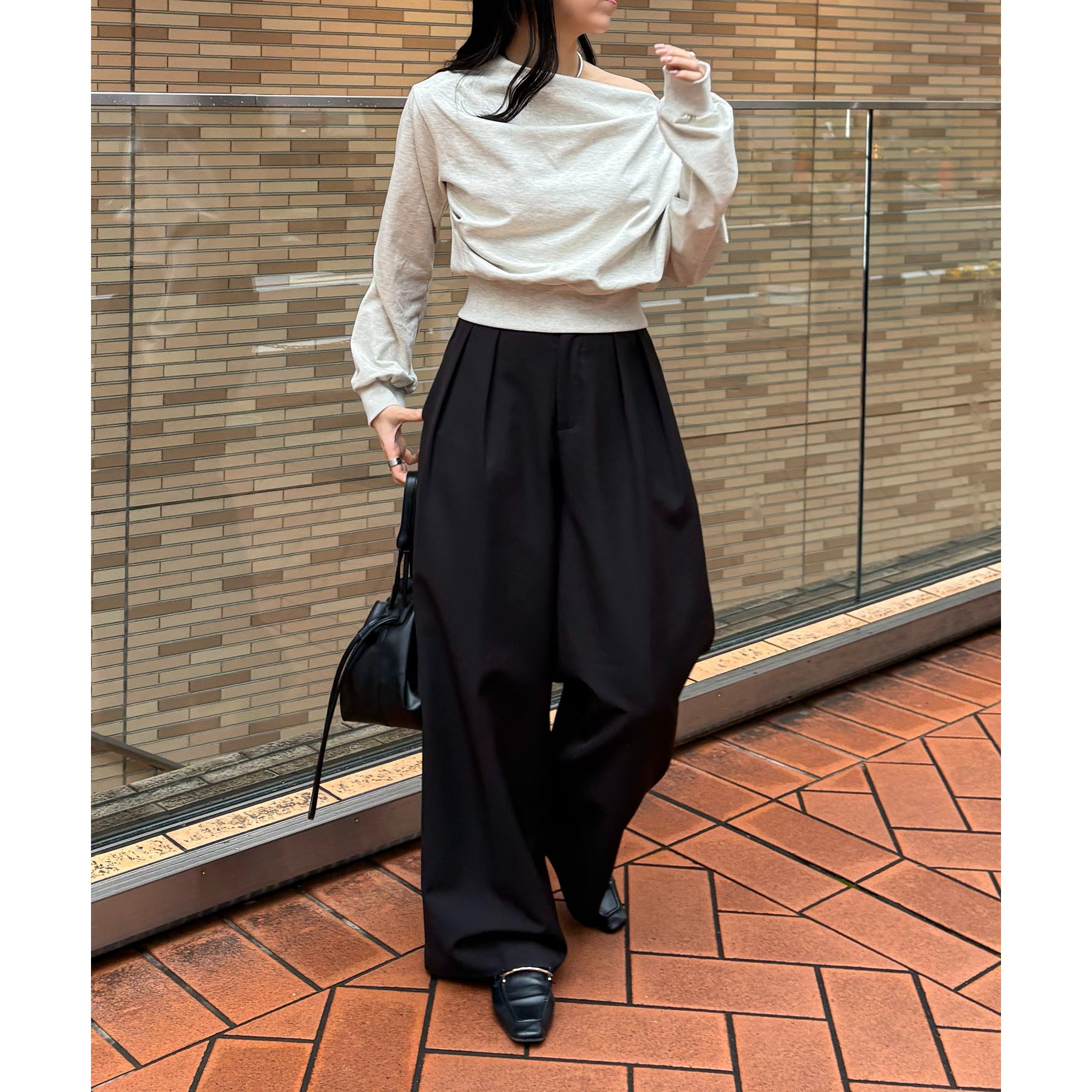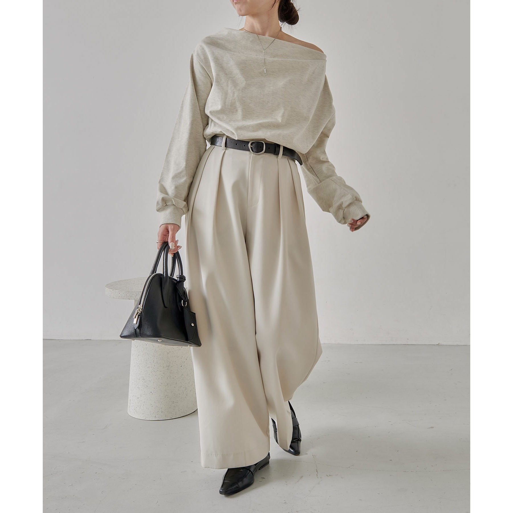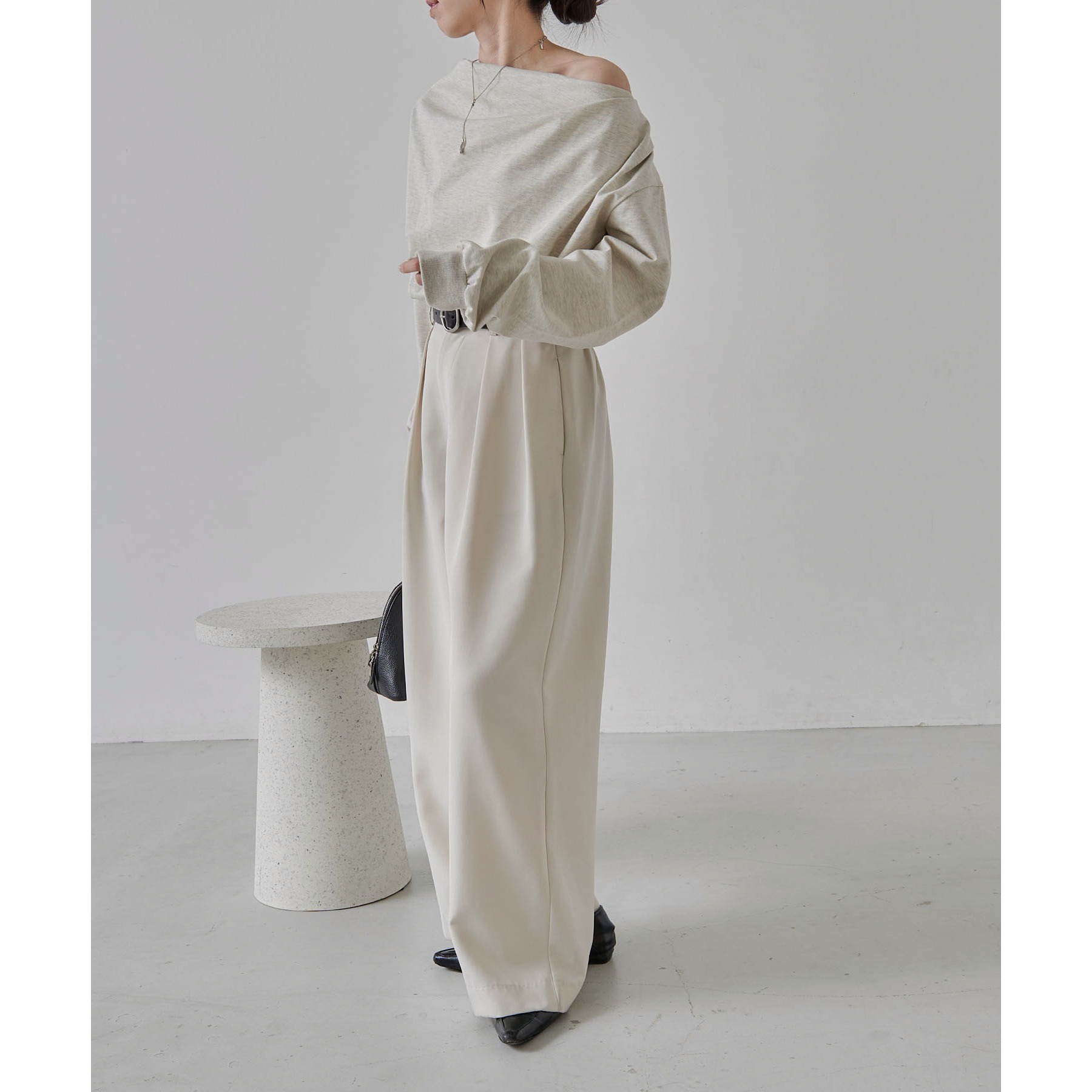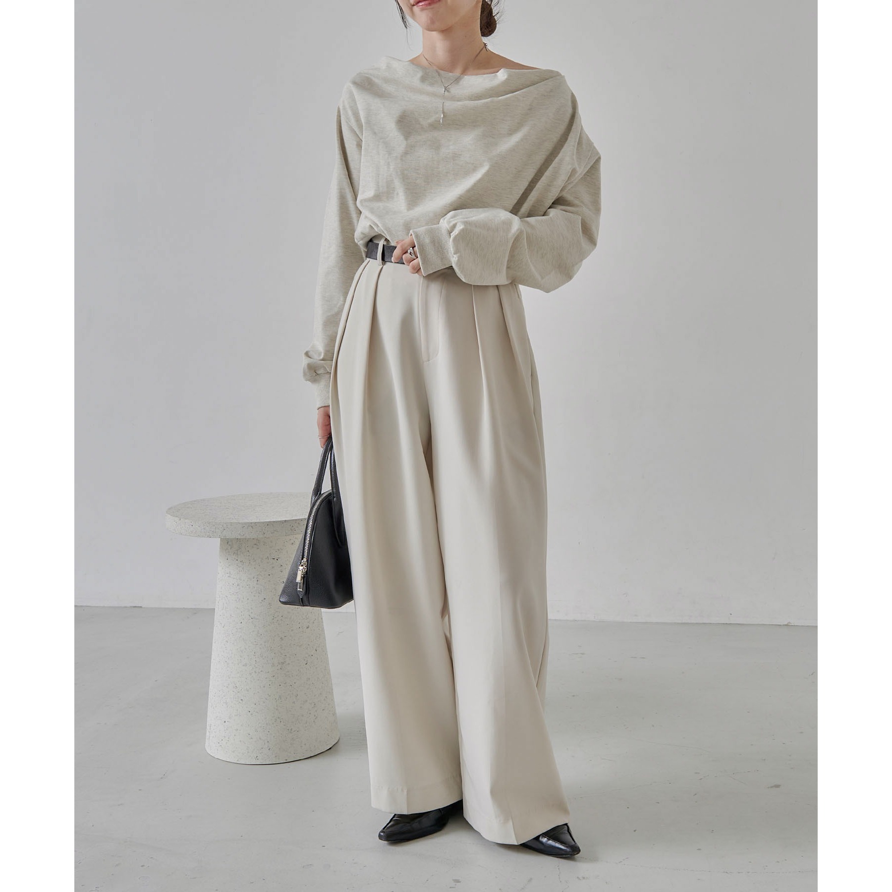 【グレージュ着用アイテム③】2タックワイドパンツ