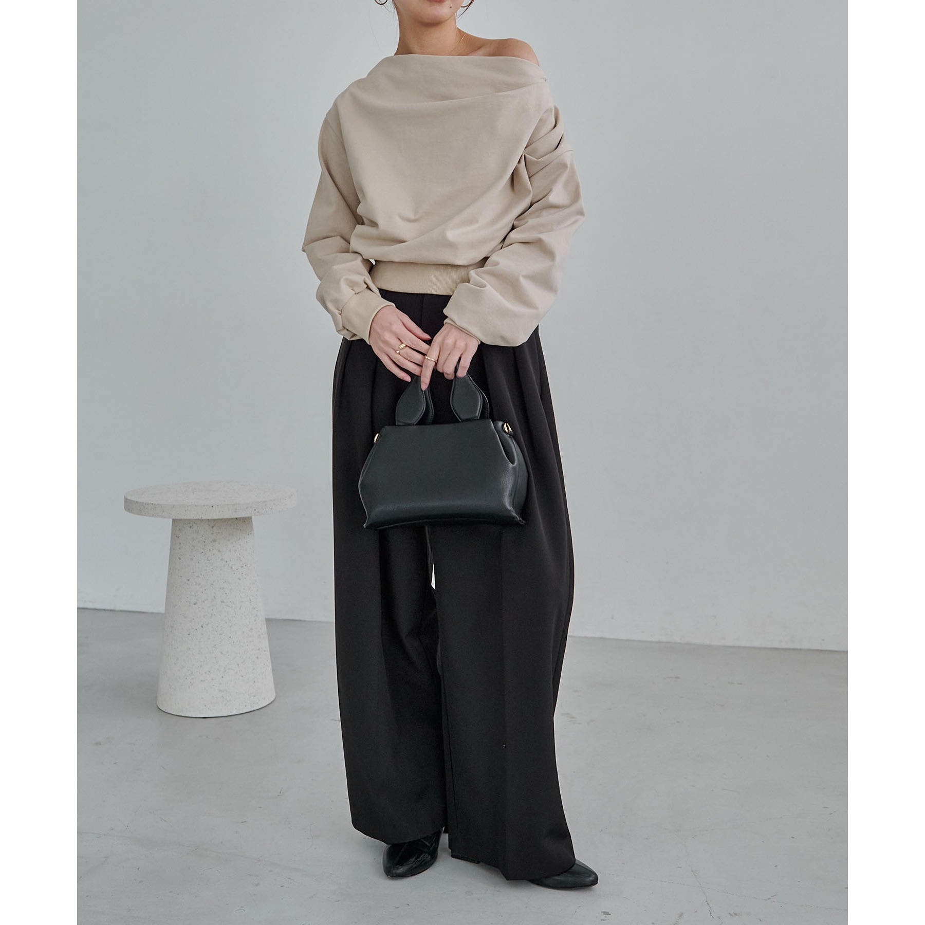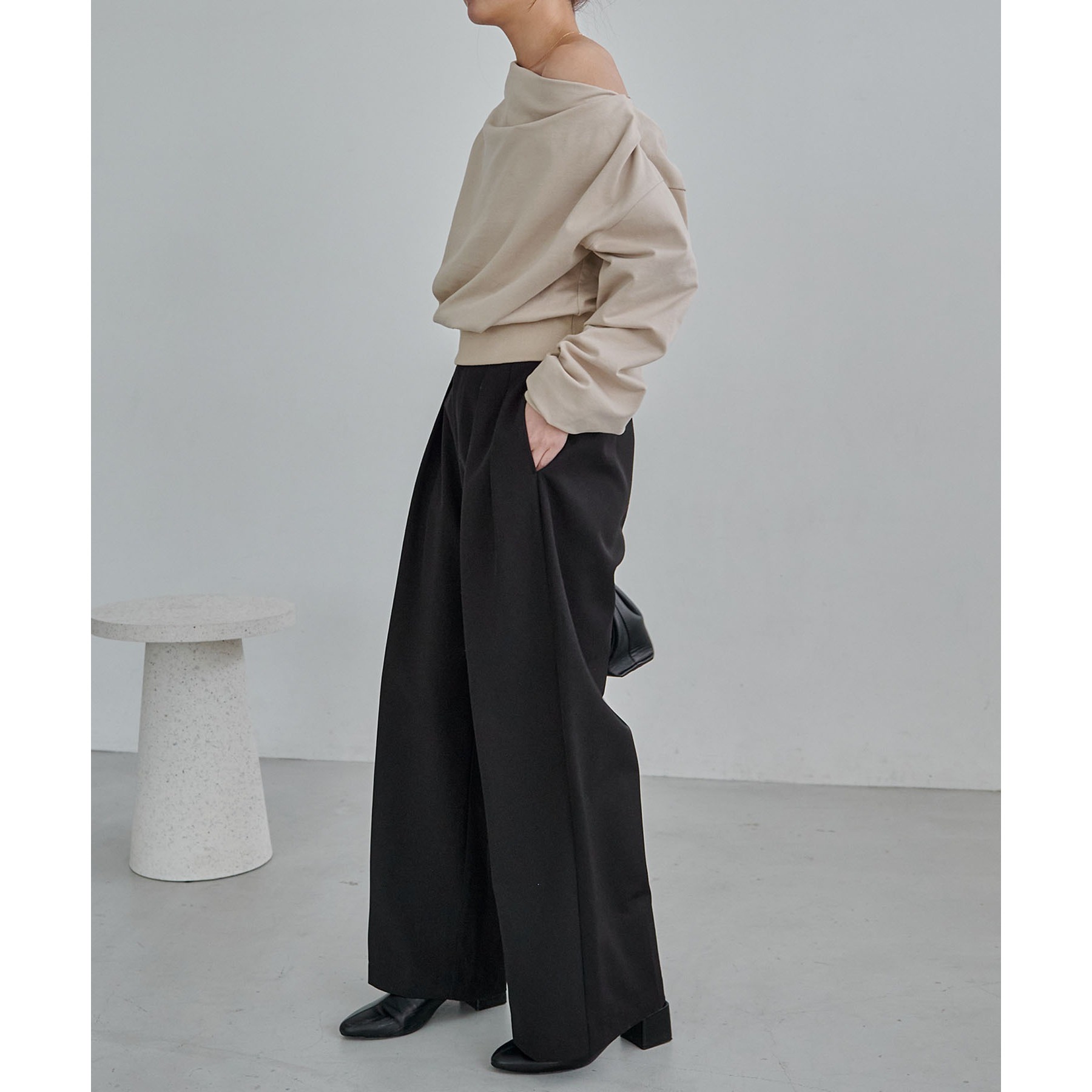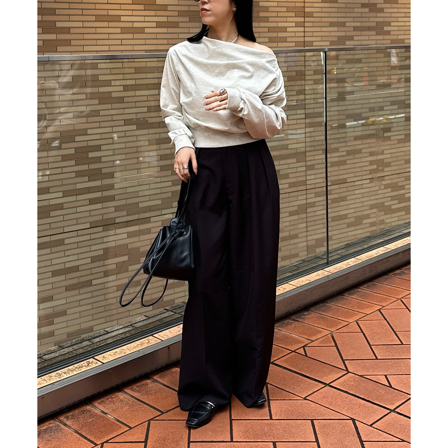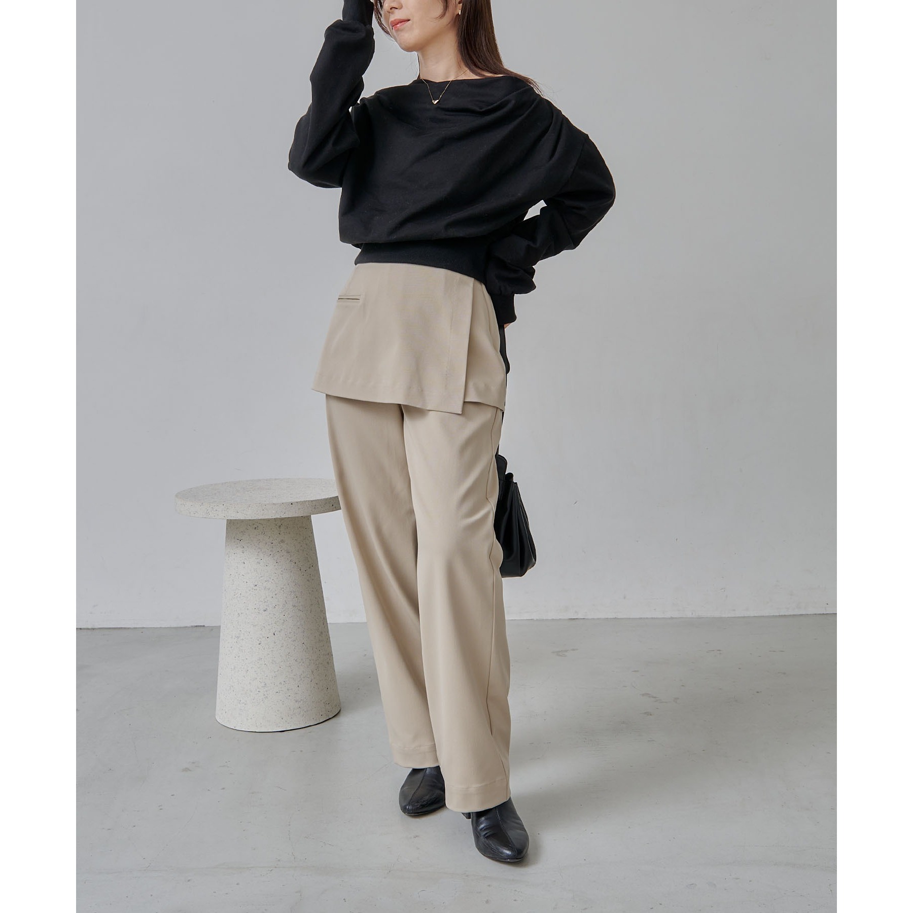 【グレージュ着用アイテム③】2タックワイドパンツ