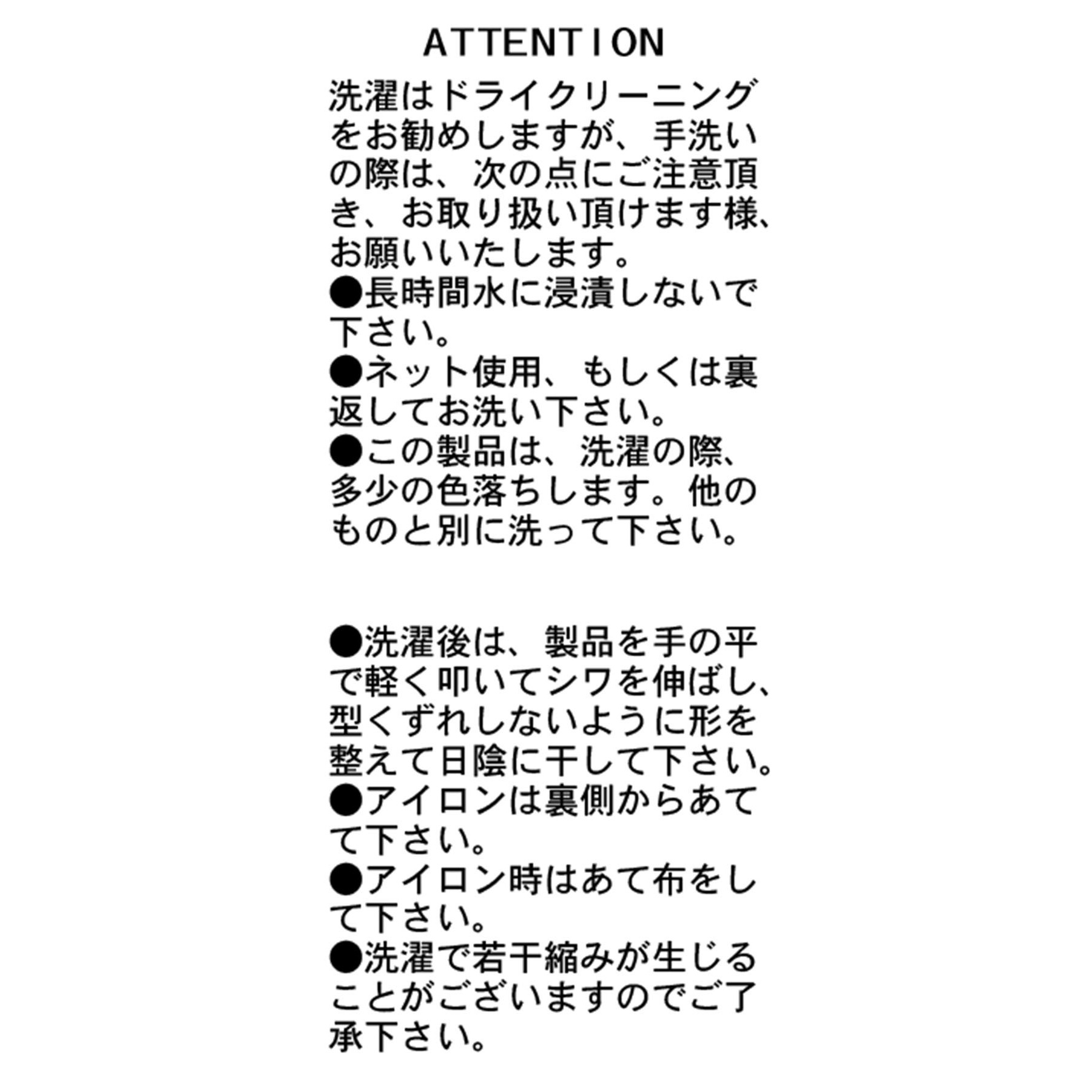 ※洗濯で若干縮みが生じることがございますのでご了承下さい。