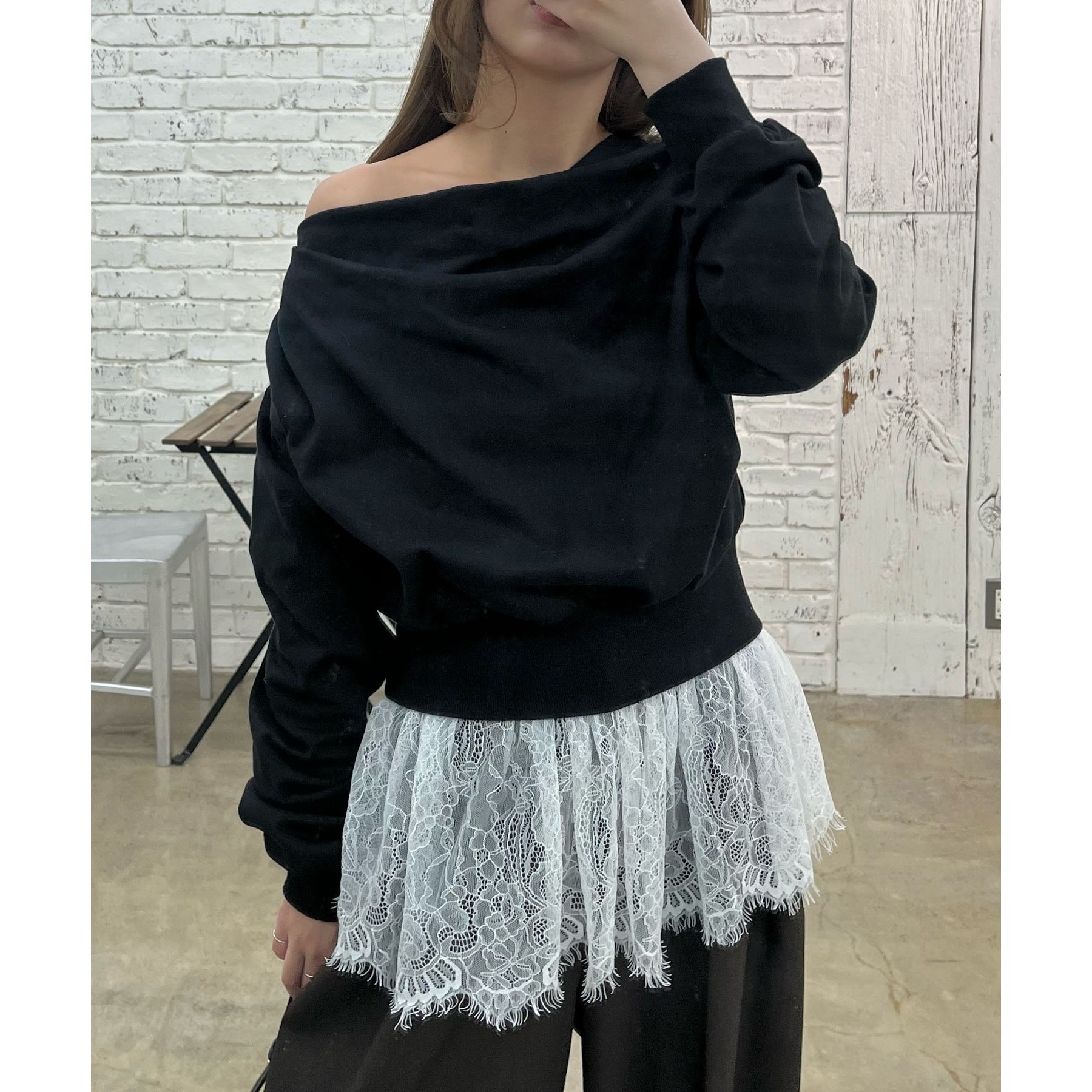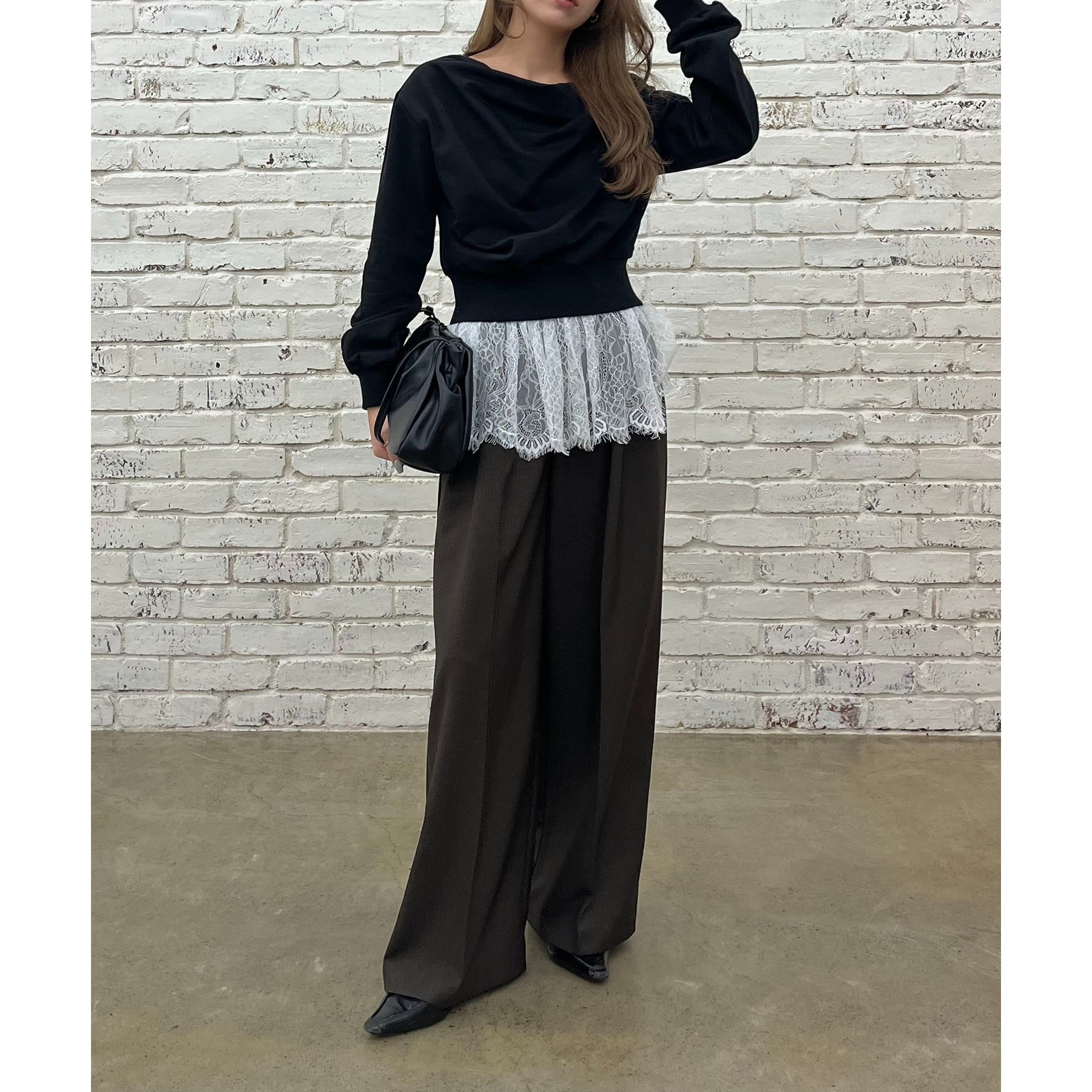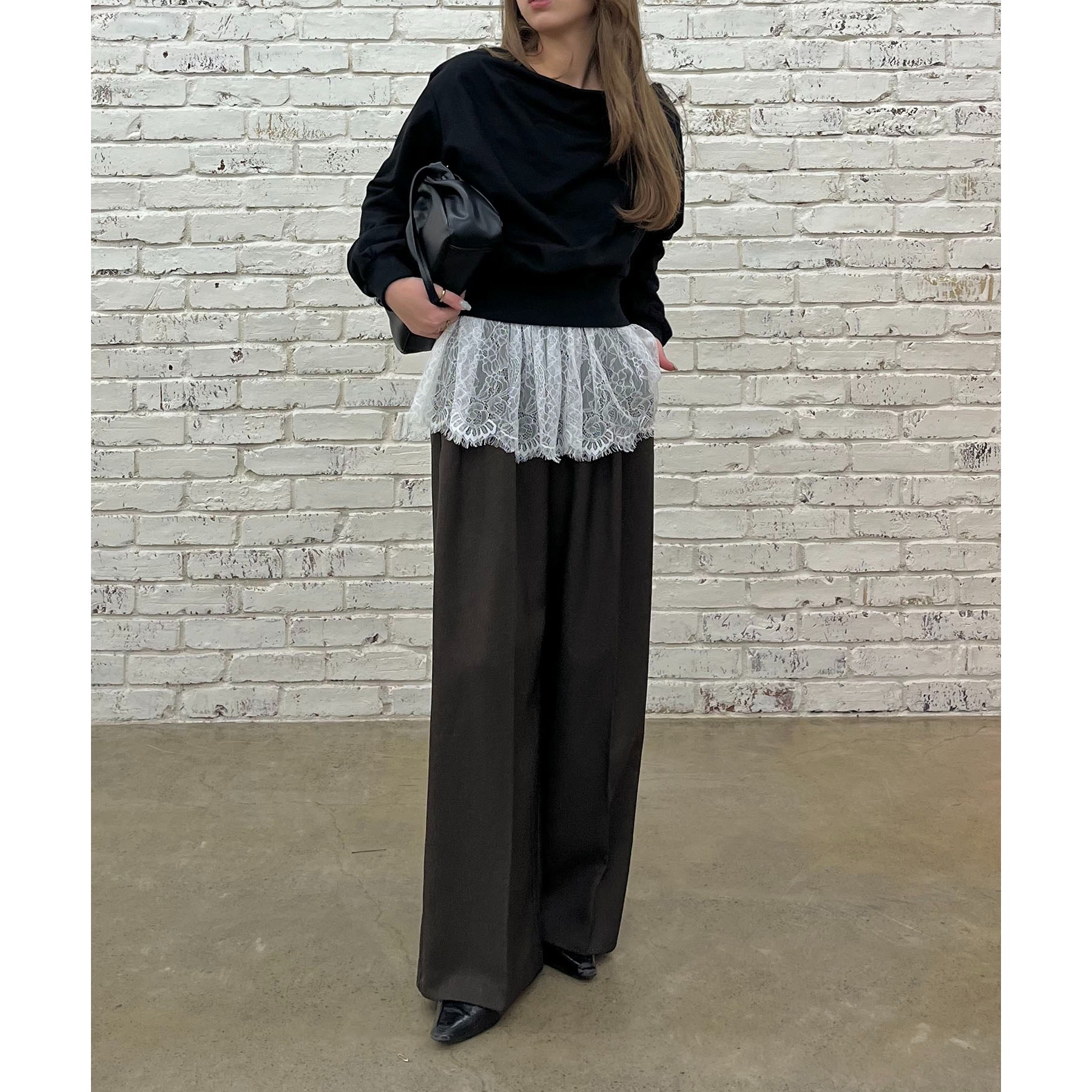 【ブラック着用アイテム③】pants:2タックワイドパンツ layered item:レースキャミ